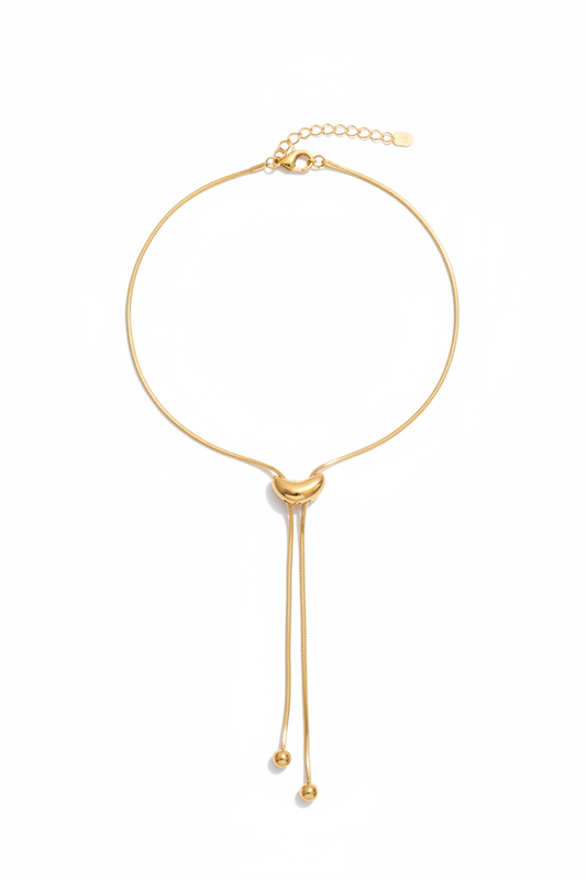 Long Gold Lariat Necklace - 18k PVD Gold Plated Stainless Steel
