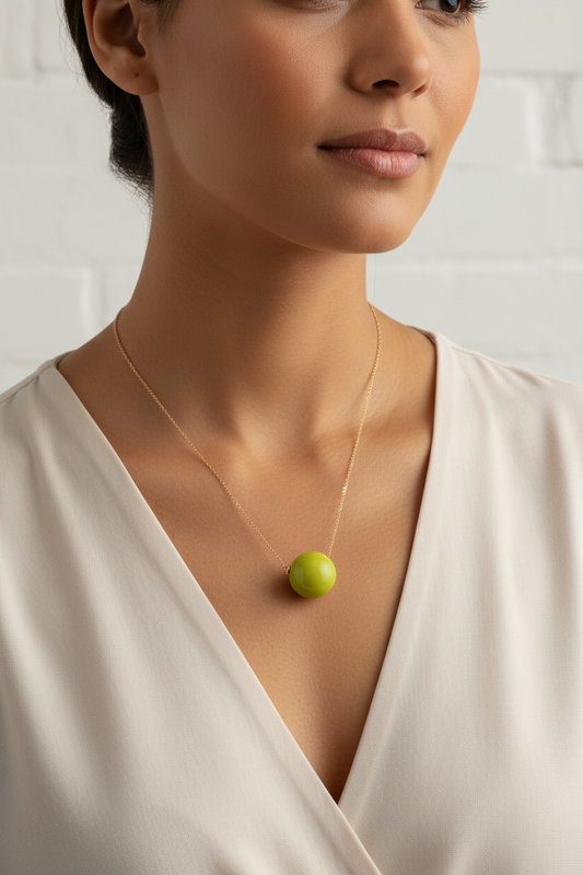 Pistachio Green Tagua Bead Necklace | 18k Gold Plated Chain