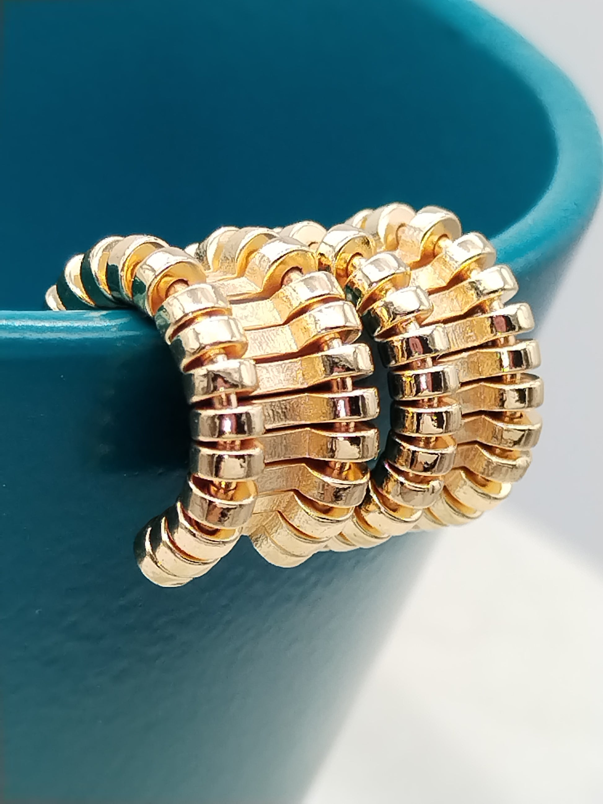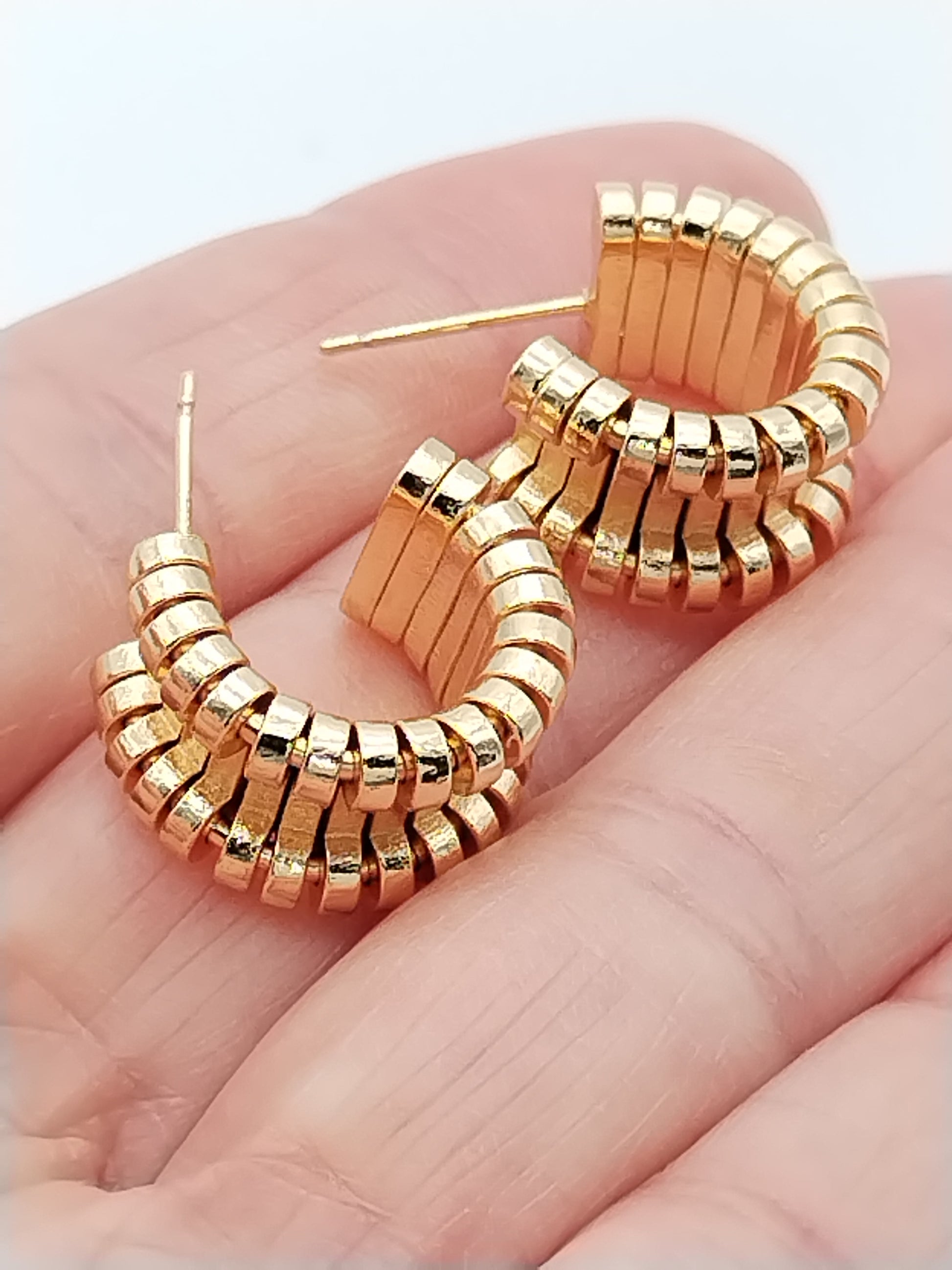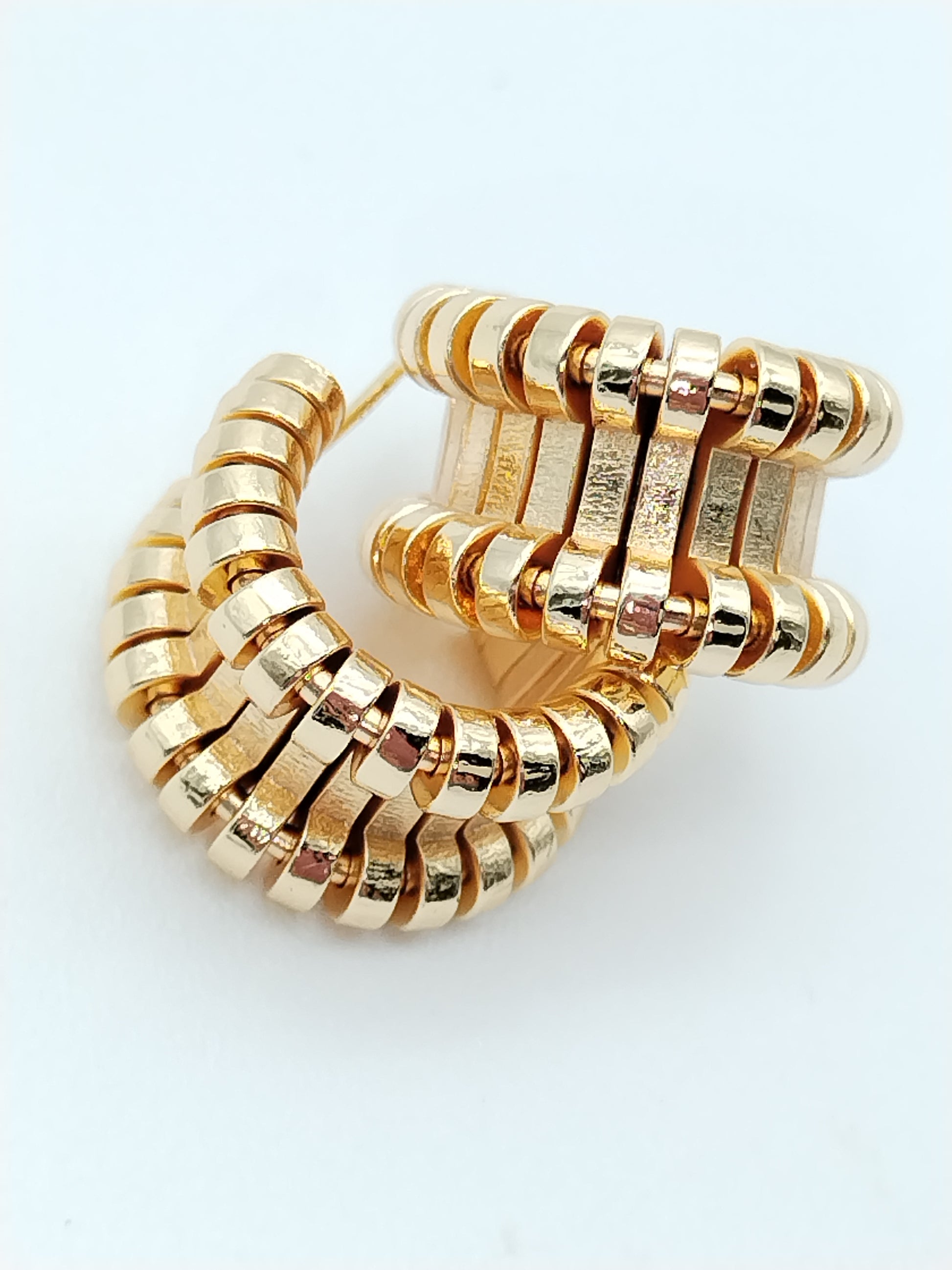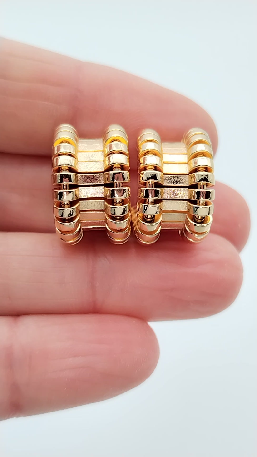 Diese klobigen, goldfarbenen „Tubogas“-Ohrringe sind perfekt für die stilvolle, selbstbewusste Frau. Ihr elegantes und modernes Design verleiht jedem Outfit einen schicken und eleganten Touch, egal ob im Büro oder auf der Straße. Schenken Sie sie Ihrer Mutter, einer Absolventin oder jeder anderen Frau, die ein einzigartiges Geschenk verdient.