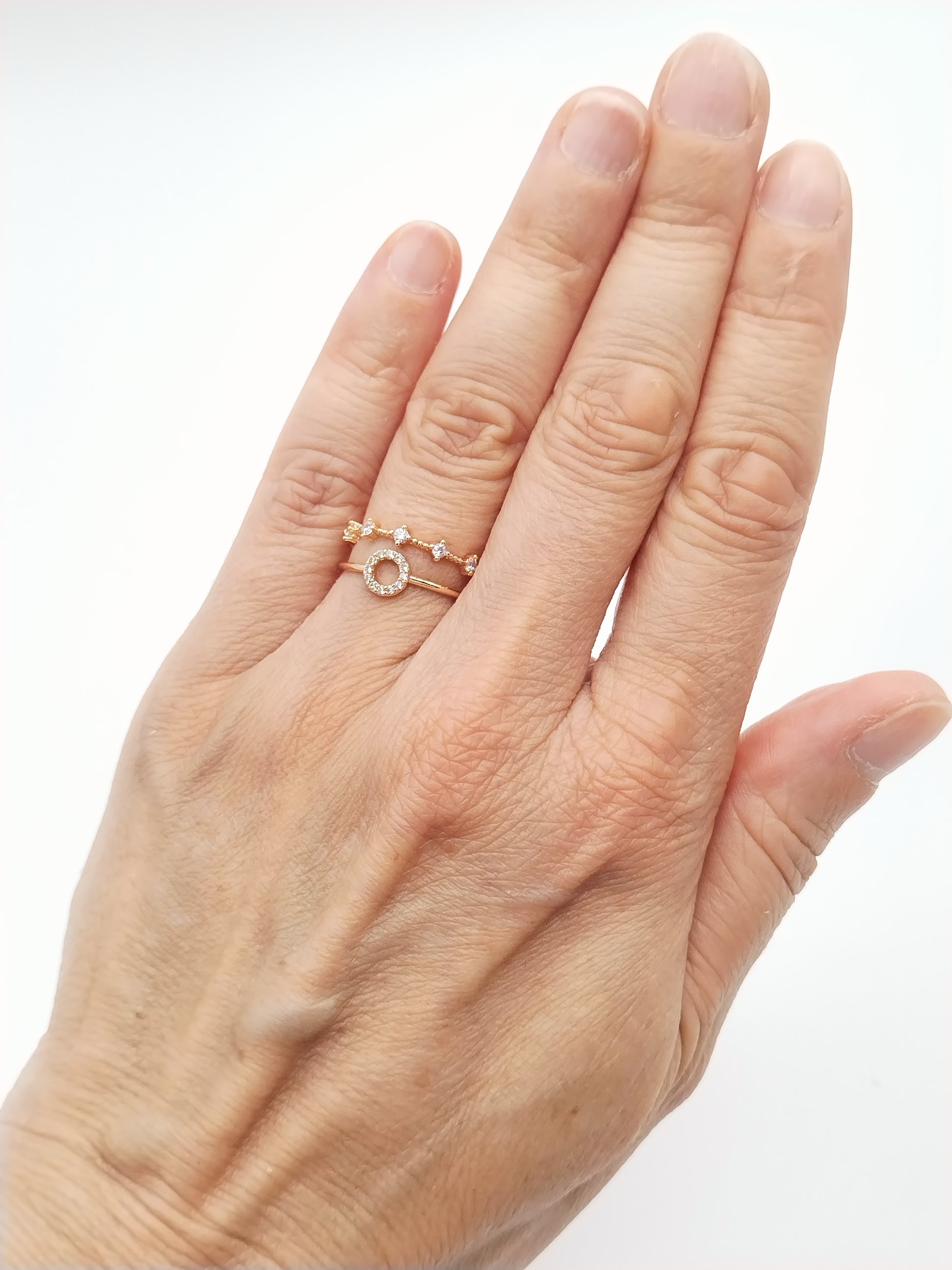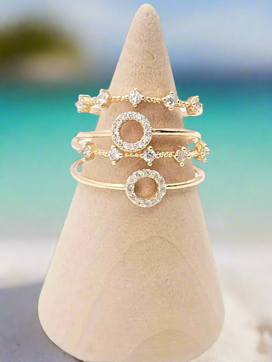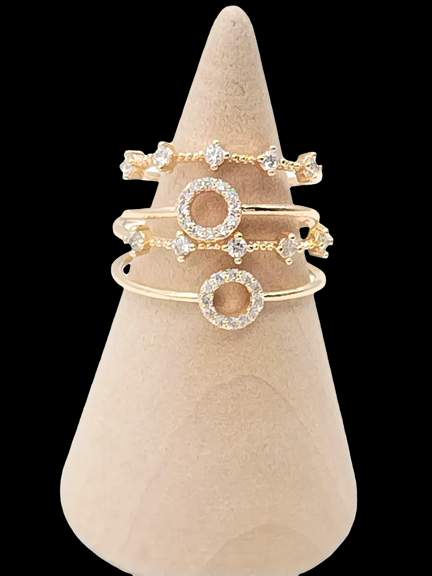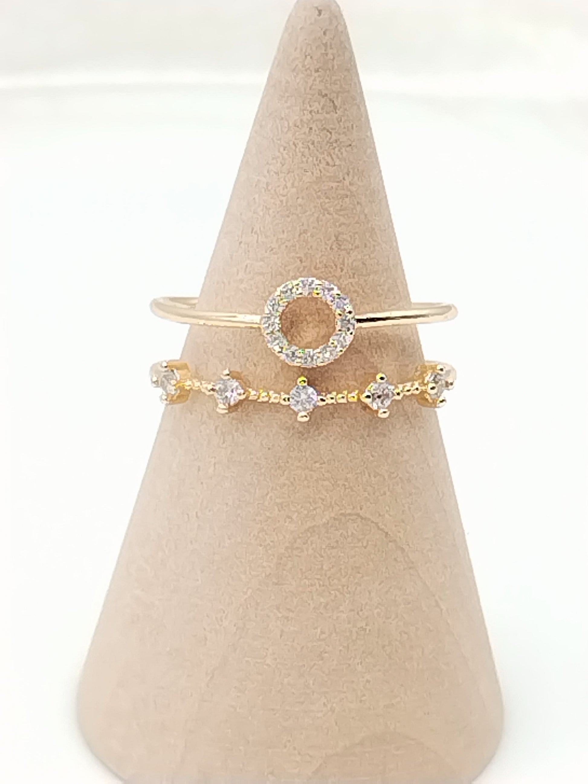 Mit seinem einzigartigen Doppelbanddesign verleiht dieser 18 Karat vergoldete Ring jedem Outfit einen Hauch von Eleganz und Klasse. Die funkelnden CZ-Steine und der offene Kreis machen ihn sowohl trendig als auch zeitlos, perfekt für modebewusste und stilbewusste Menschen. Stapelbar und verstellbar ist dieser Ring ein Muss für jede Schmucksammlung.