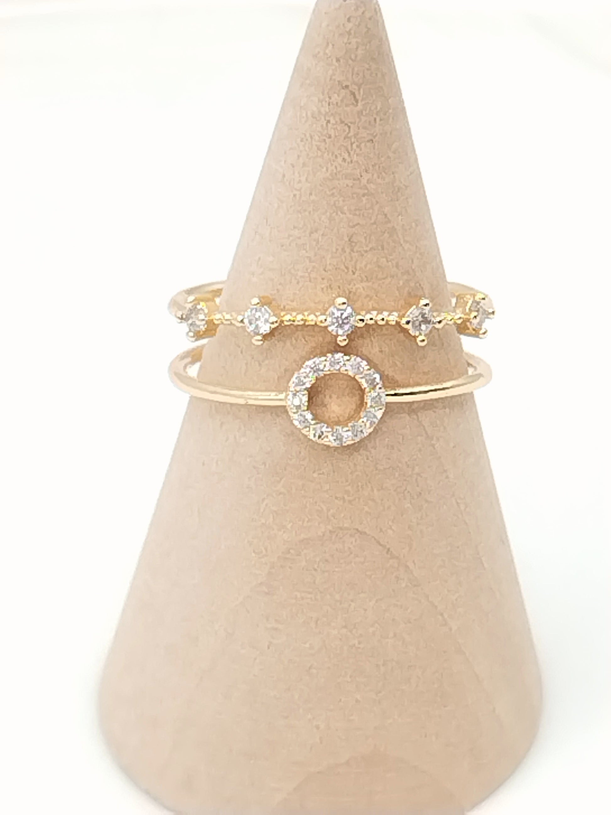 Doppelter Bandring, offener Kreis aus Gold, Zirkonia, funkelnd, trendig, elegant, Schmuck, Frauen, minimalistisch