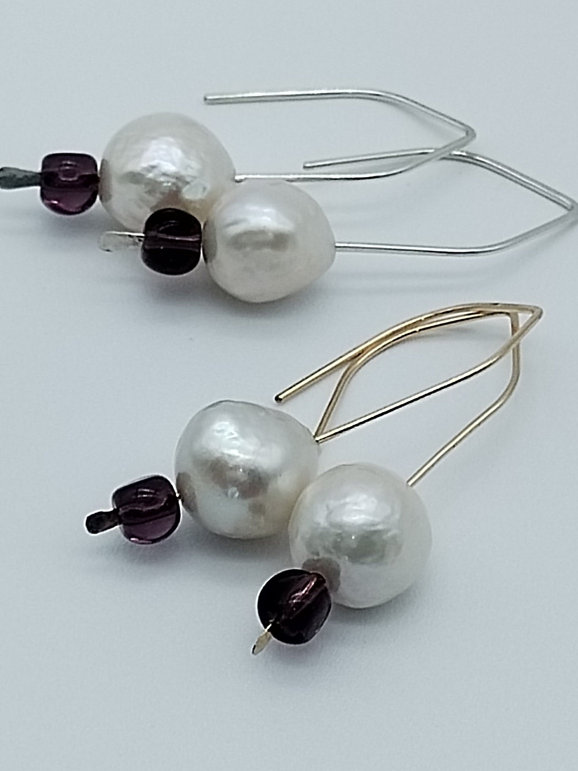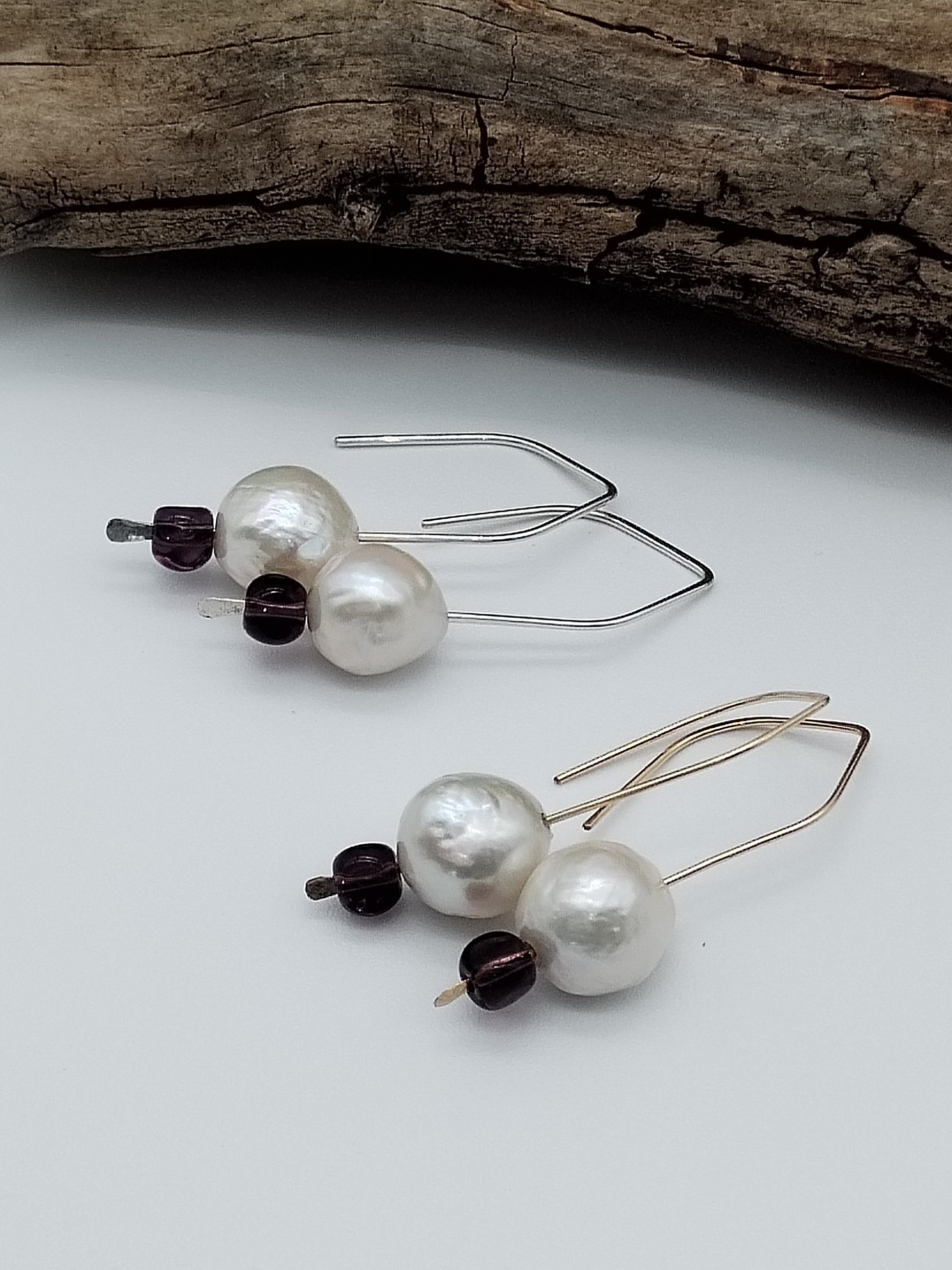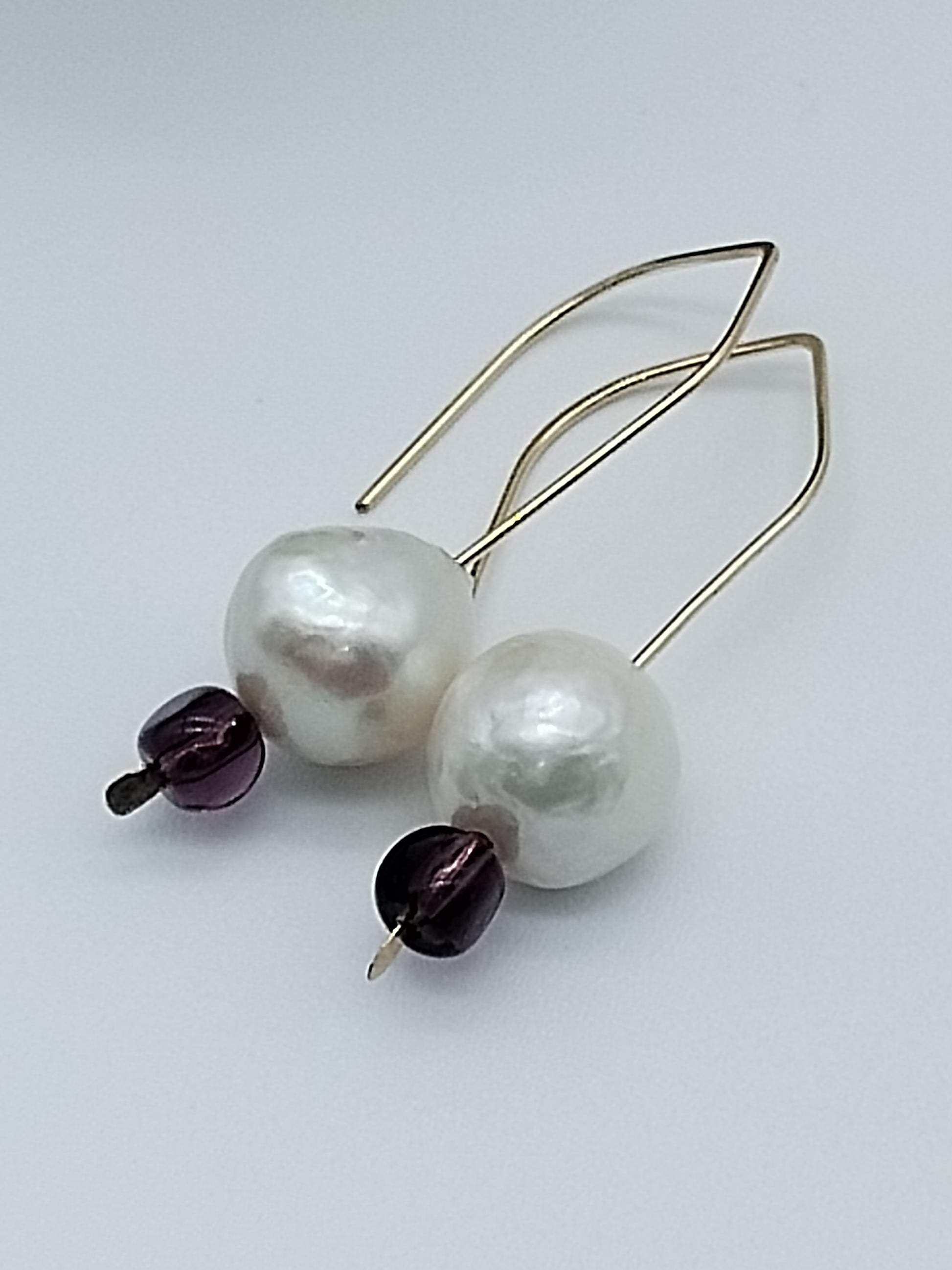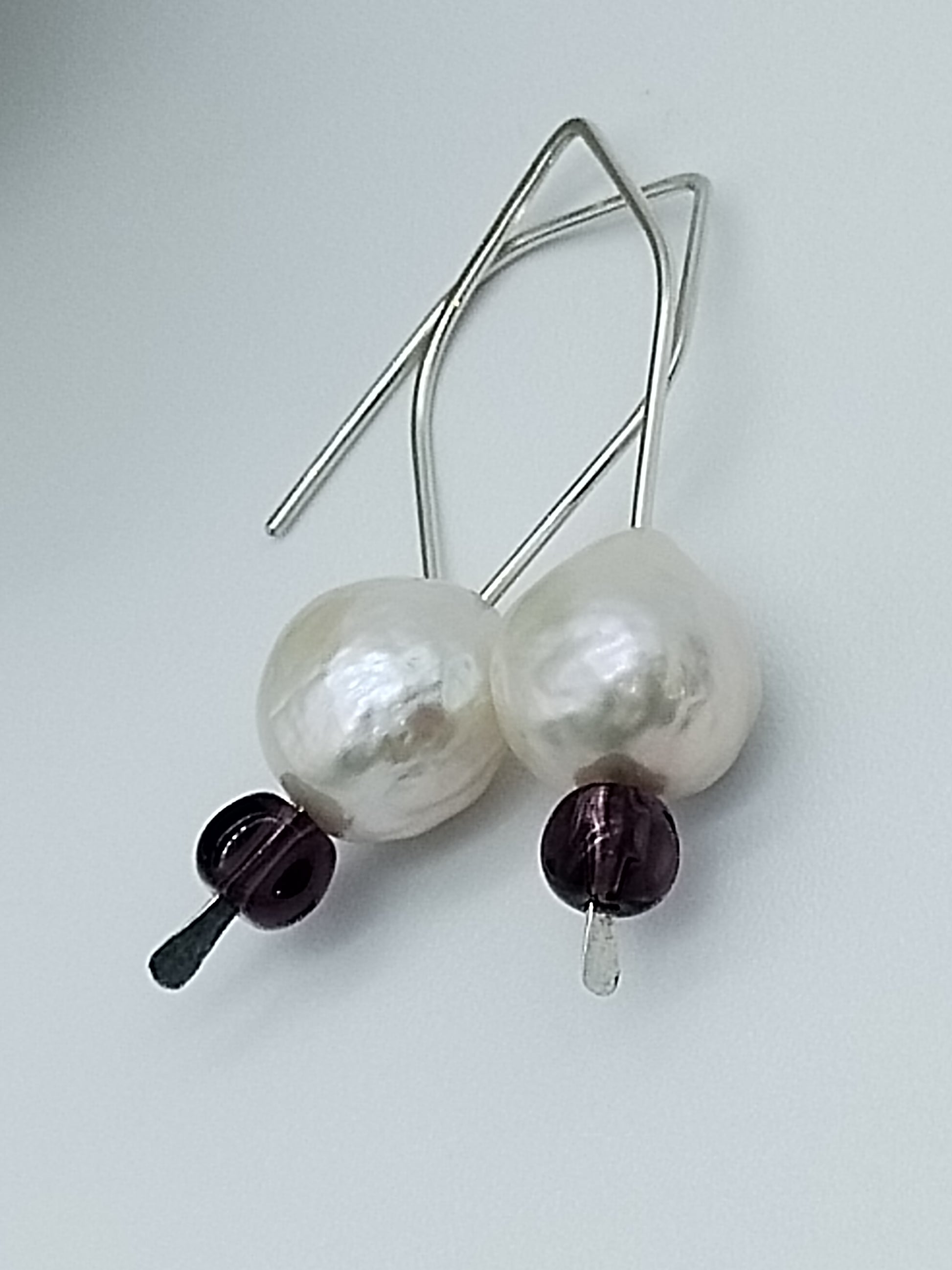 Wunderschöne große Edison-Perlen (13 mm) mit herrlichem Glanz. Sie wurden mit einem wunderschönen Amethyst-Nugget am unteren Ende kombiniert. Sie sind sehr leicht und perfekt für den Alltag.