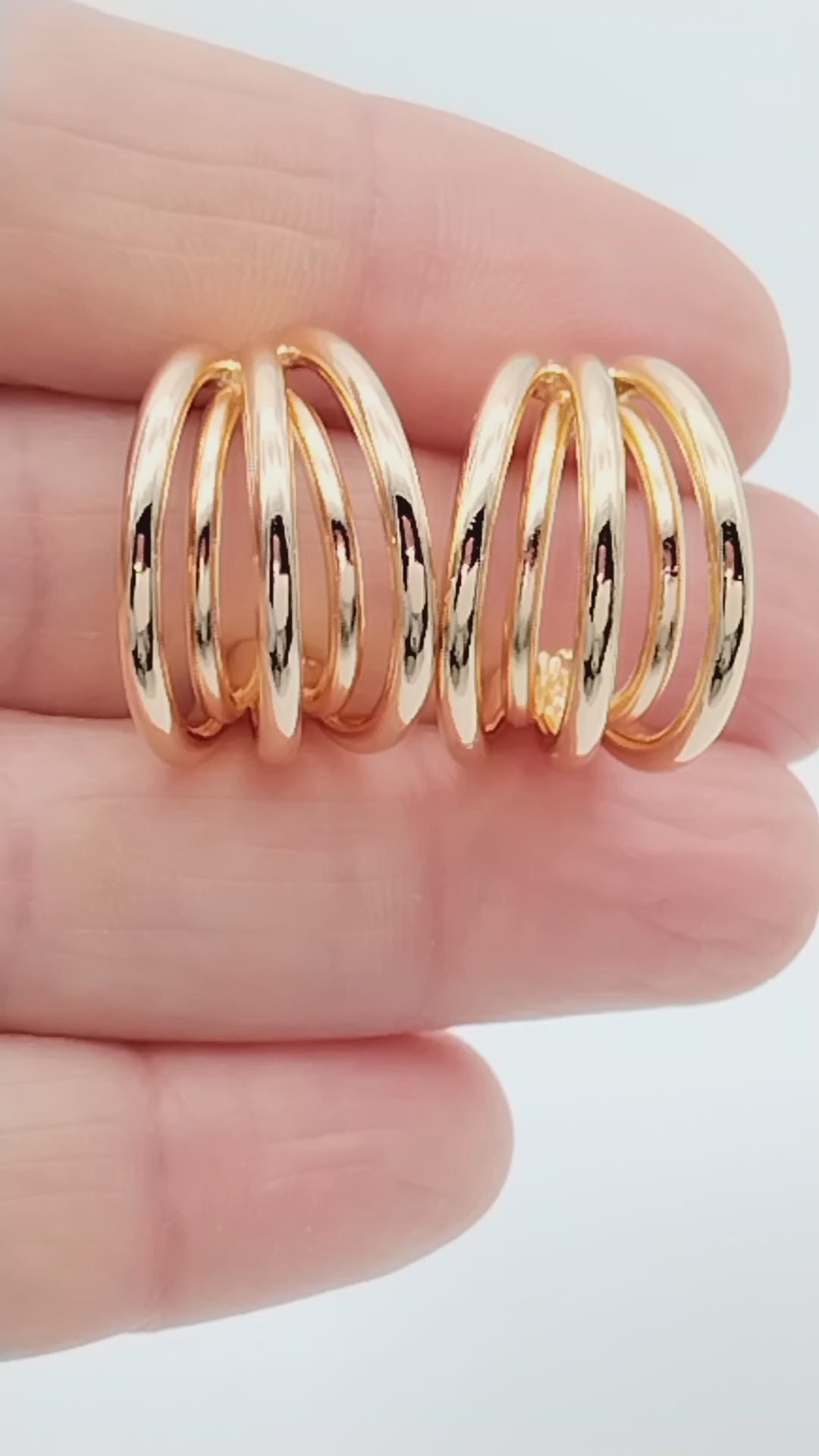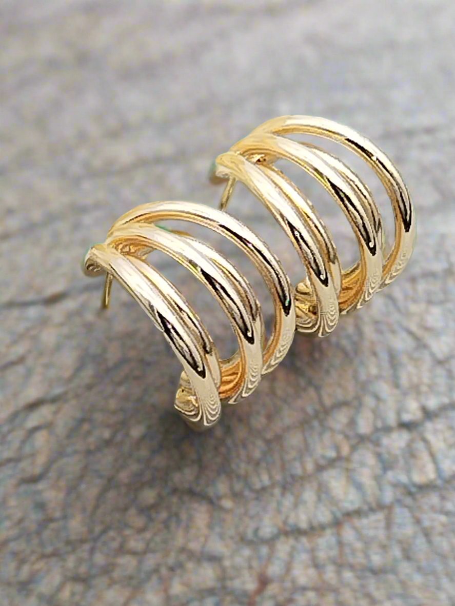 Mit diesen fünfreihigen goldenen Creolen können Sie jedes Outfit mühelos aufwerten. Diese Ohrringe aus atemberaubendem Gold mit fünf Creolenreihen sind perfekt für die modebewusste Frau. Mit einem sicheren Push-Back-Verschluss sind sie für jeden Anlass geeignet. Verwöhnen Sie das besondere Mädchen oder die besondere Mutter in Ihrem Leben in dieser Frühlings- und Sommersaison mit einem einzigartigen Schmuckstück.