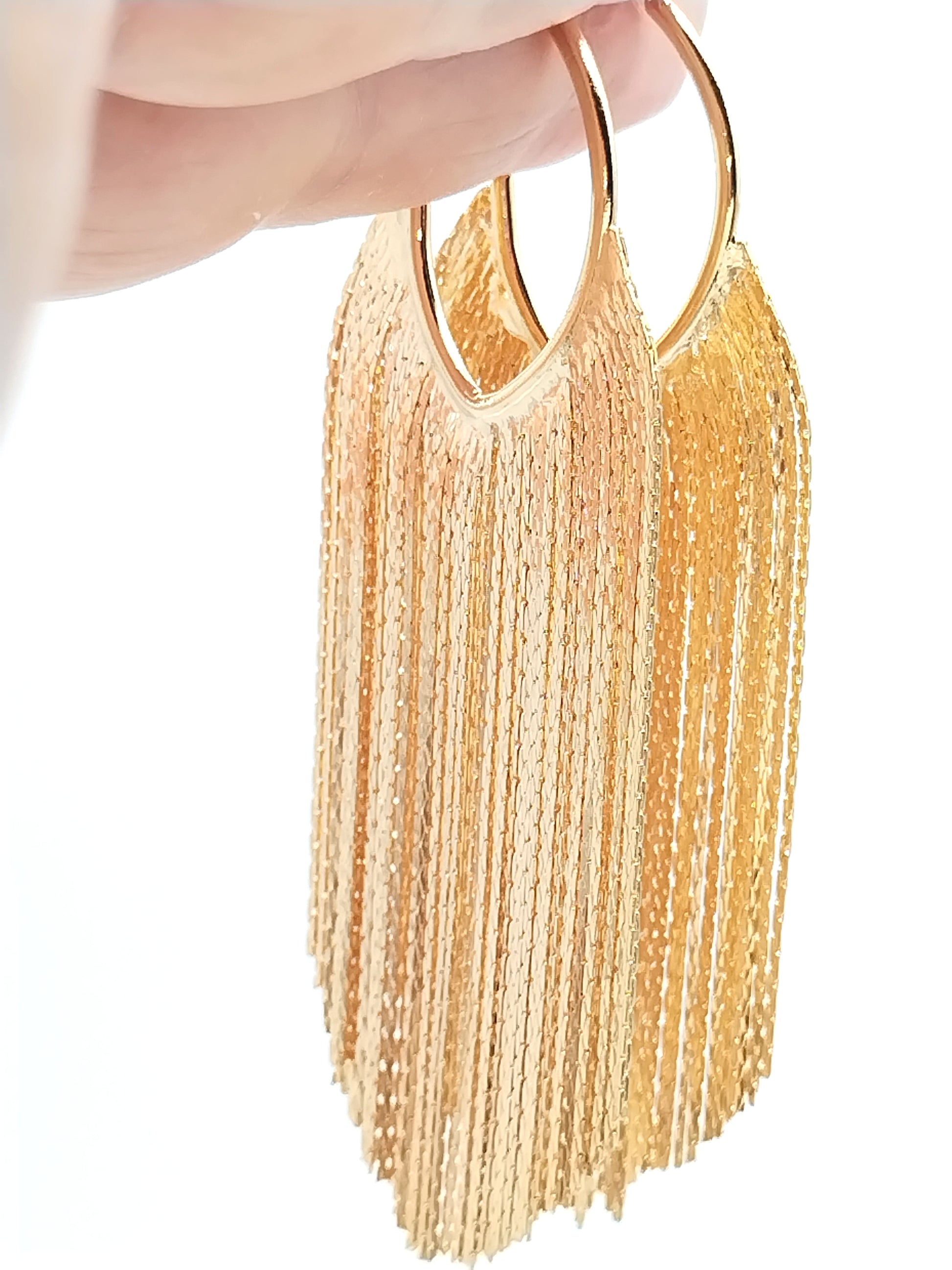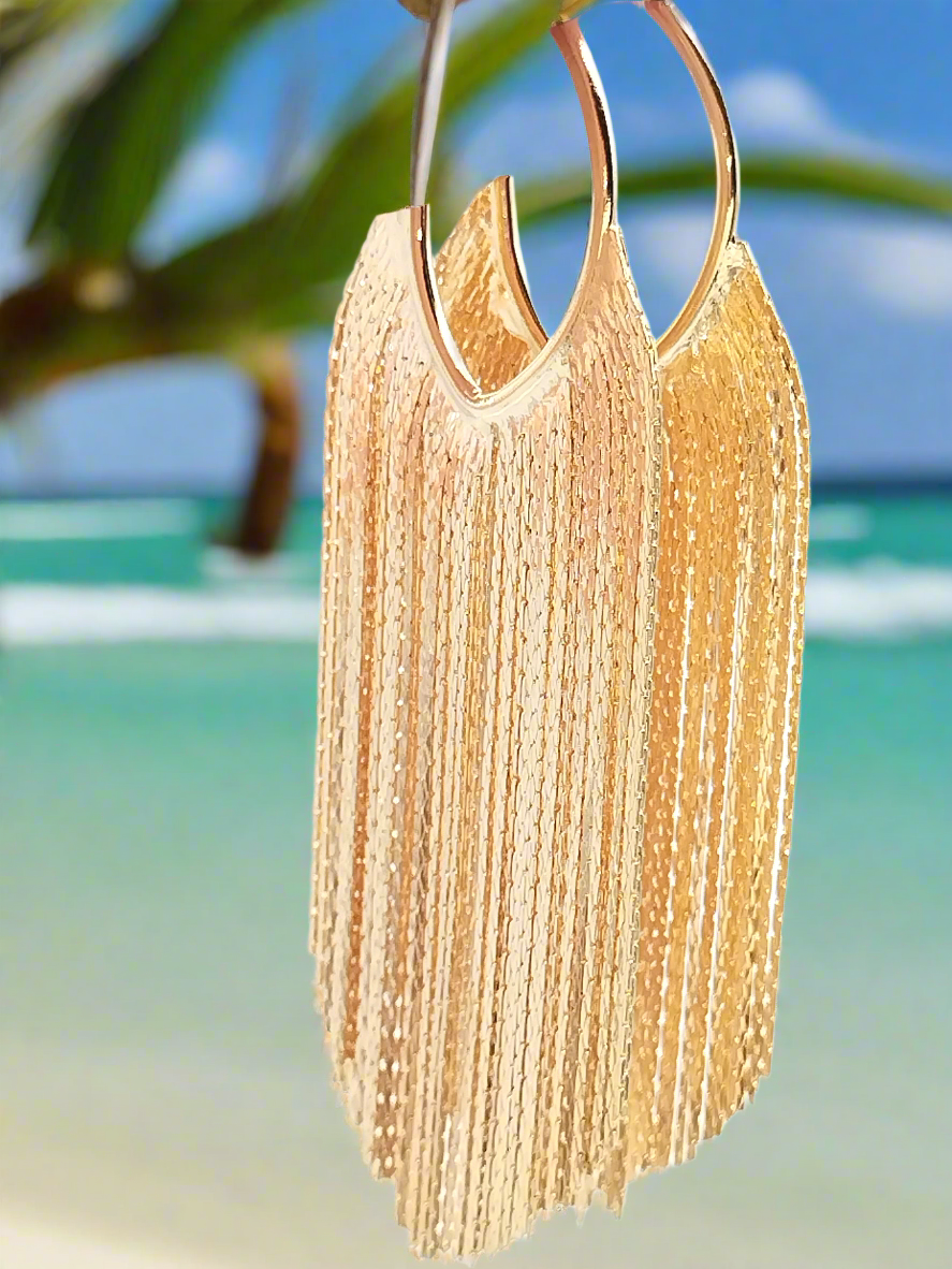 Lange goldene Creolen mit Fransen