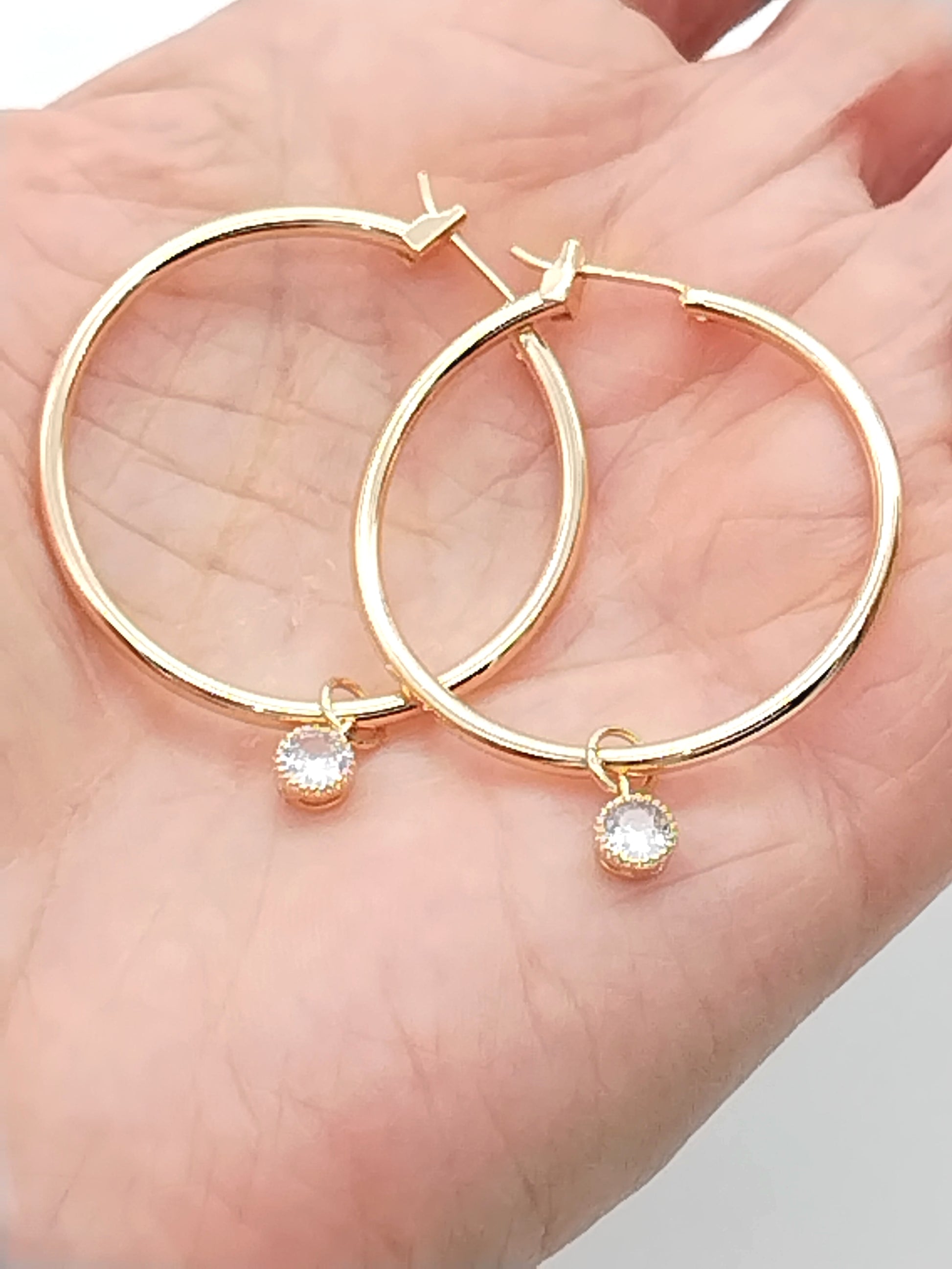 Große goldene Creolen mit abnehmbarem CZ-Anhänger | Vielseitig und stilvoll