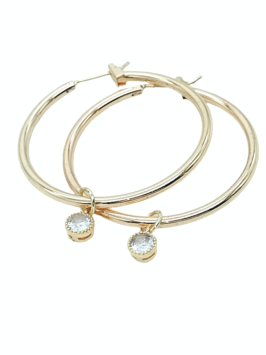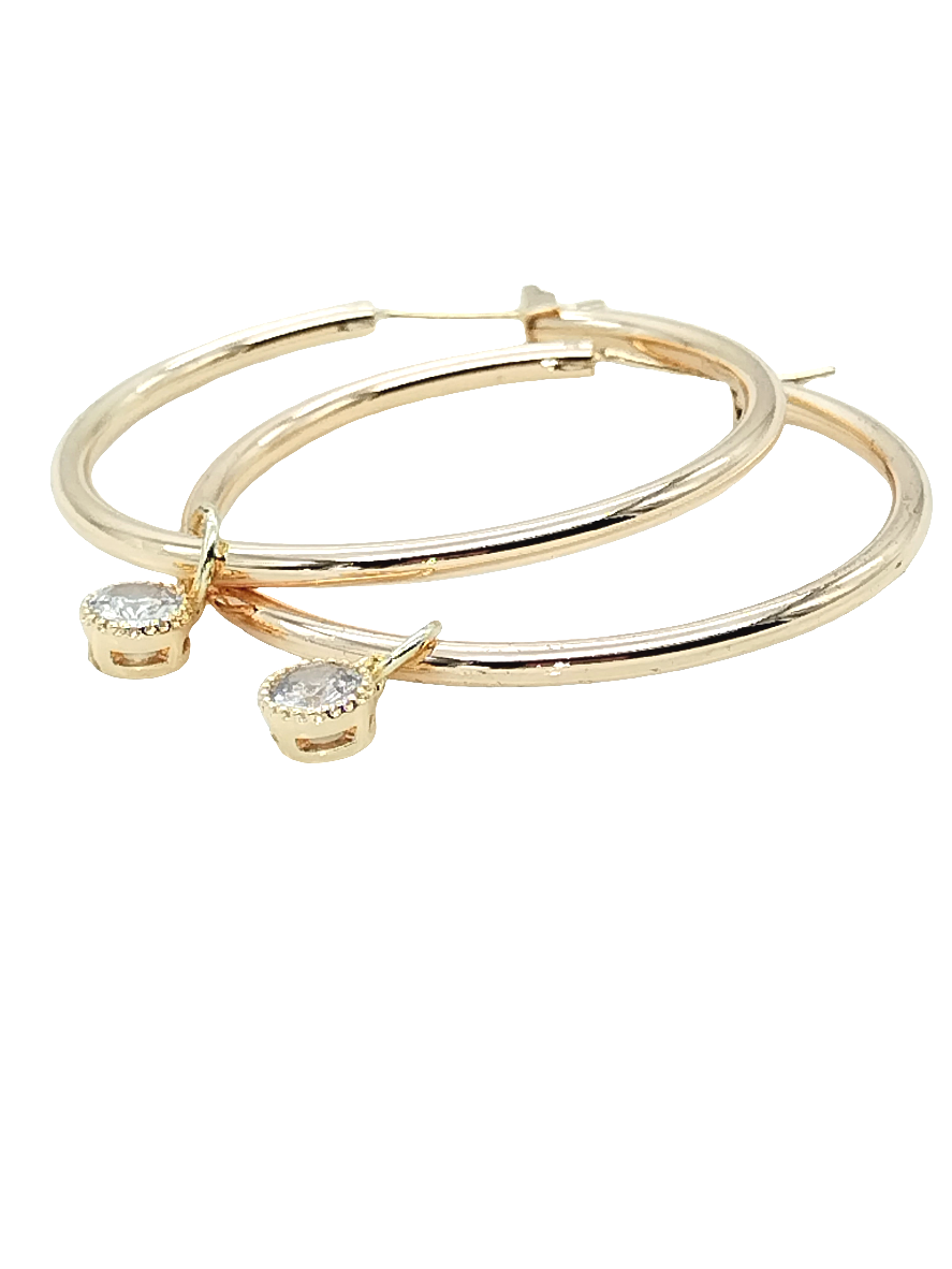 Diese großen goldenen Creolen wurden fachmännisch für die stilvolle Frau gefertigt und verfügen über einen wunderschönen facettierten CZ-Anhänger. Diese Creolen sind das perfekte Accessoire für Frühling und Sommer und verleihen jedem Outfit einen Hauch von Glamour. Sie werden aus hochwertigen Materialien hergestellt und sind ein großartiges Geschenk für jede modebewusste Frau. Leicht