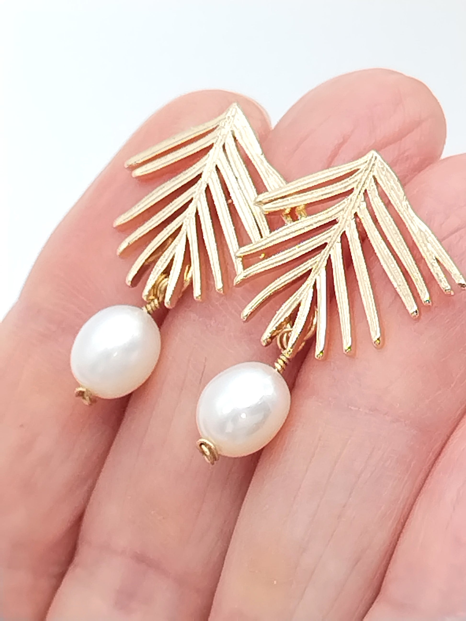 Diese 18 Karat vergoldeten Ohrringe mit baumelnden Perlen verleihen Ihrem Fashionista-Stil einen Hauch von Natur. Diese leichten und einzigartigen Ohrringe passen perfekt zur neuen Herbst-Winter-Kollektion und eignen sich perfekt für lässige und berufstätige Frauen. Diese hochwertigen Ohrringe sind ein Muss für jedes Mädchen und ein tolles Geschenk für Mütter und Freundinnen.