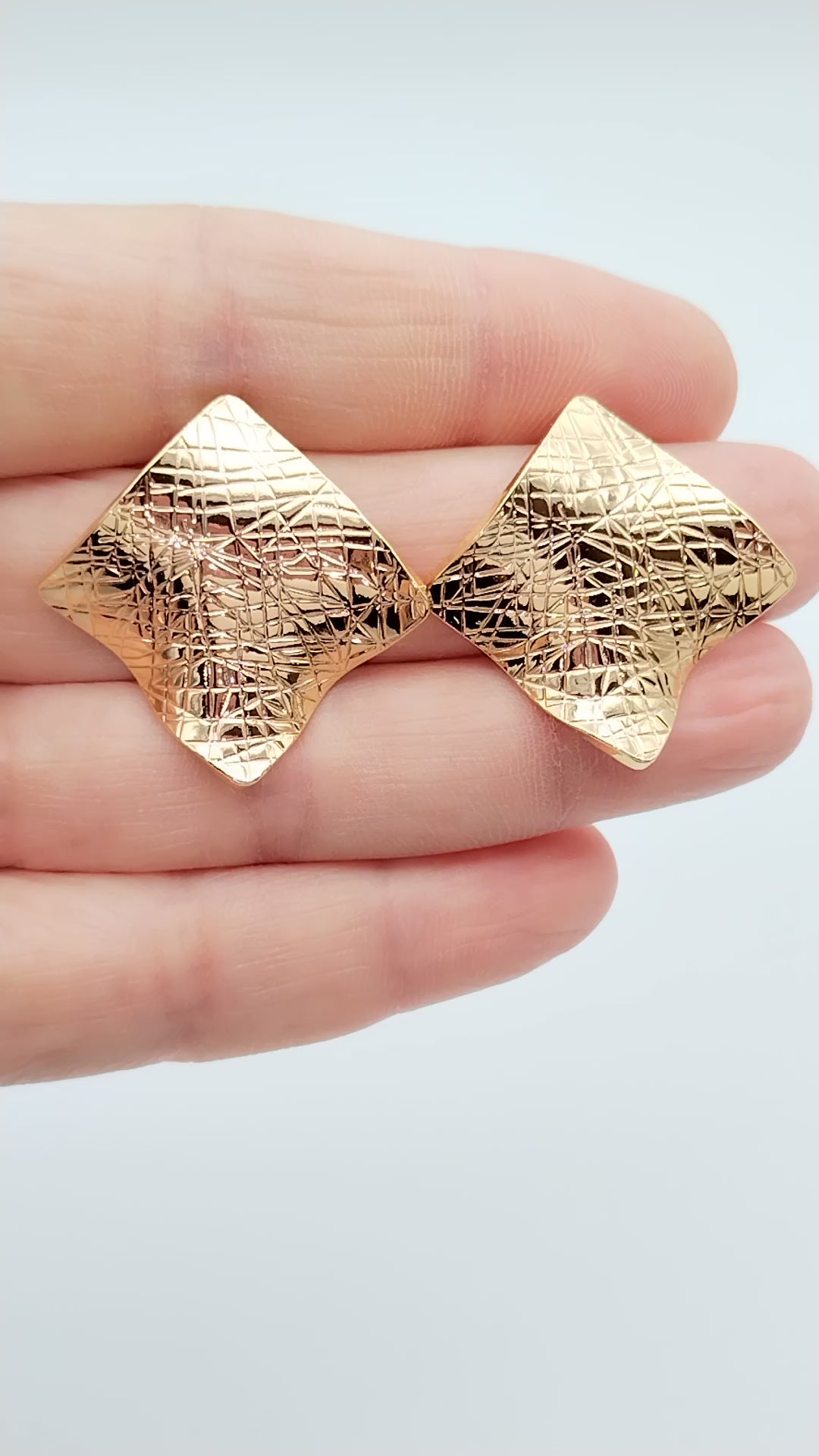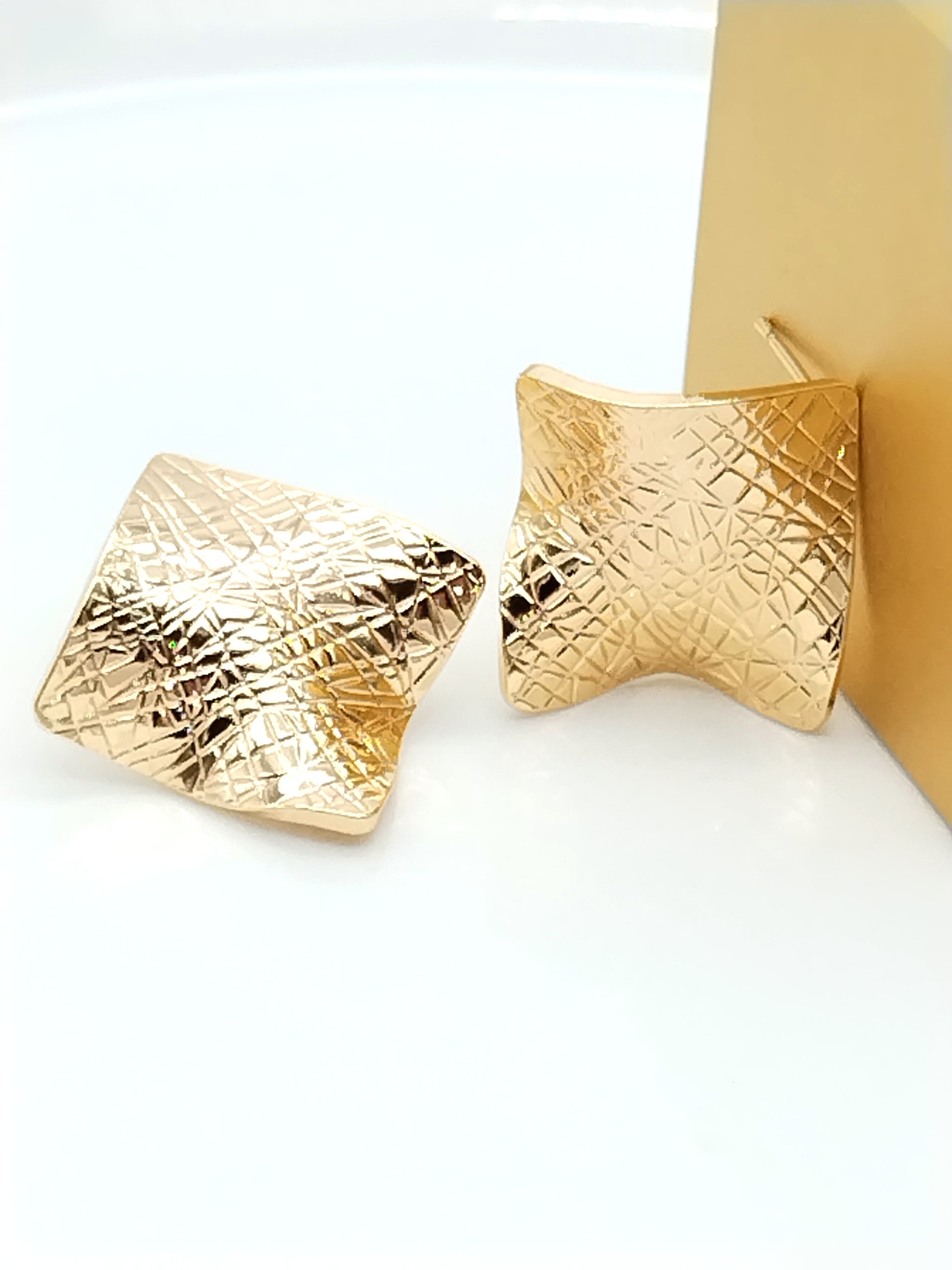 Klobige, gewellte Ohrstecker in Rombic-Optik in Gold