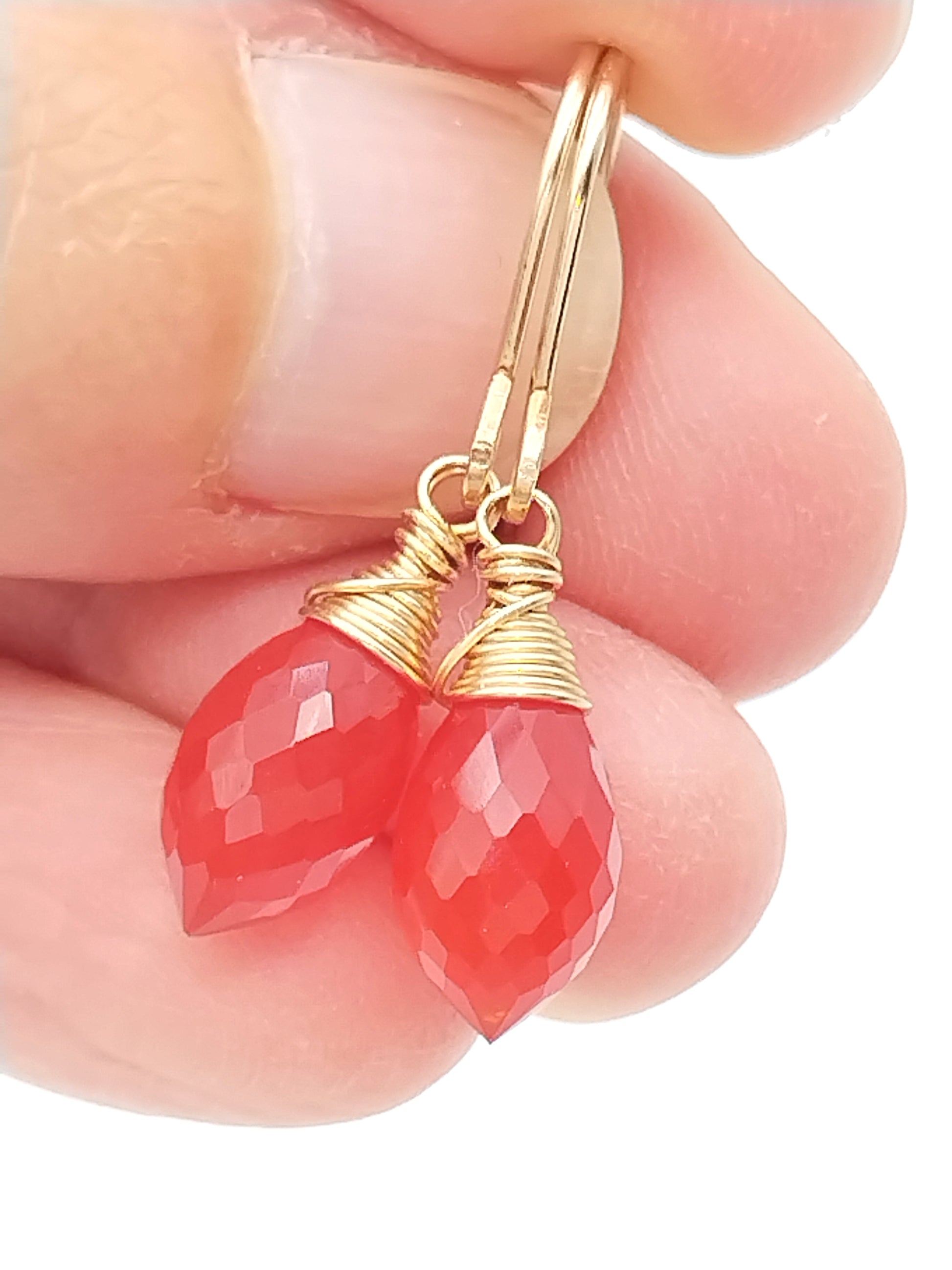 Pendientes colgantes de oro con pequeñas gotas de cornalina