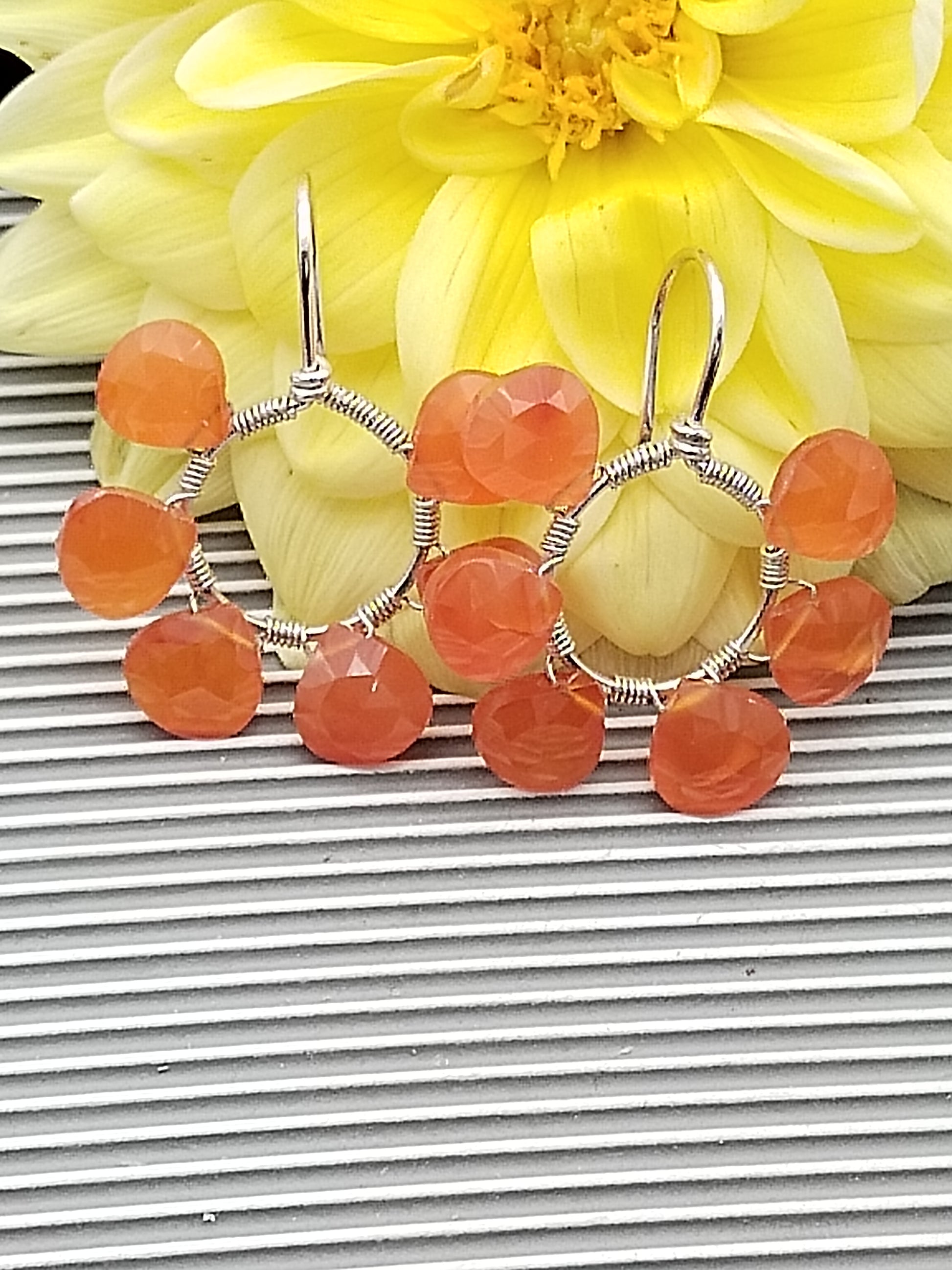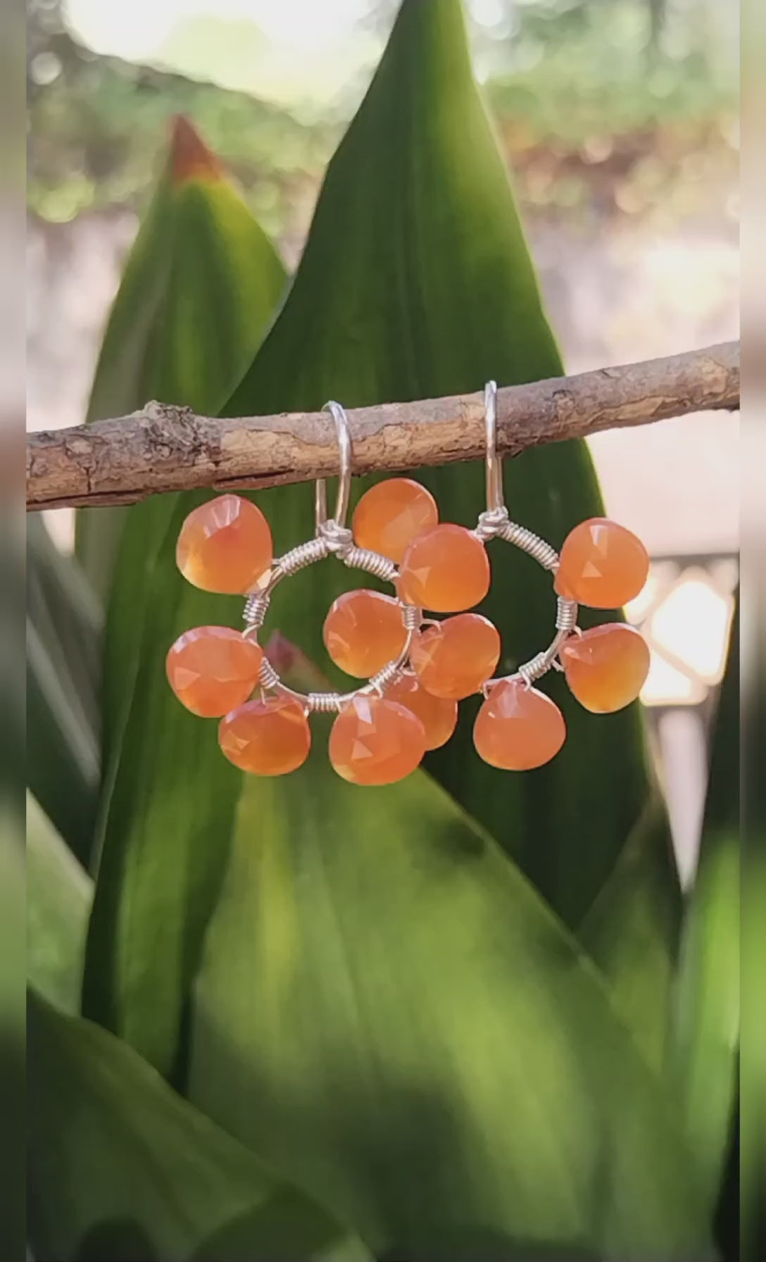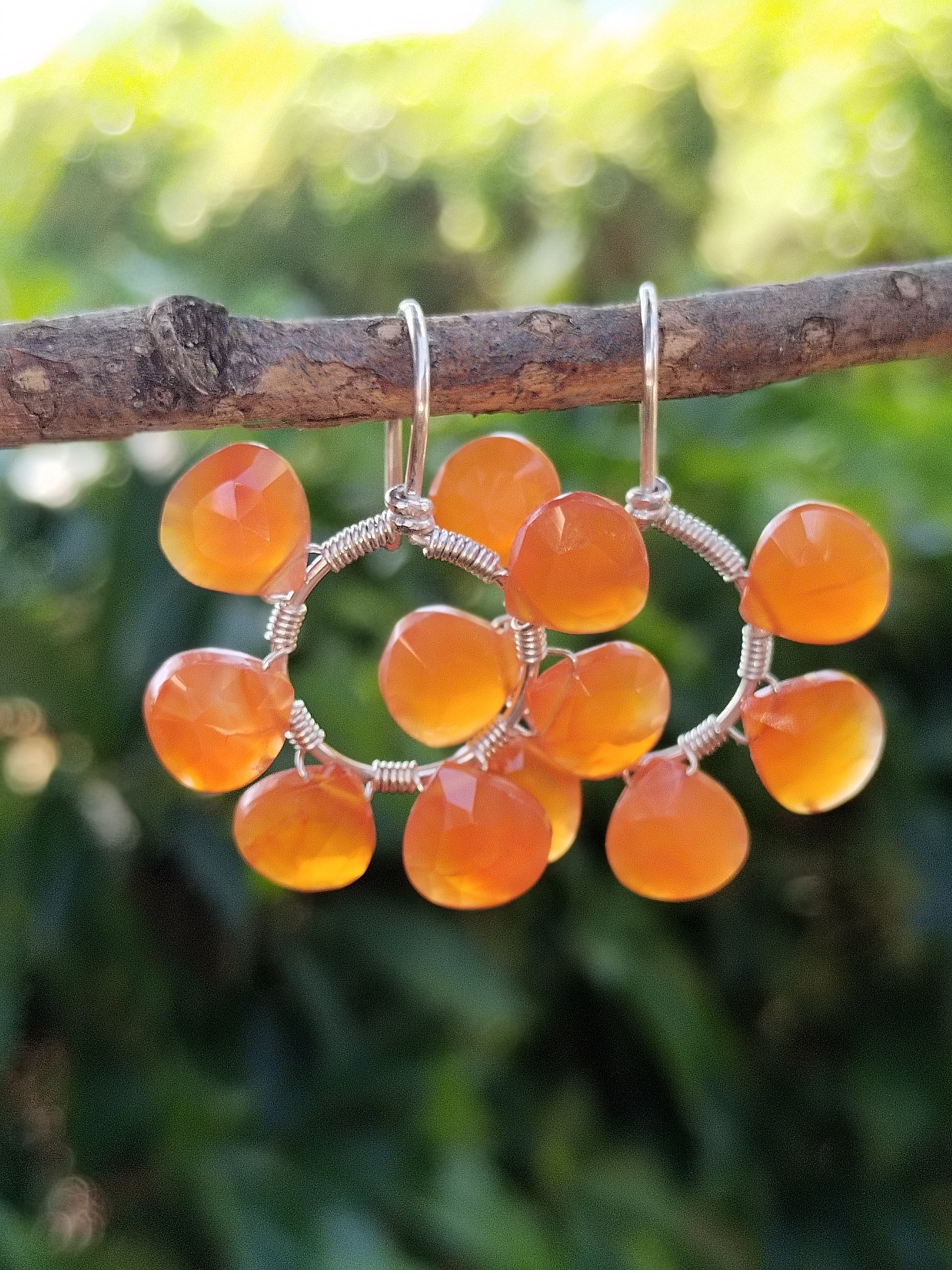 Preciosos aros colgantes de cornalina AAA+ (10 mm) meticulosamente envueltos a mano en plata de ley 925. Todo ha sido forjado a mano por mí, como siempre, y en este caso decidí hacer un diseño genial y único colocando las gotas de esa manera... aunque también es bastante laborioso.
