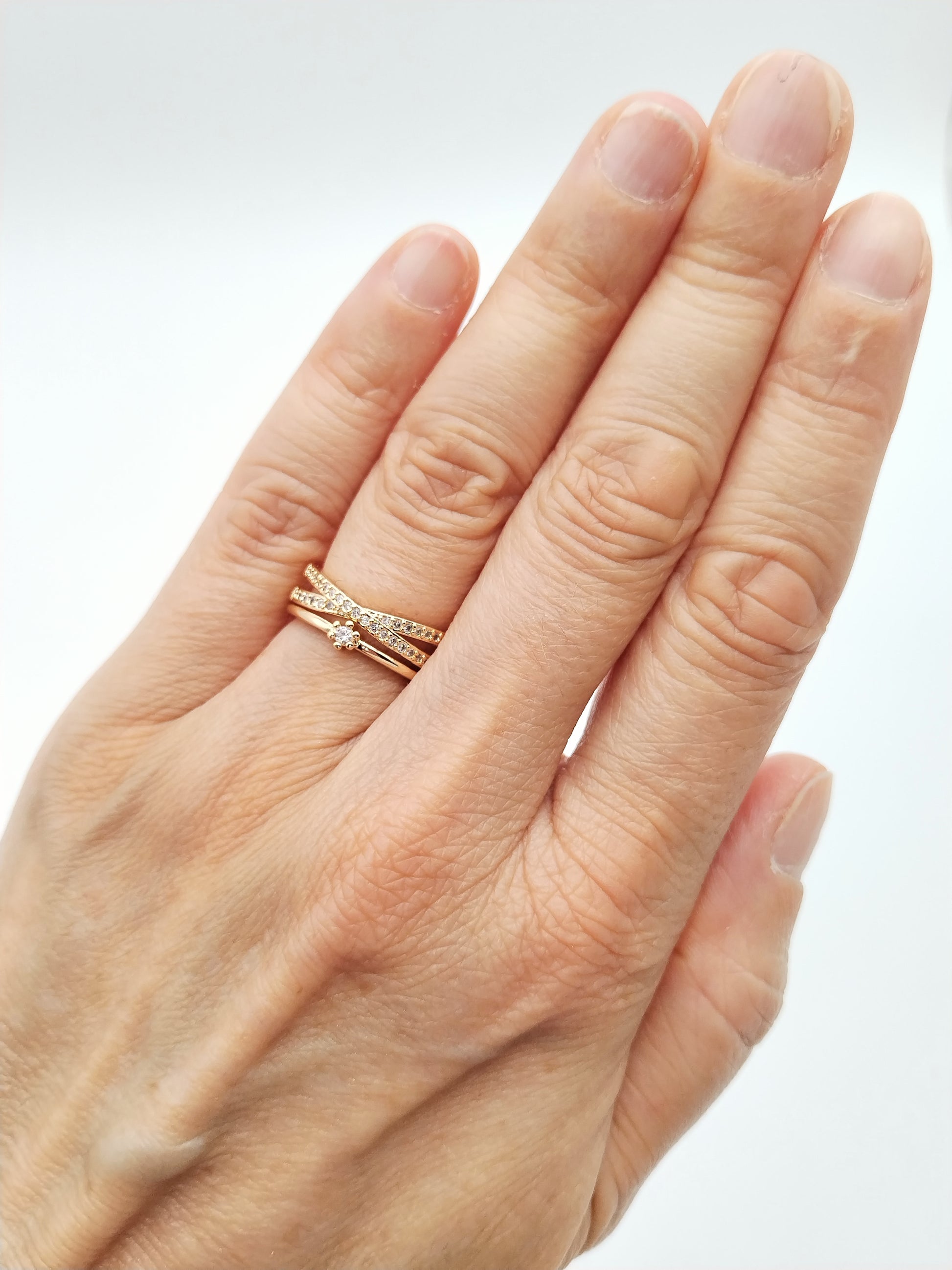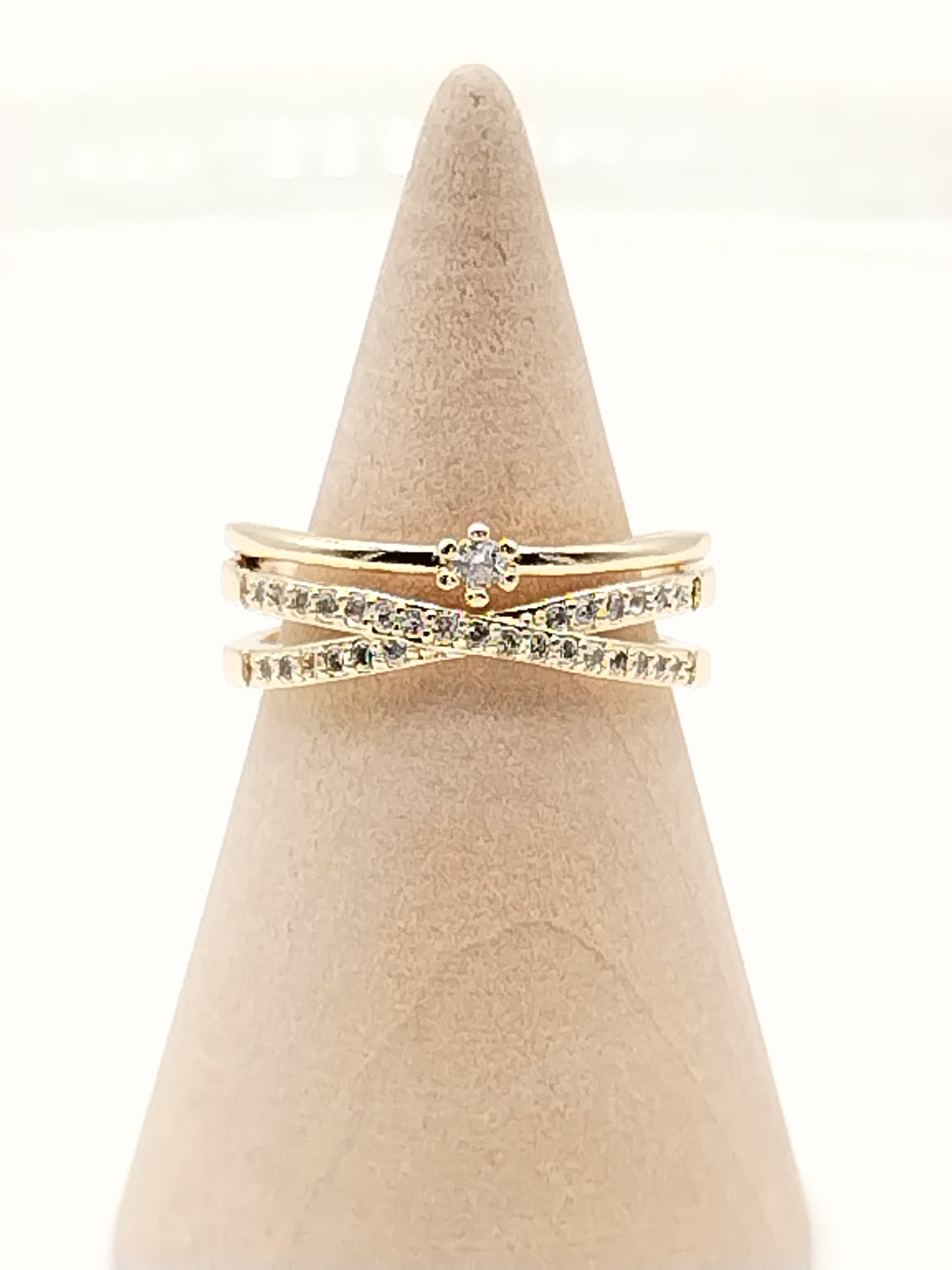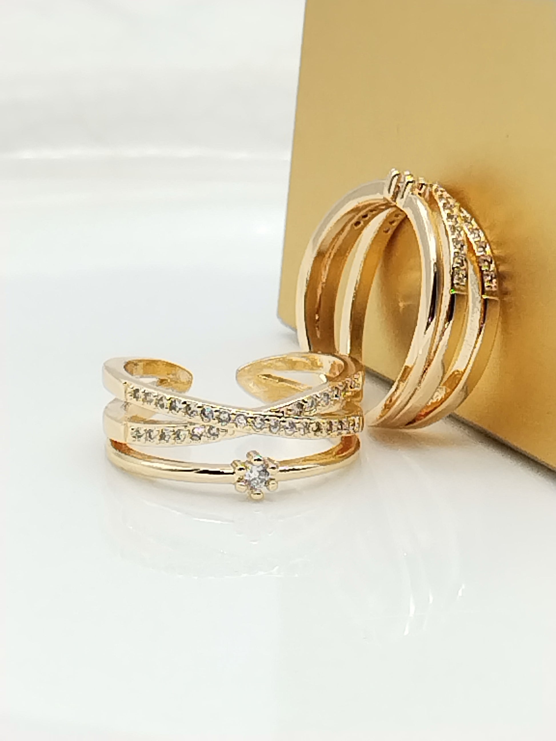 Mejora tu estilo con nuestro elegante anillo de circonitas cúbicas bañado en oro. Perfecto para cualquier ocasión, esta moderna pieza presenta un impresionante diseño en forma de cruz con tres filas superpuestas. El diseño minimalista y moderno sin duda dejará huella y te hará destacar entre la multitud. Un artículo imprescindible para cualquier mujer a la moda o un gran regalo para las chicas que aman el estilo urbano.