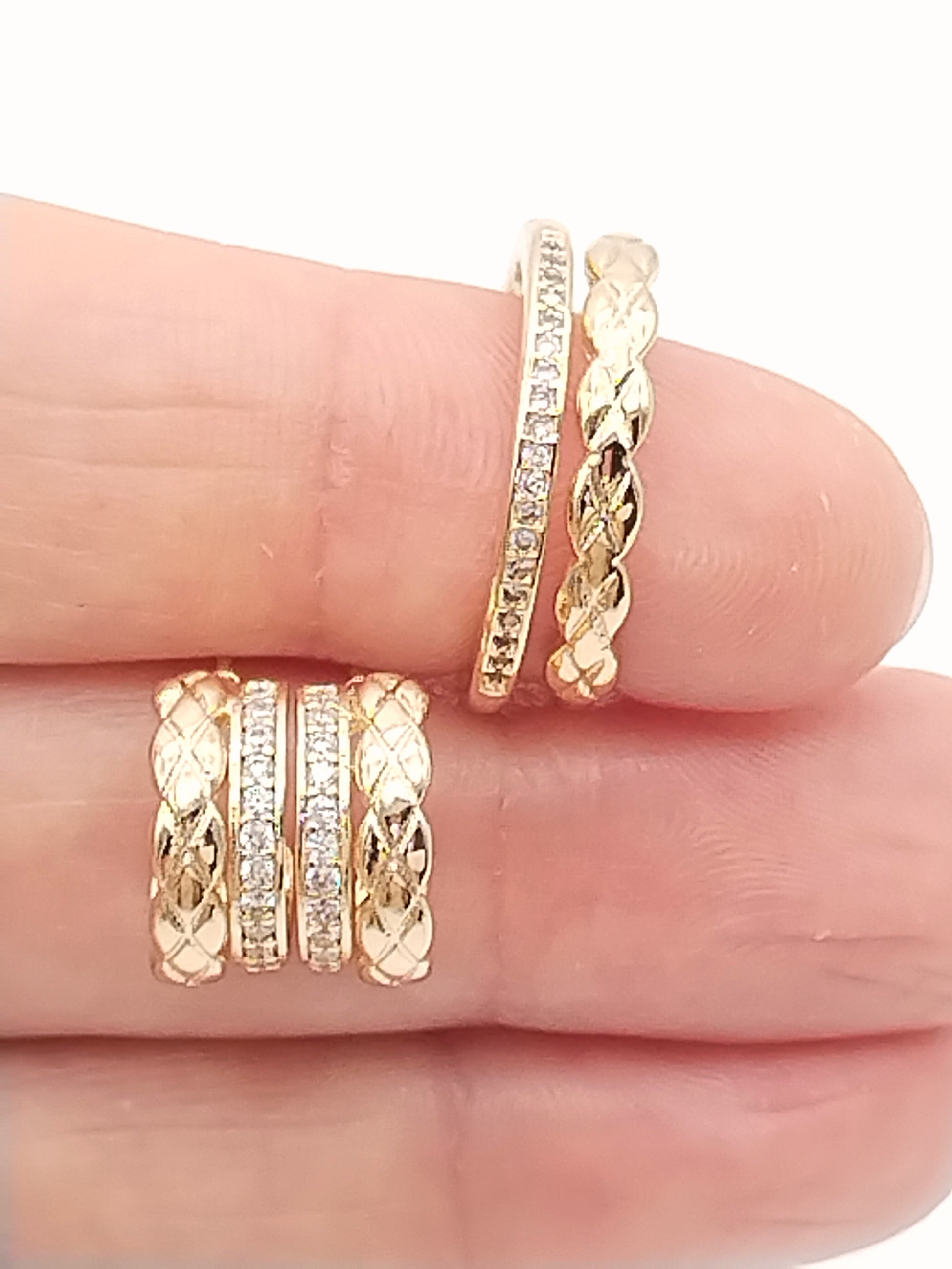 Anillo de doble banda, oro de 18 quilates, circonita cúbica, trenzado, apilable, tendencia, ajustable, regalos, joyas, mujeres