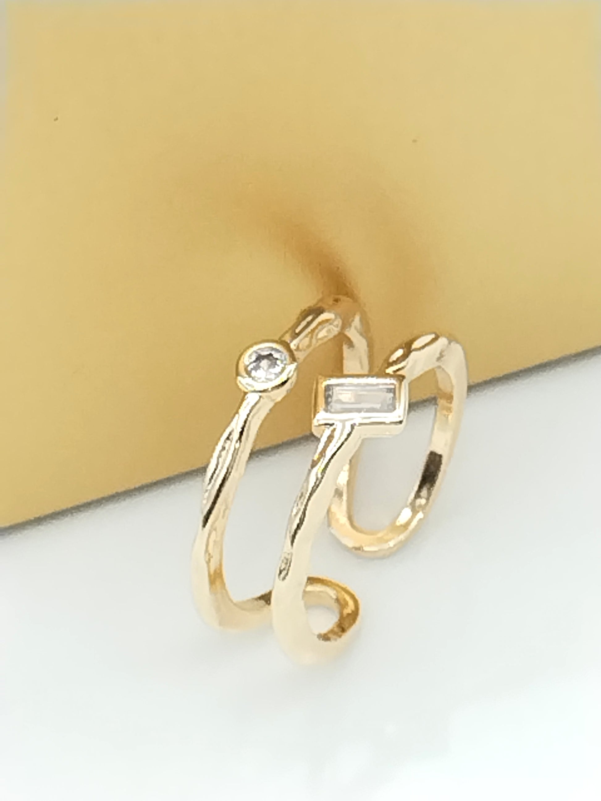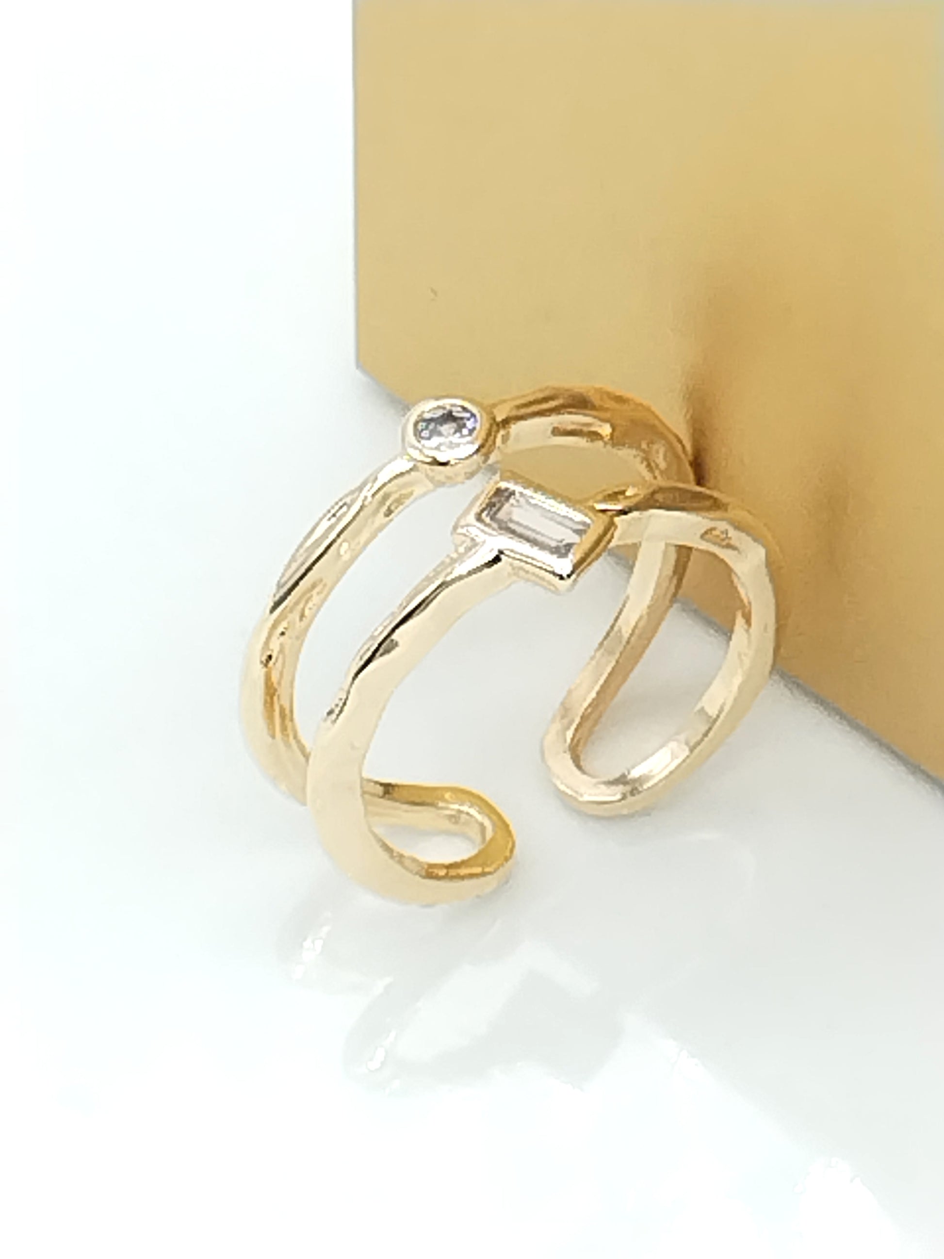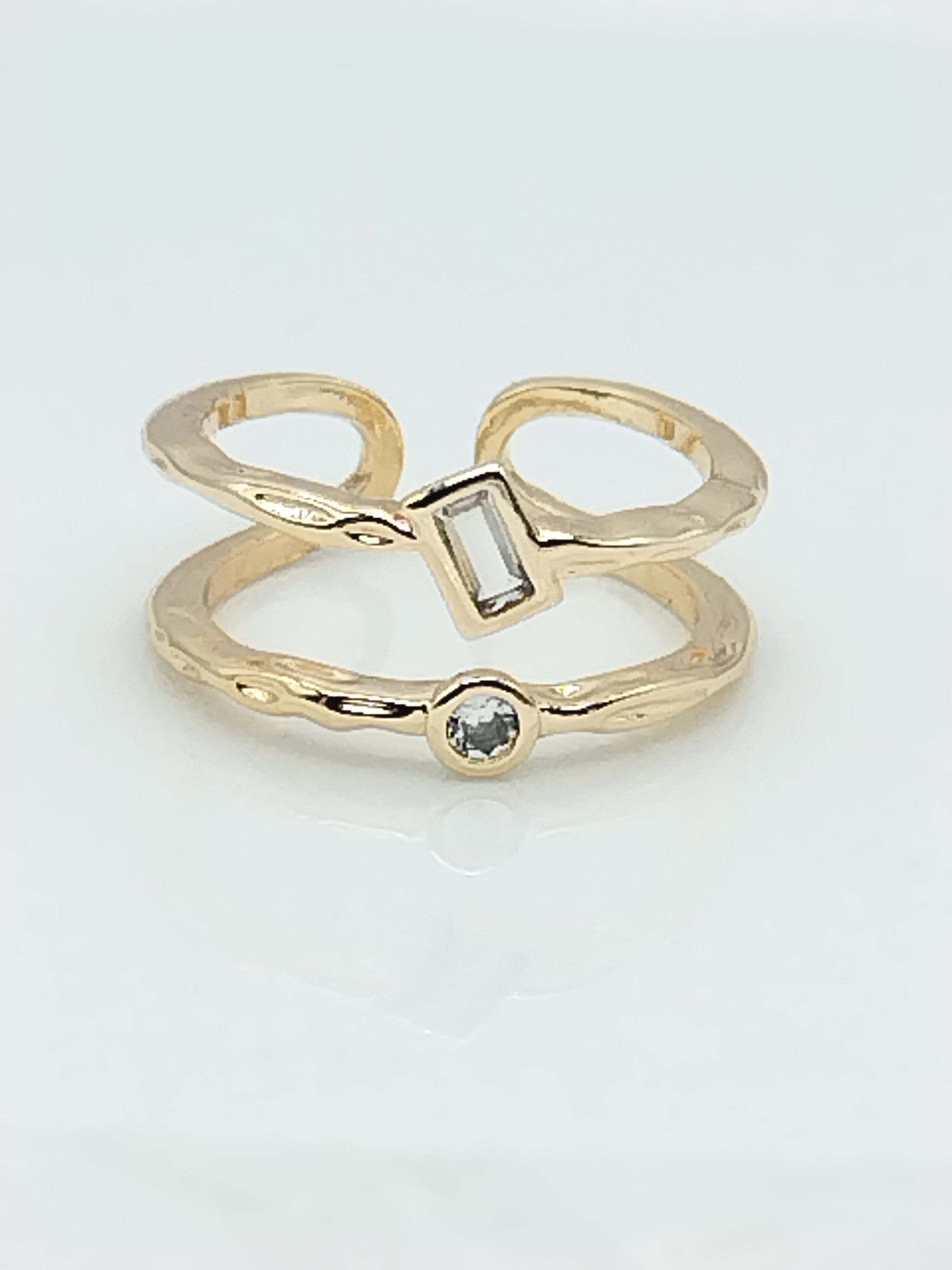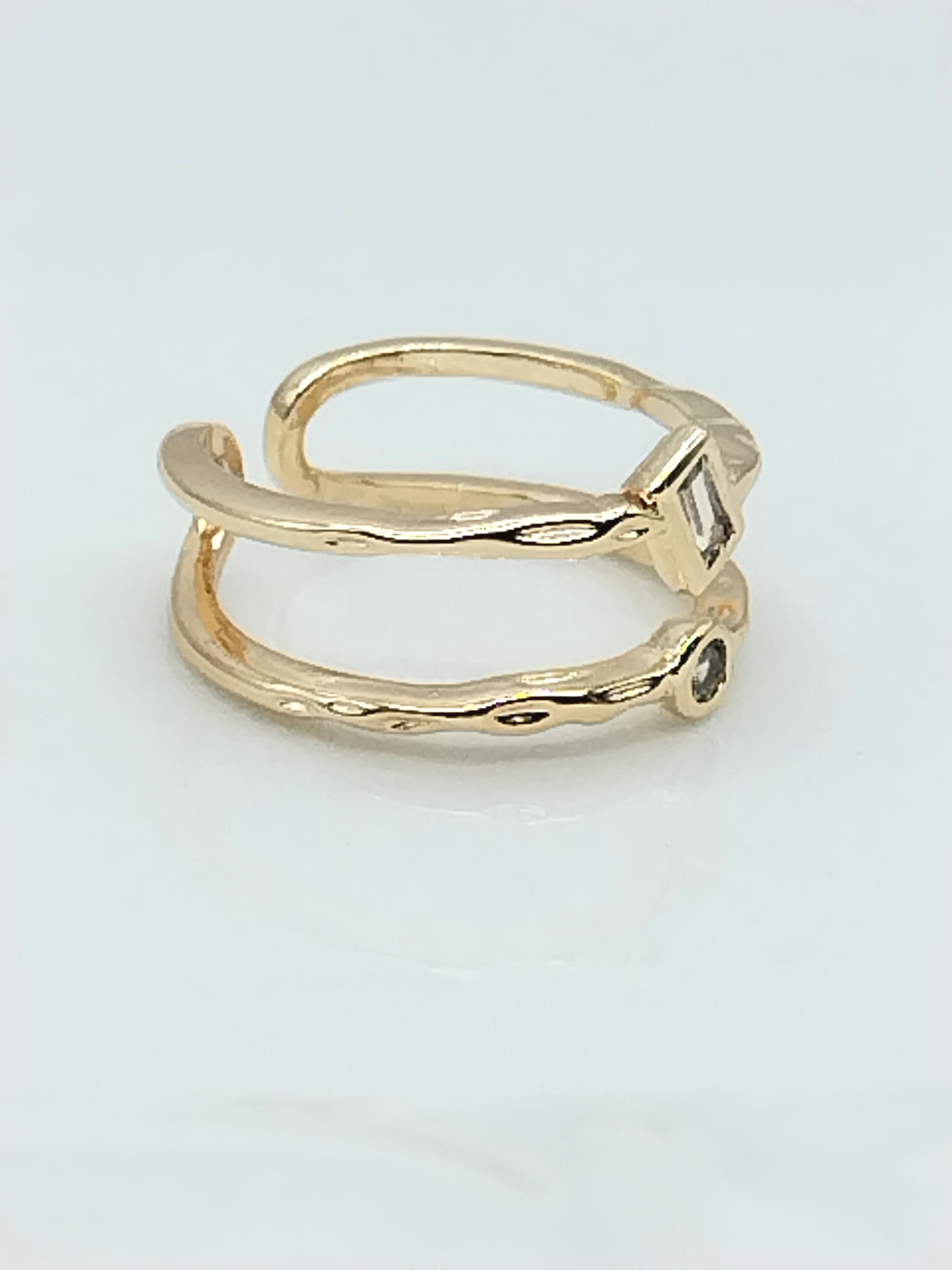 Anillo de oro de doble banda con circonitas cúbicas