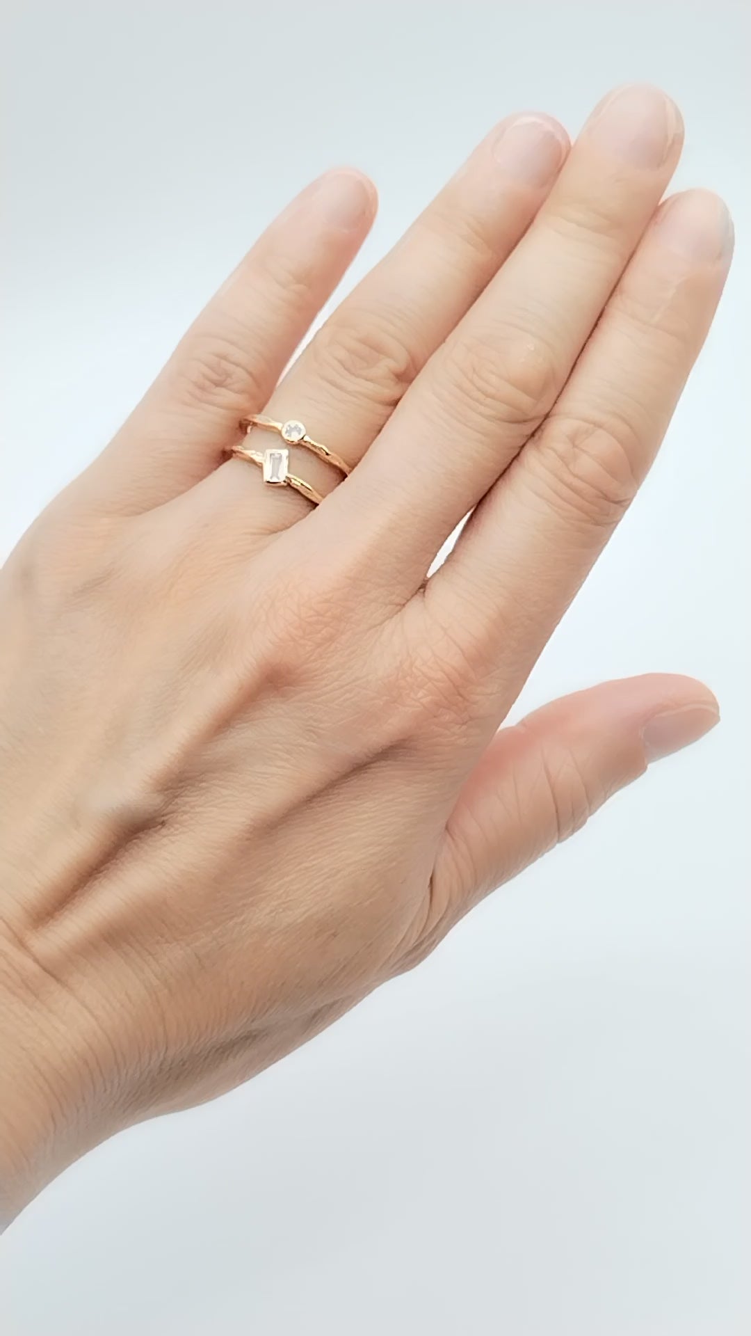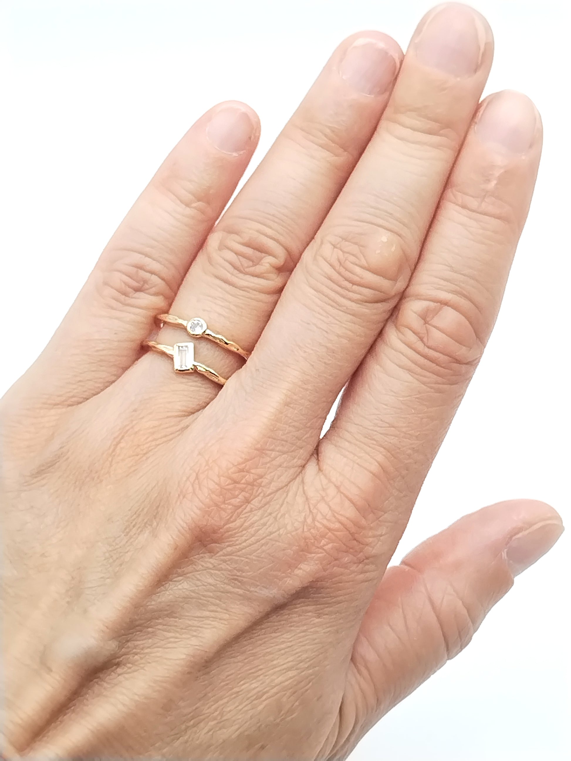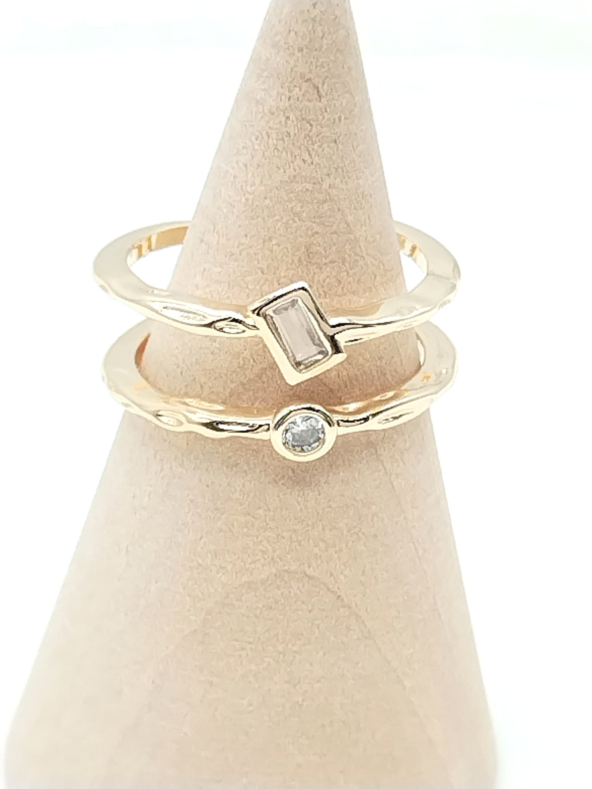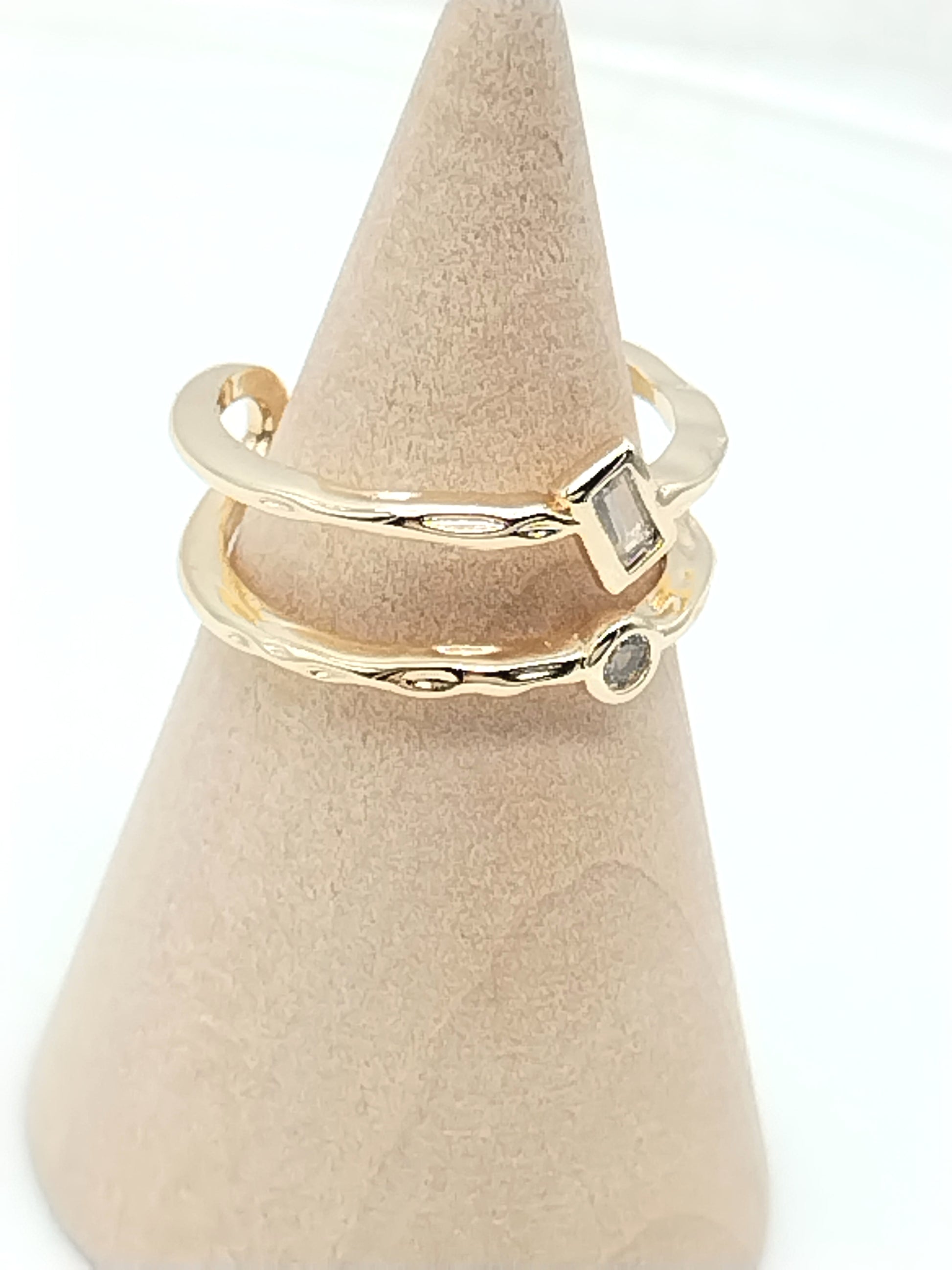 Anillo de oro de doble banda con circonitas cúbicas