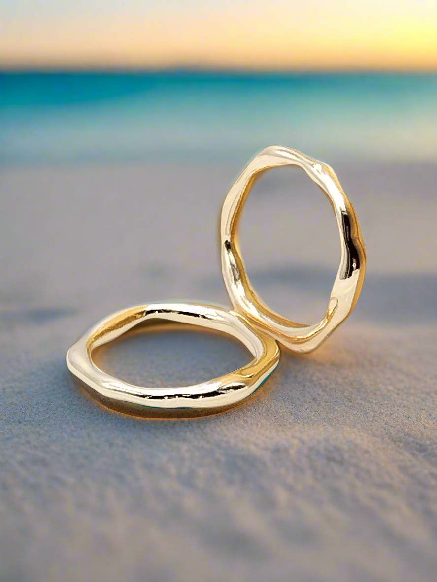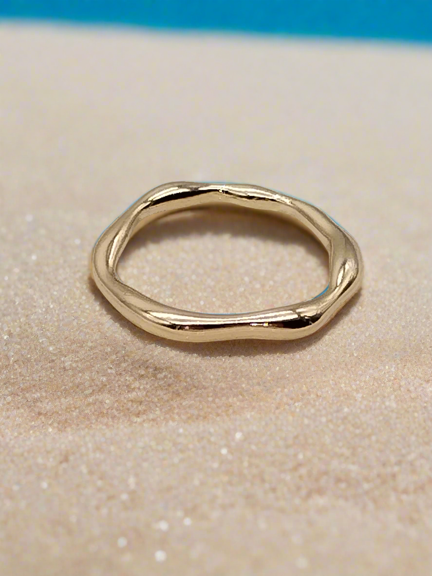 Anillo de banda dorada, irregular, minimalista, apilable, chapado en oro, joyería de moda, niñas, mamá