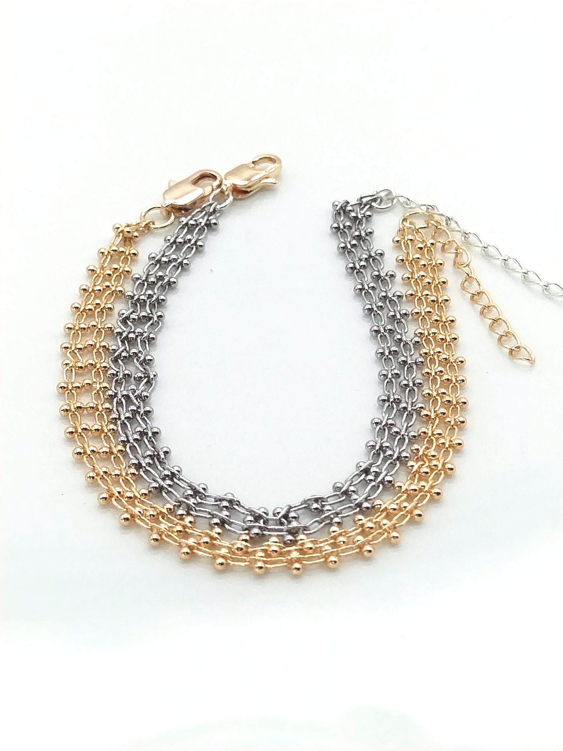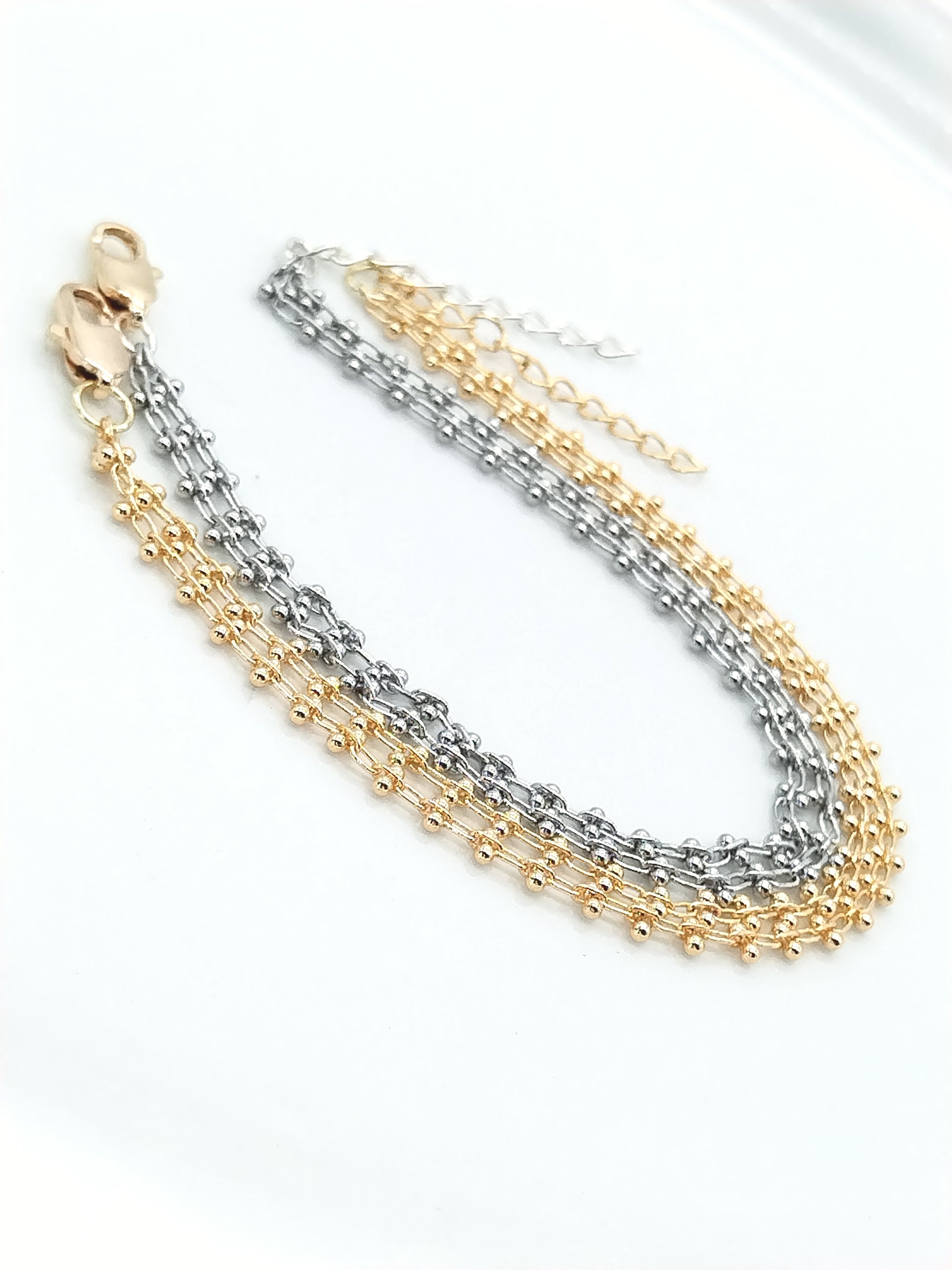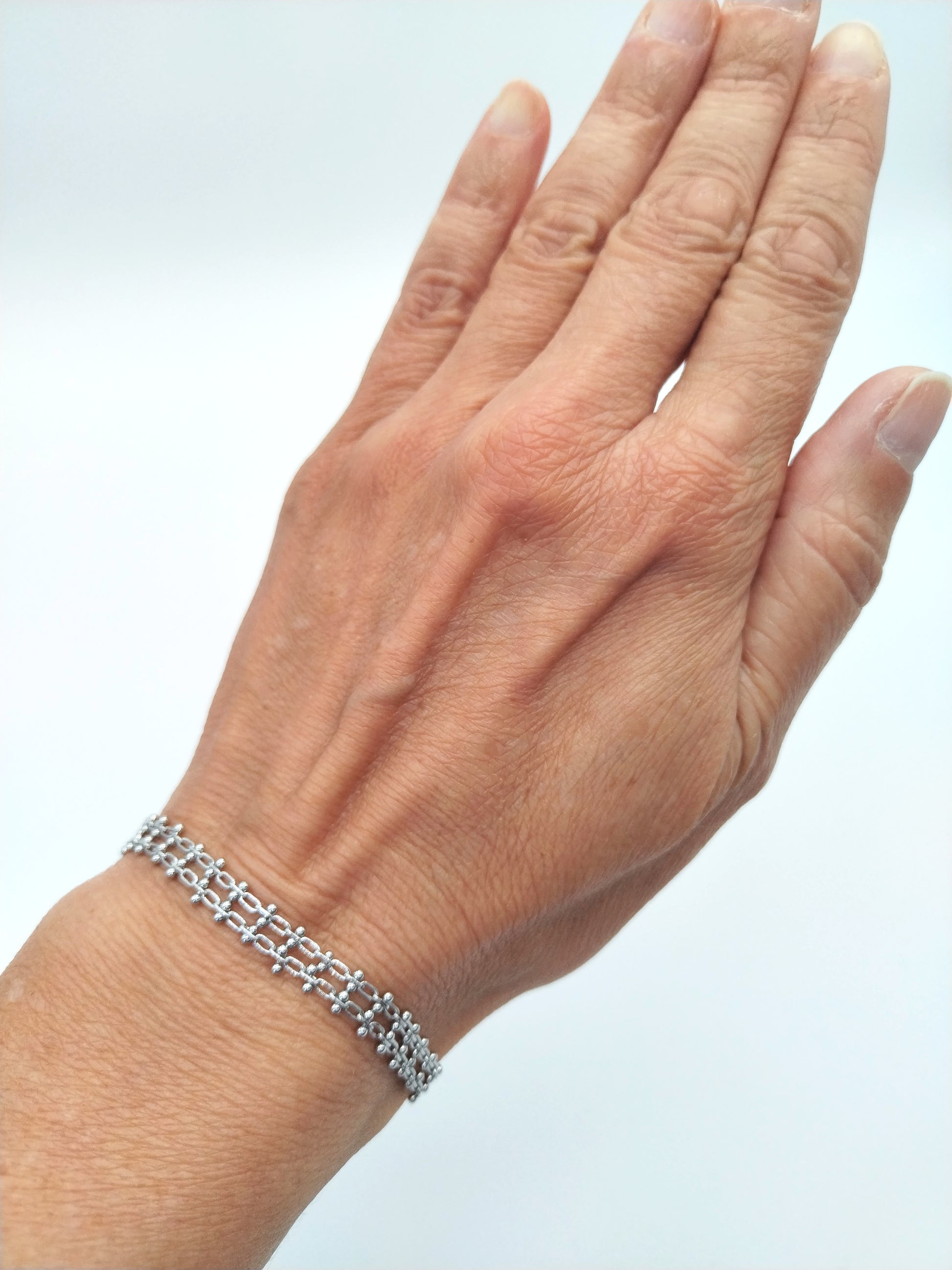 Realza tu estilo con nuestra delicada pulsera de doble cadena plateada. Esta pieza minimalista y elegante es perfecta para las amantes de la moda que valoran la sostenibilidad. Llévala a diario o combínala con otras pulseras de nuestra tienda. Disponible tanto en oro como en plata, también es el regalo perfecto para San Valentín. Completa el look con nuestro collar a juego.