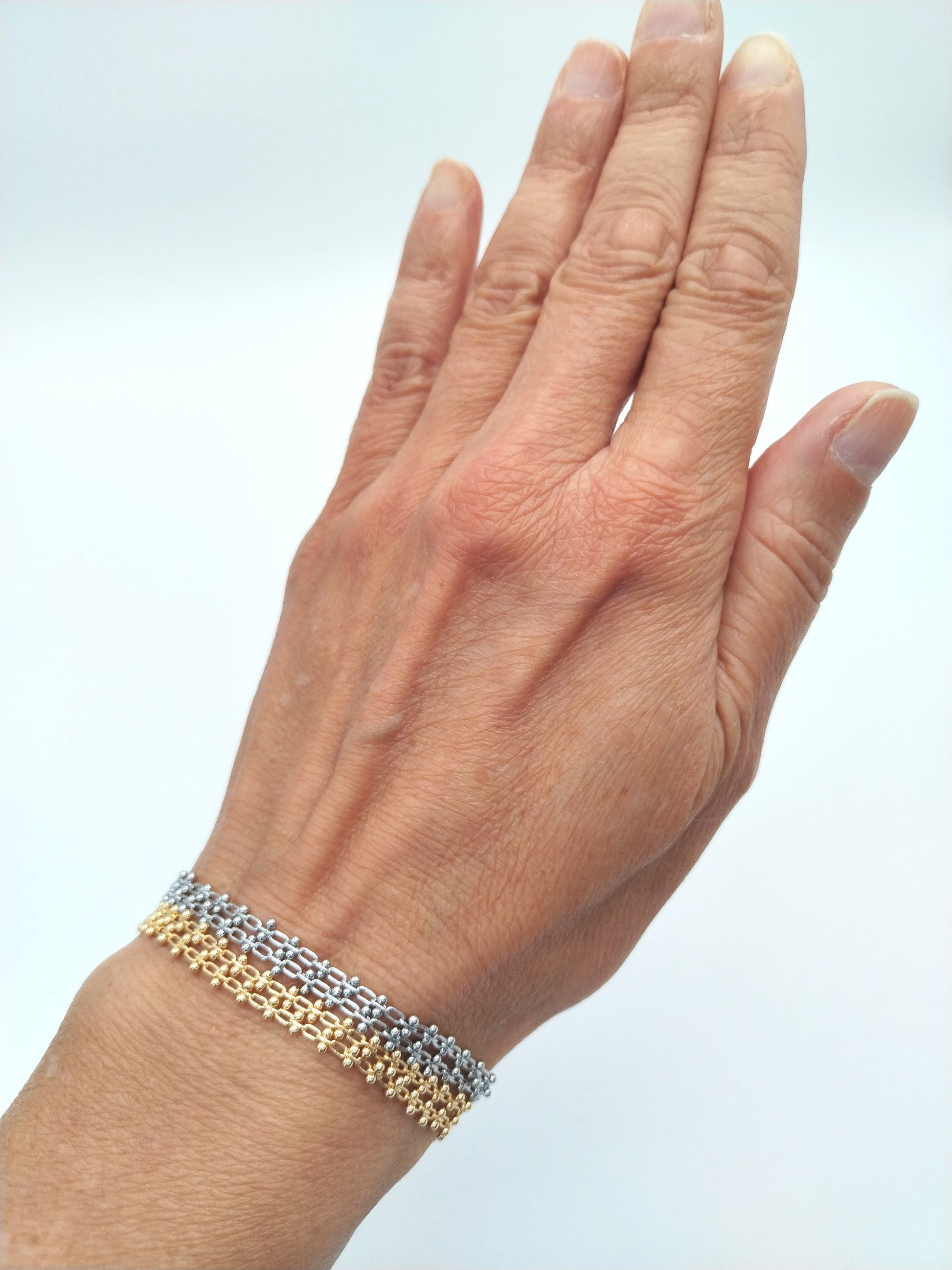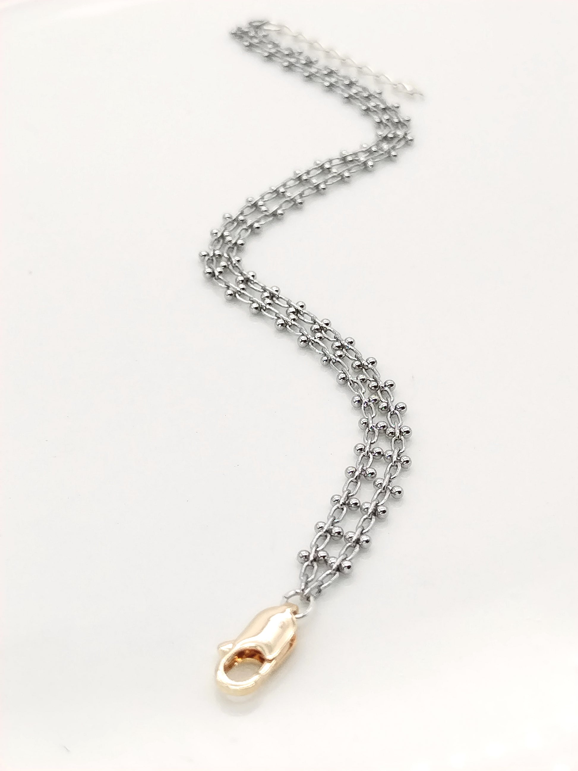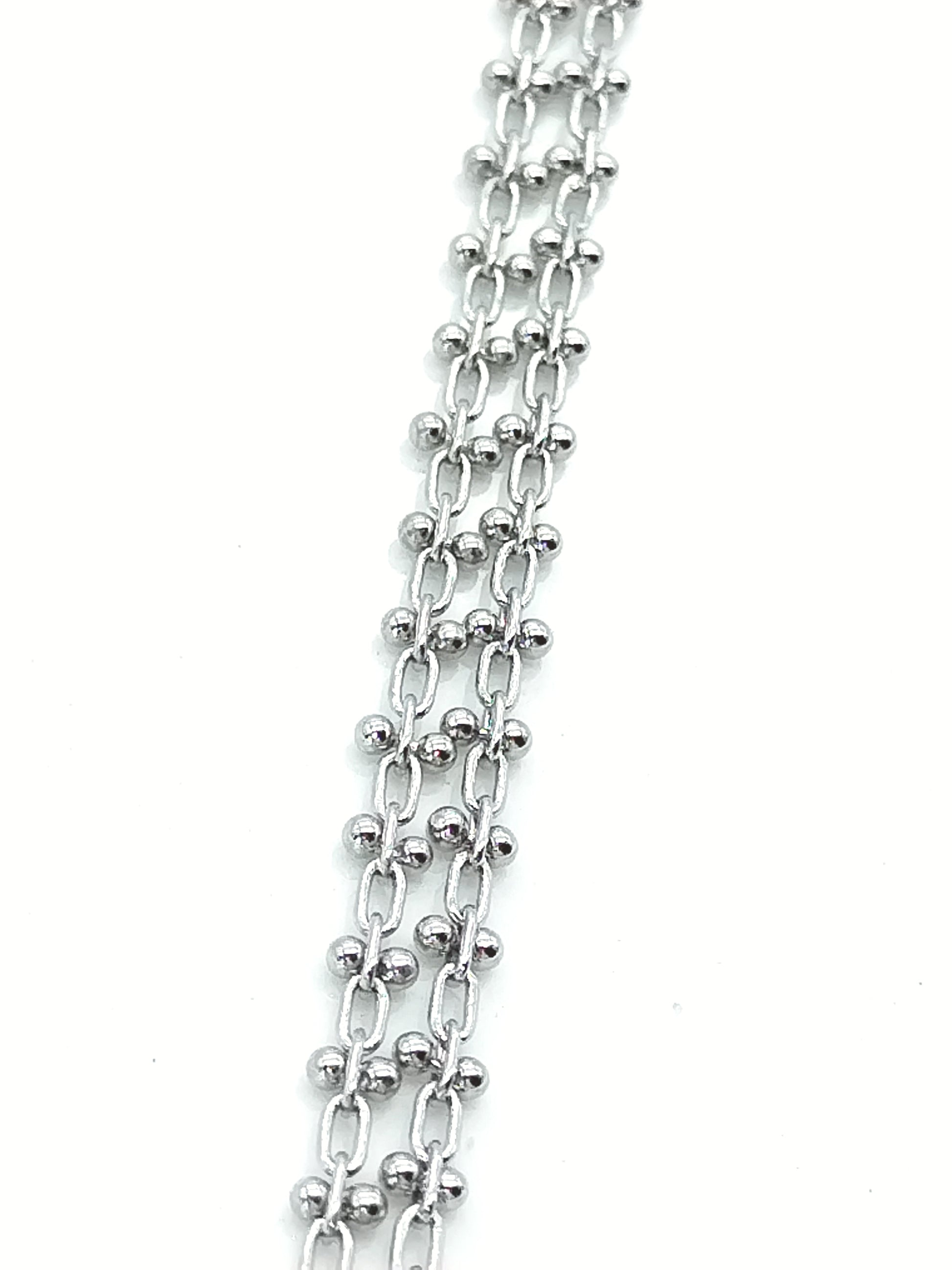 Realza tu estilo con nuestra delicada pulsera de doble cadena plateada. Esta pieza minimalista y elegante es perfecta para las amantes de la moda que valoran la sostenibilidad. Llévala a diario o combínala con otras pulseras de nuestra tienda. Disponible tanto en oro como en plata, también es el regalo perfecto para San Valentín. Completa el look con nuestro collar a juego.