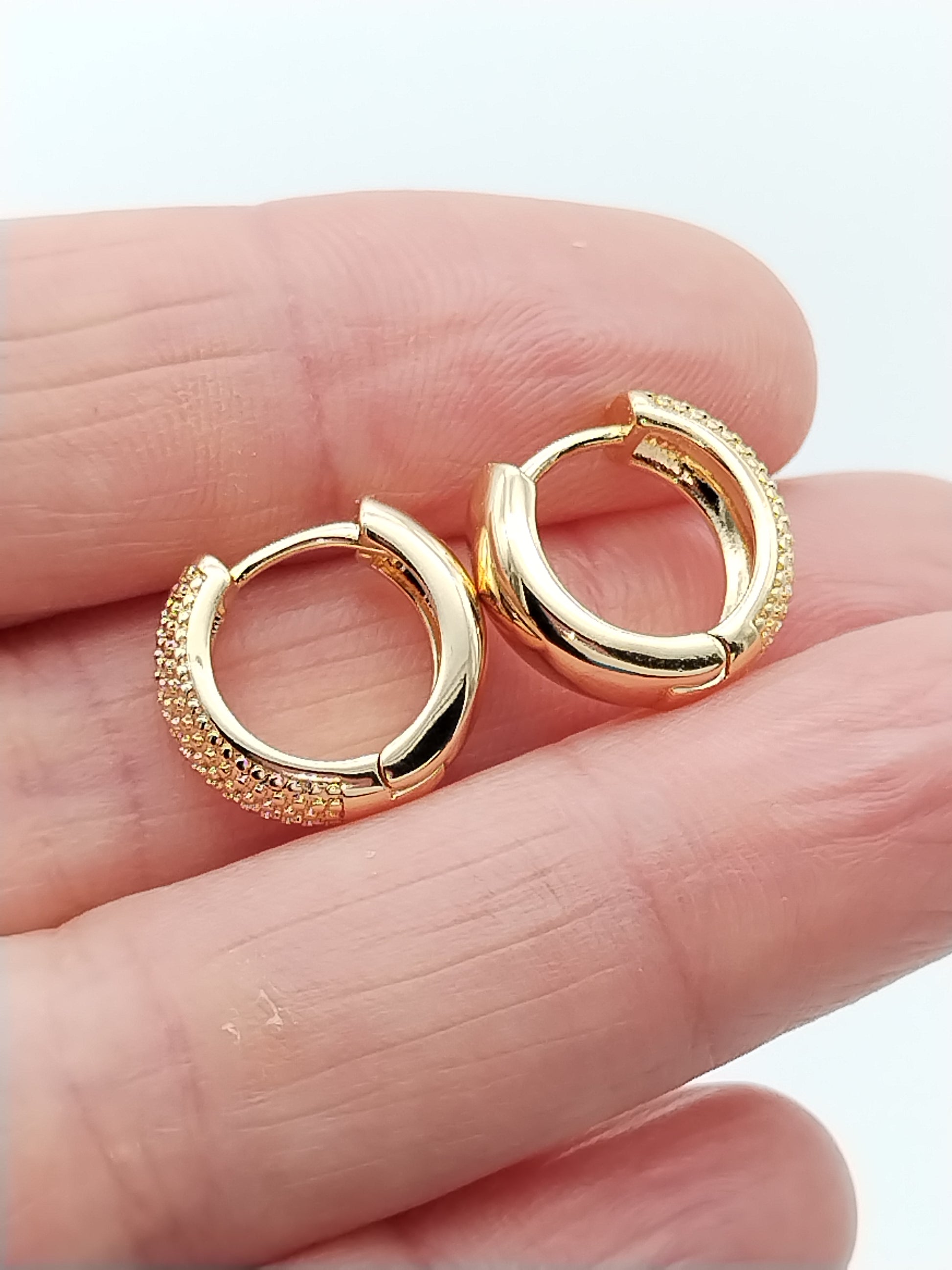 Presentamos los aretes Huggies Small Hoops en dorado, el complemento perfecto para cualquier look. Estos aros texturizados y ligeros están diseñados para uso diario y son ideales para la primavera y el verano. Regálalos para una graduación o para cualquier mujer o niña a la moda. Realza tu estilo con los aretes Huggies Small Hoops.