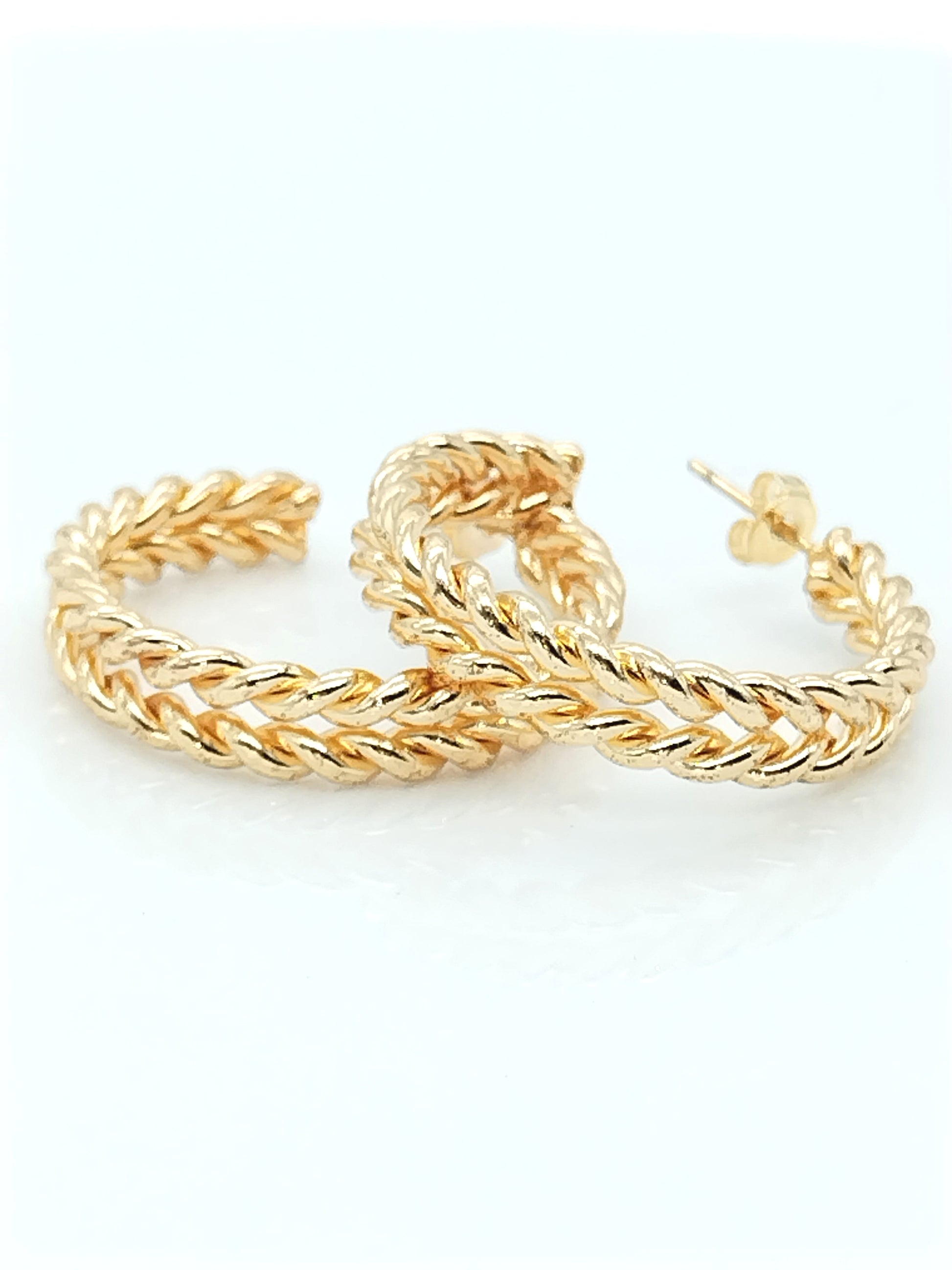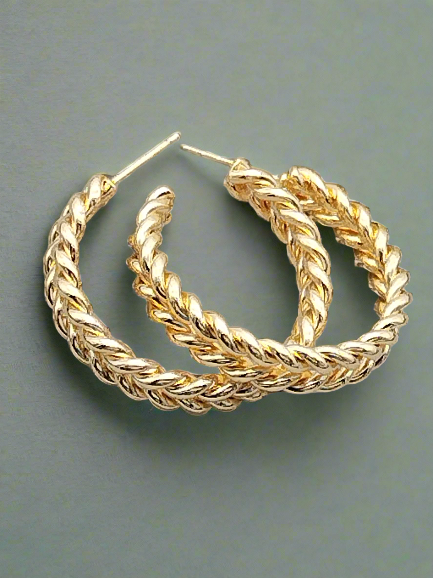 Realza cualquier atuendo con nuestros elegantes y bohemios aretes de oro trenzado. Estos llamativos aretes de aro son perfectos para cualquier ocasión, desde el uso diario hasta eventos especiales como aniversarios y graduaciones. Perfectos para mujeres que aprecian las joyas únicas y elegantes, también son excelentes regalos para mamá, hermana o cualquier chica con estilo.