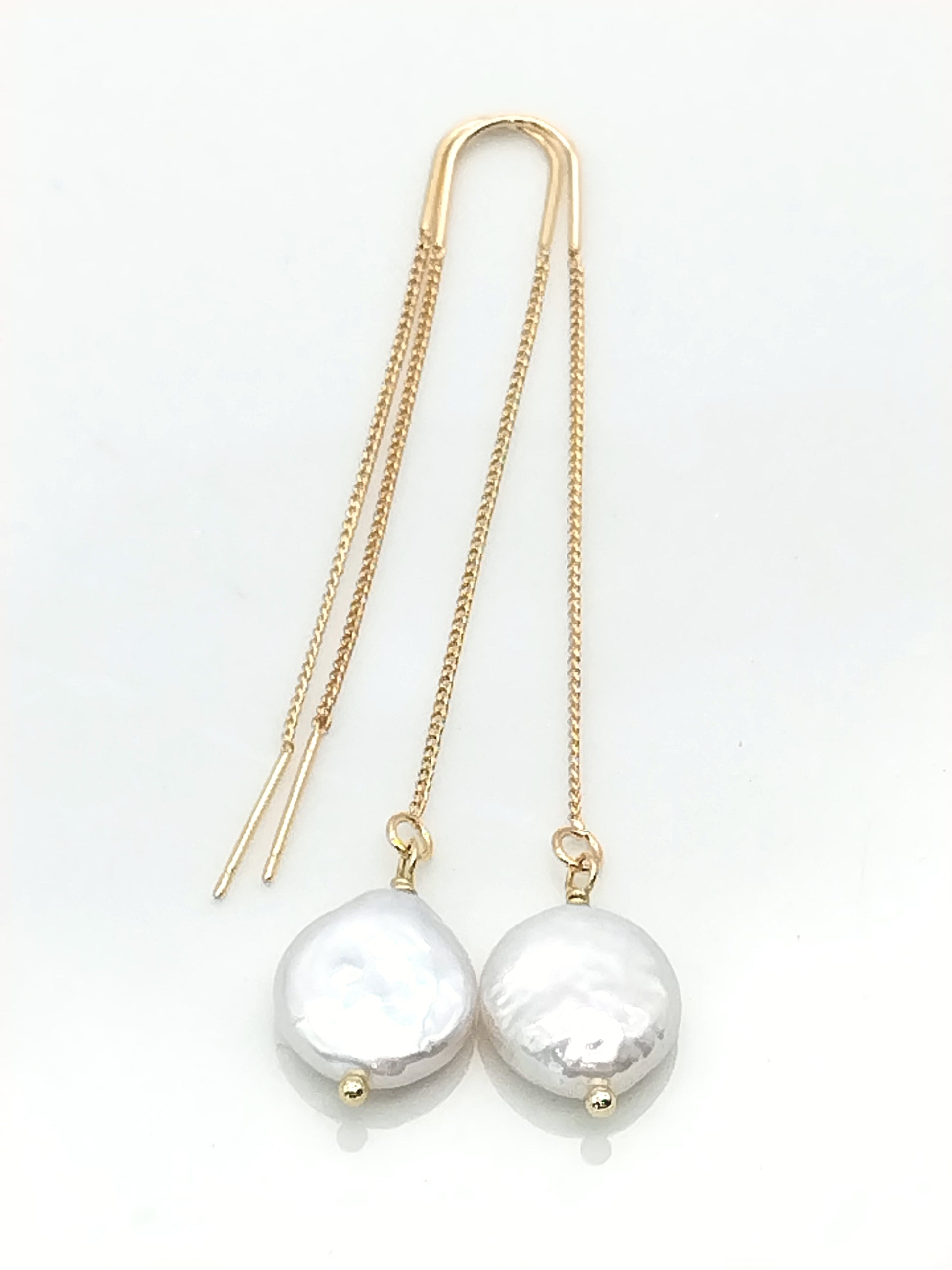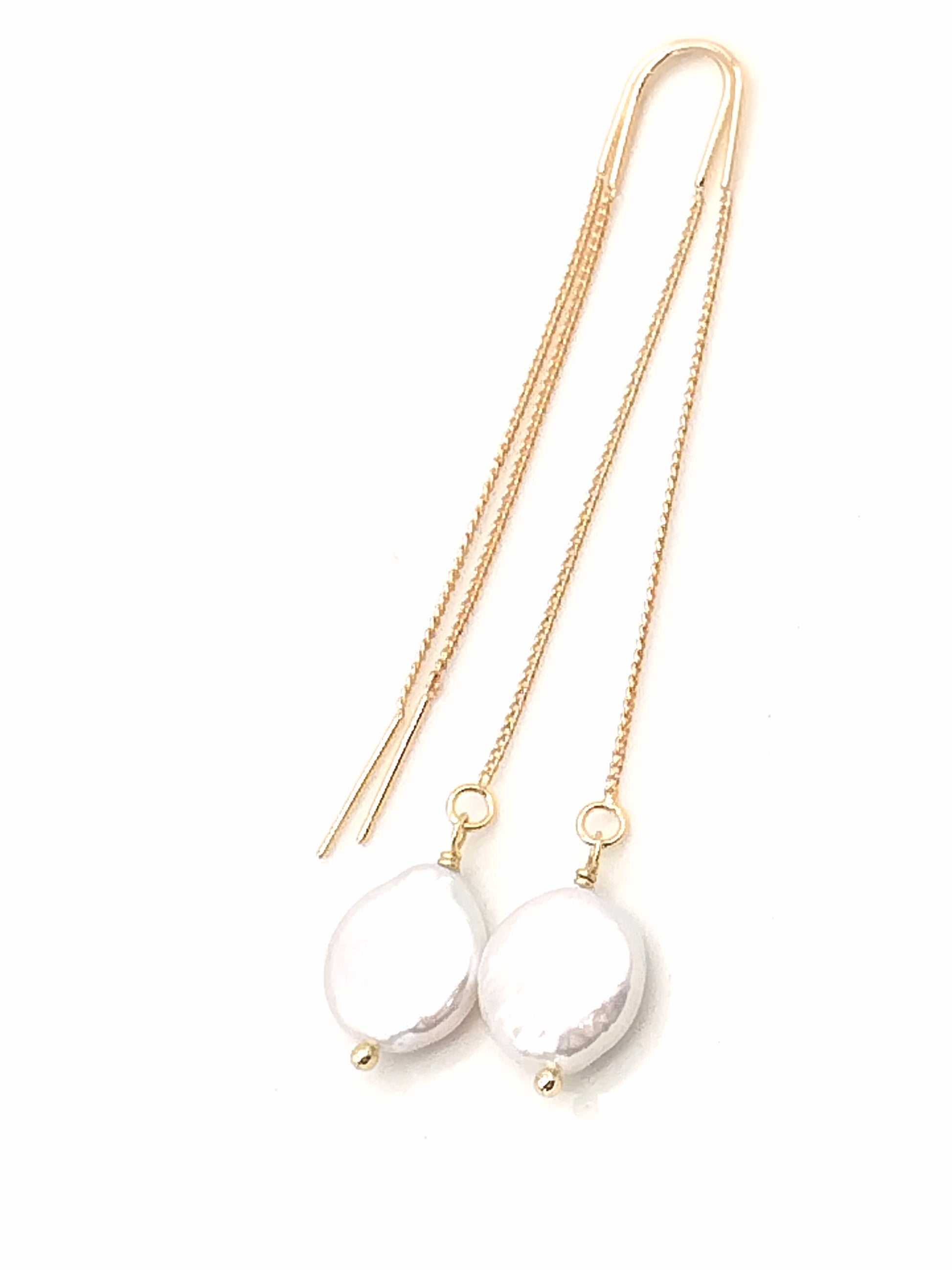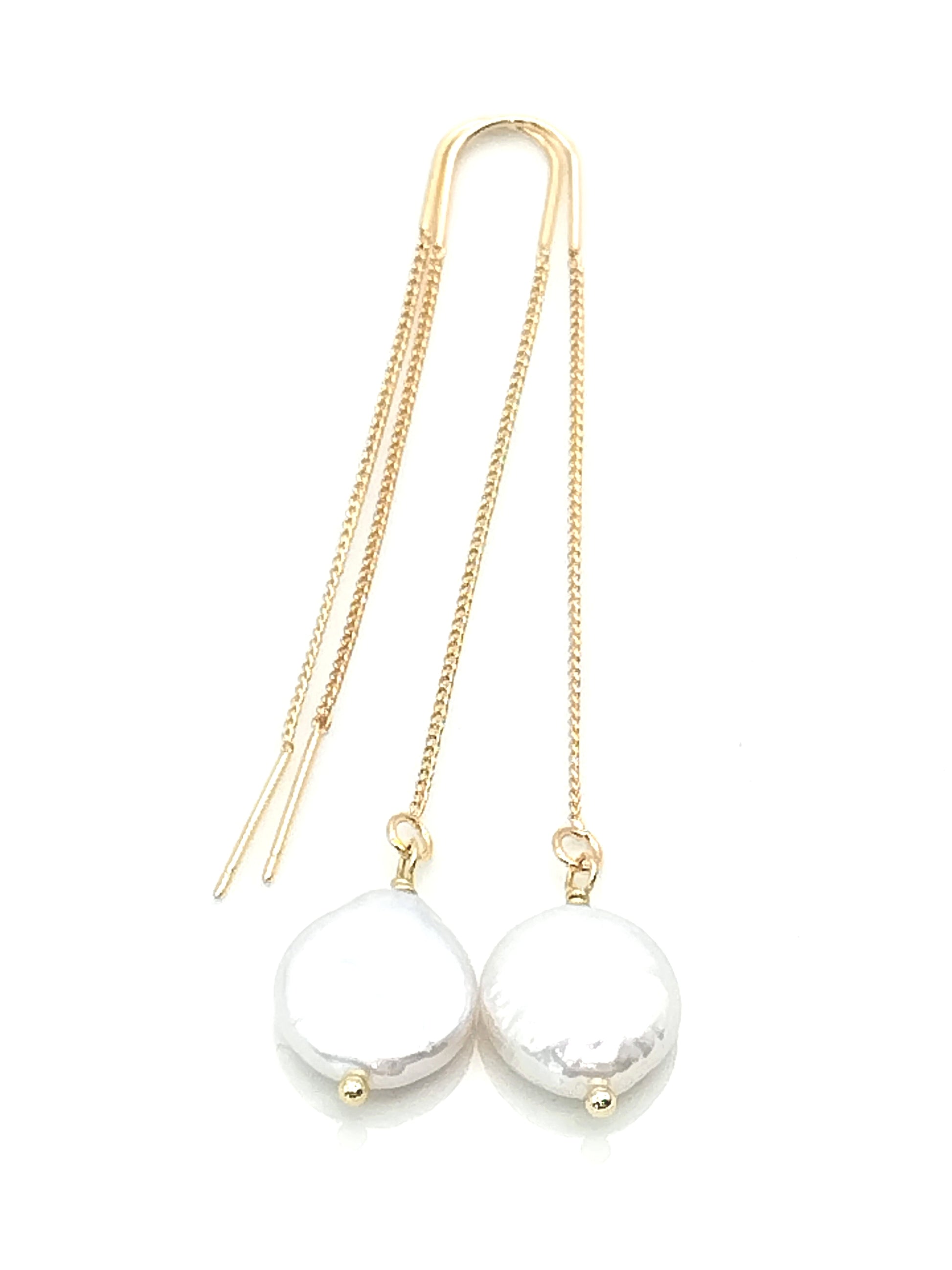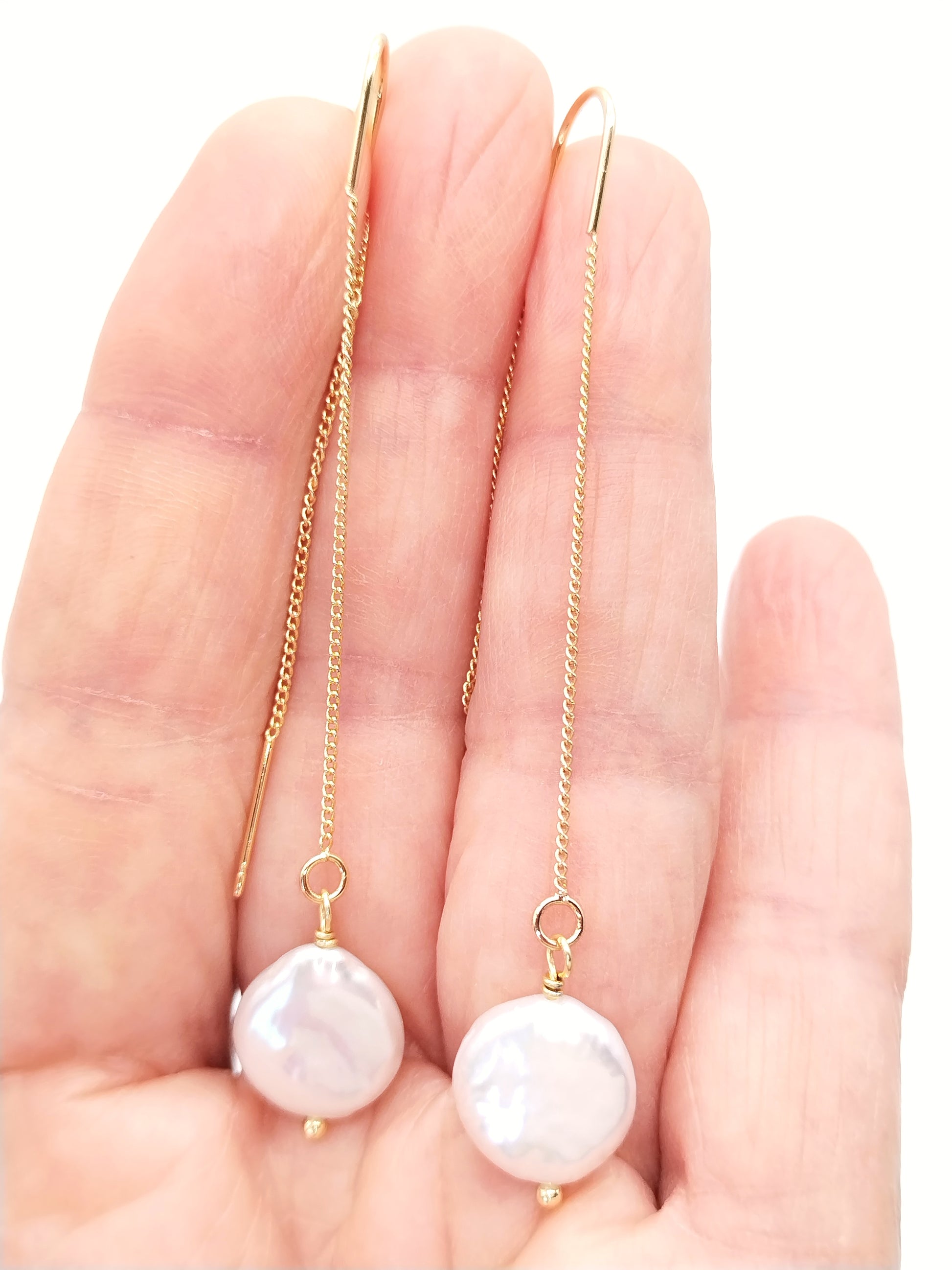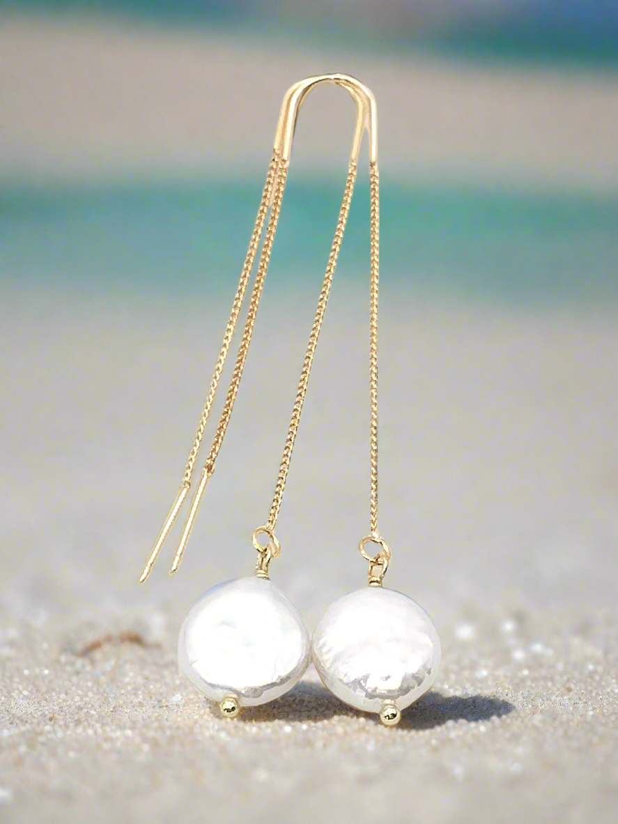 Presentamos nuestros imprescindibles pendientes colgantes. Estos ligeros pendientes cuentan con perlas de moneda AA+ con un brillo exquisito, que añaden un toque delicado y femenino a cualquier conjunto. Perfectos para usar a diario, para fiestas de oficina o como pieza llamativa. Fabricados con oro sostenible de 18 quilates, estos pendientes son un regalo ideal para amantes de la moda, madres y niñas.