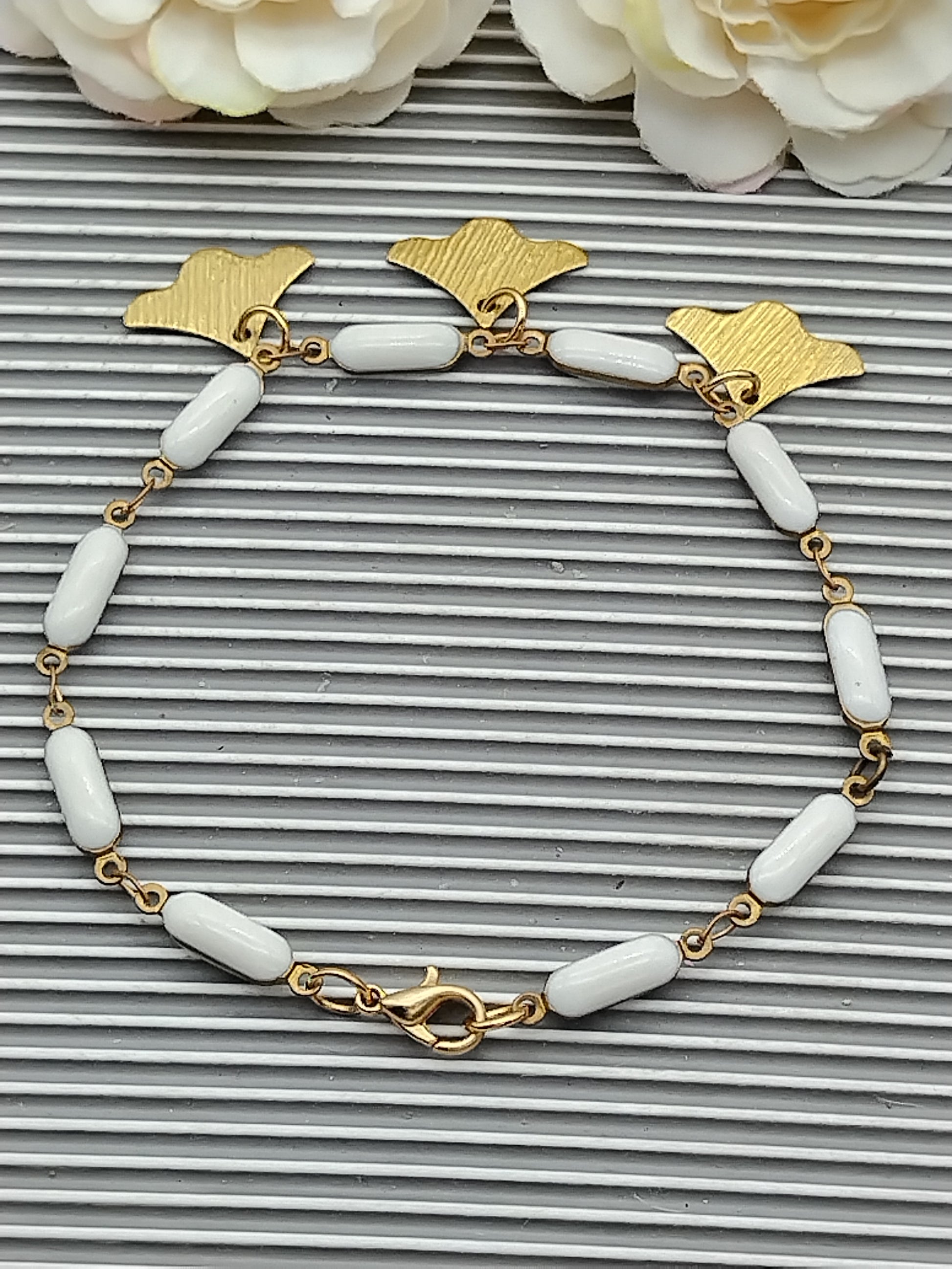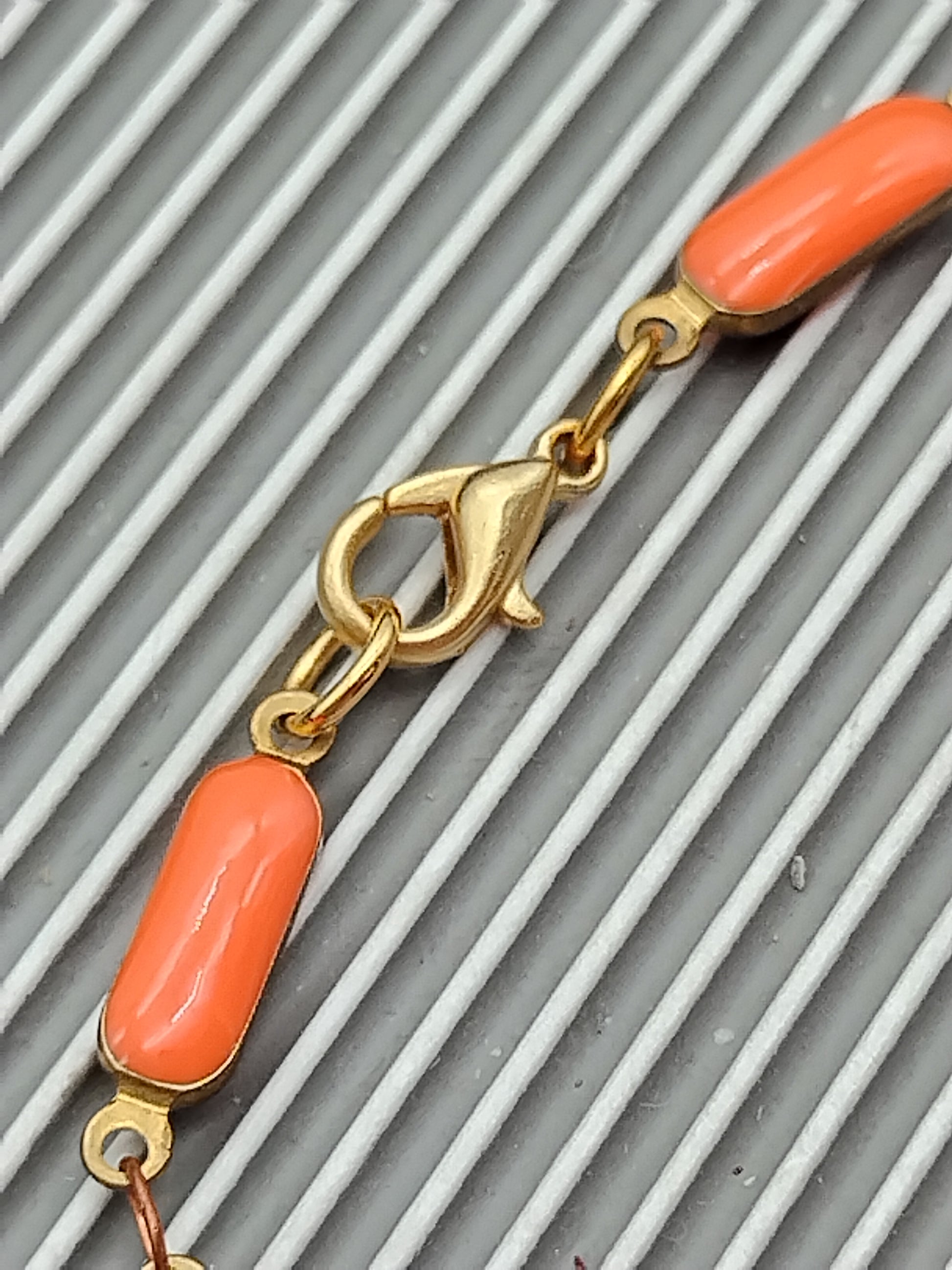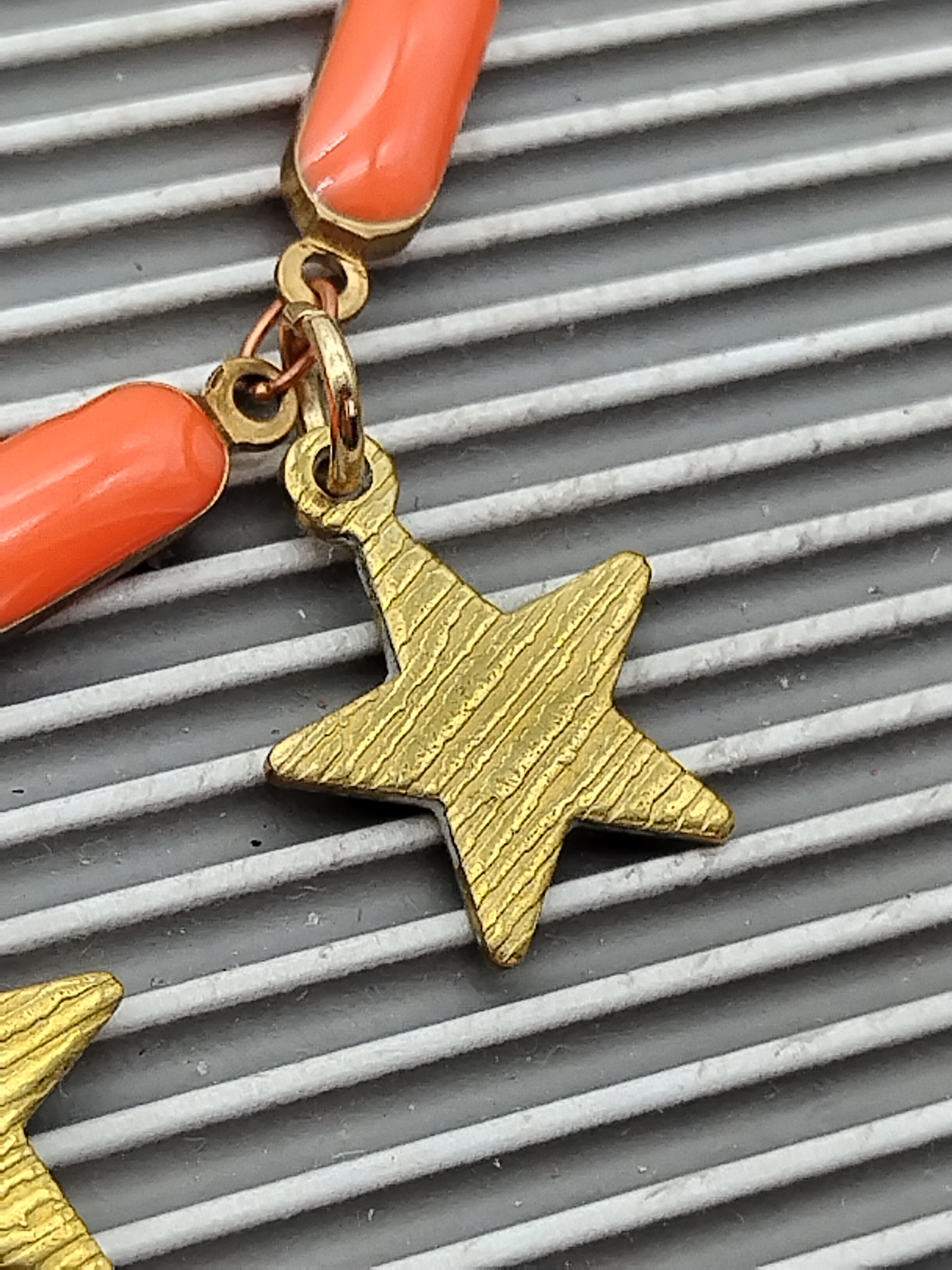 Pulsera con dijes de estrella y ginkgo, pulsera con barra abullonada de esmalte, pulsera naranja y blanca