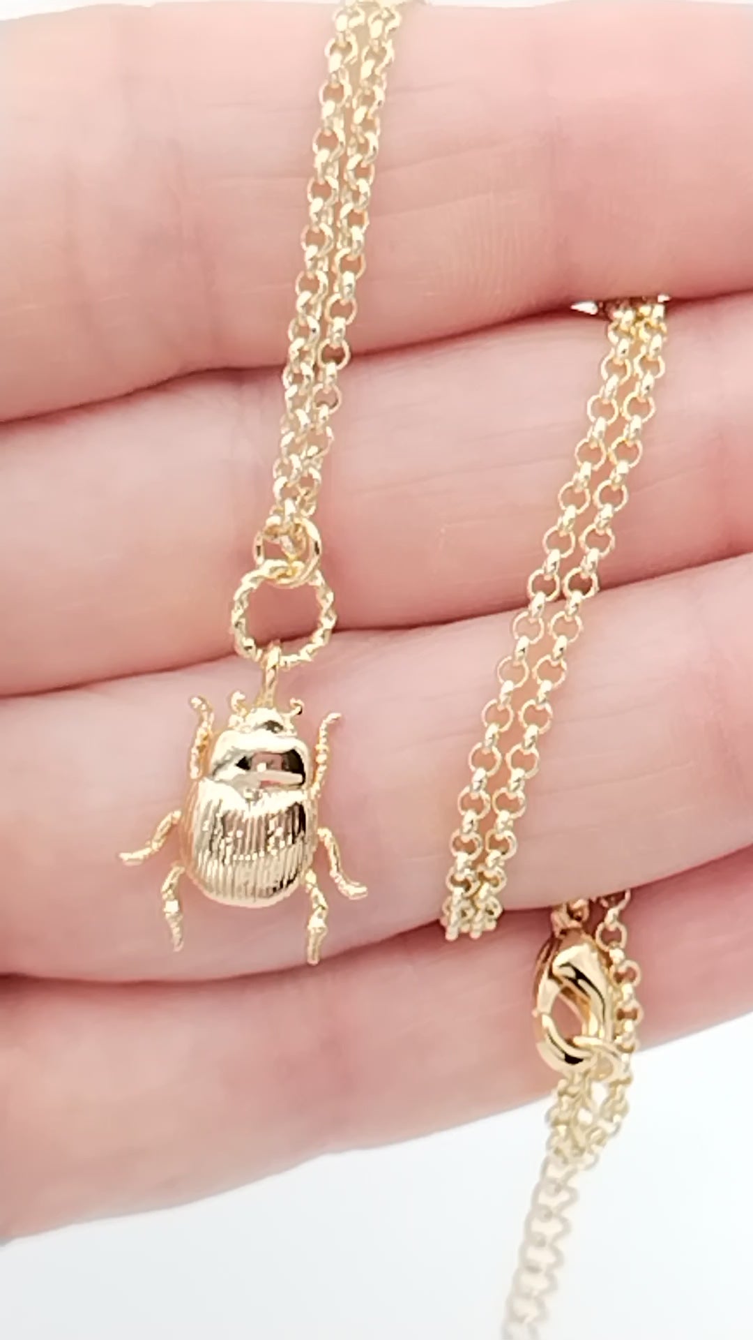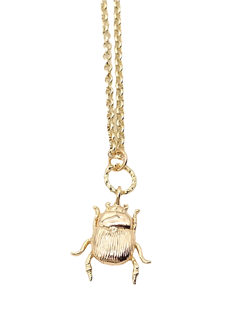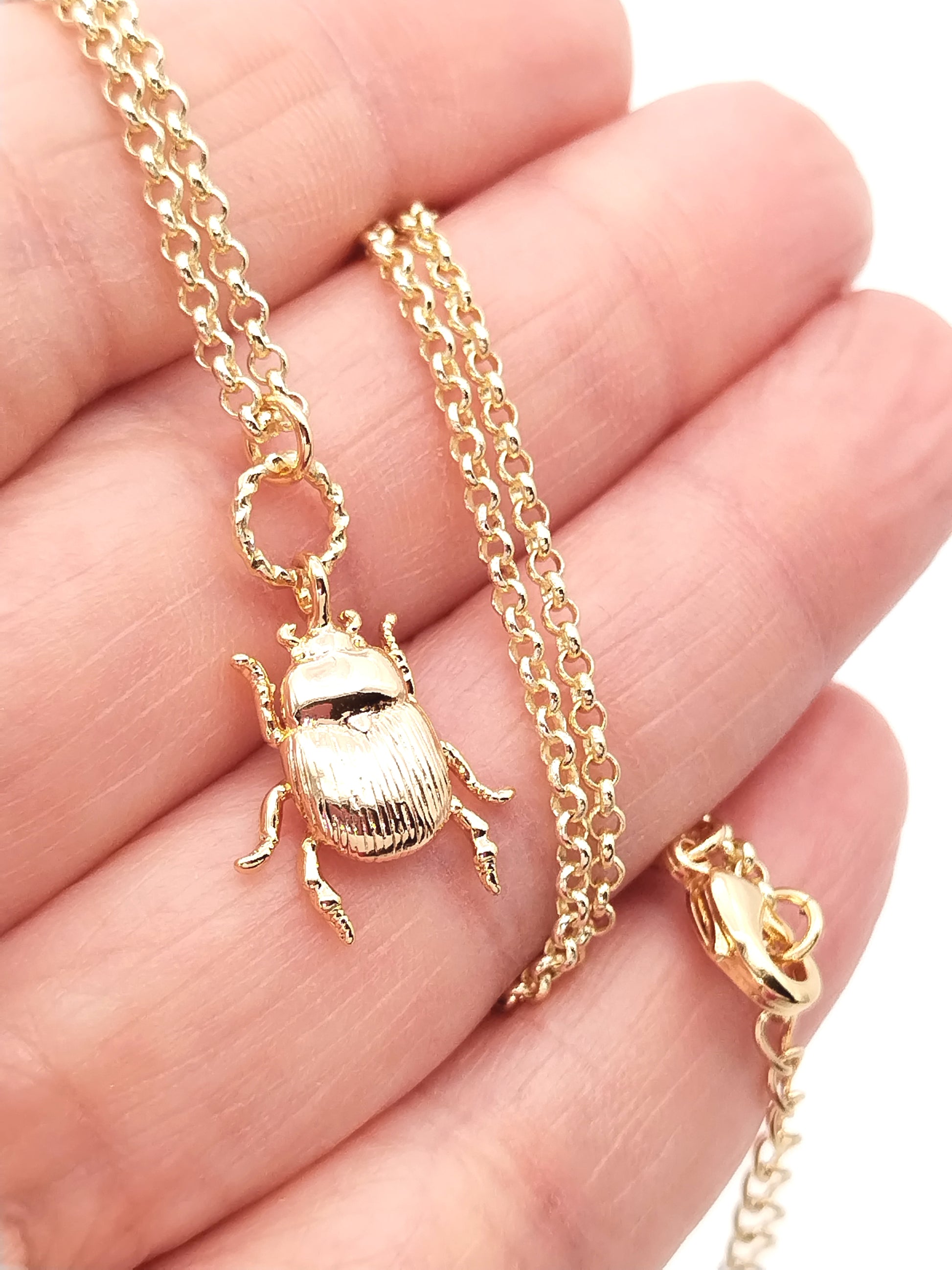 This charming scarab beetle charm necklace features a delicate rollo gold chain and is crafted from sustainable 18k gold plated. Perfect for everyday wear, it's also ideal for layering or wearing solo. It comes with an Extended Chain 2" / 5 cm. On trend and classy, it makes a great holiday gift for moms, sisters, and friends. A must-have accessory for the fashion-forward and eco-conscious.