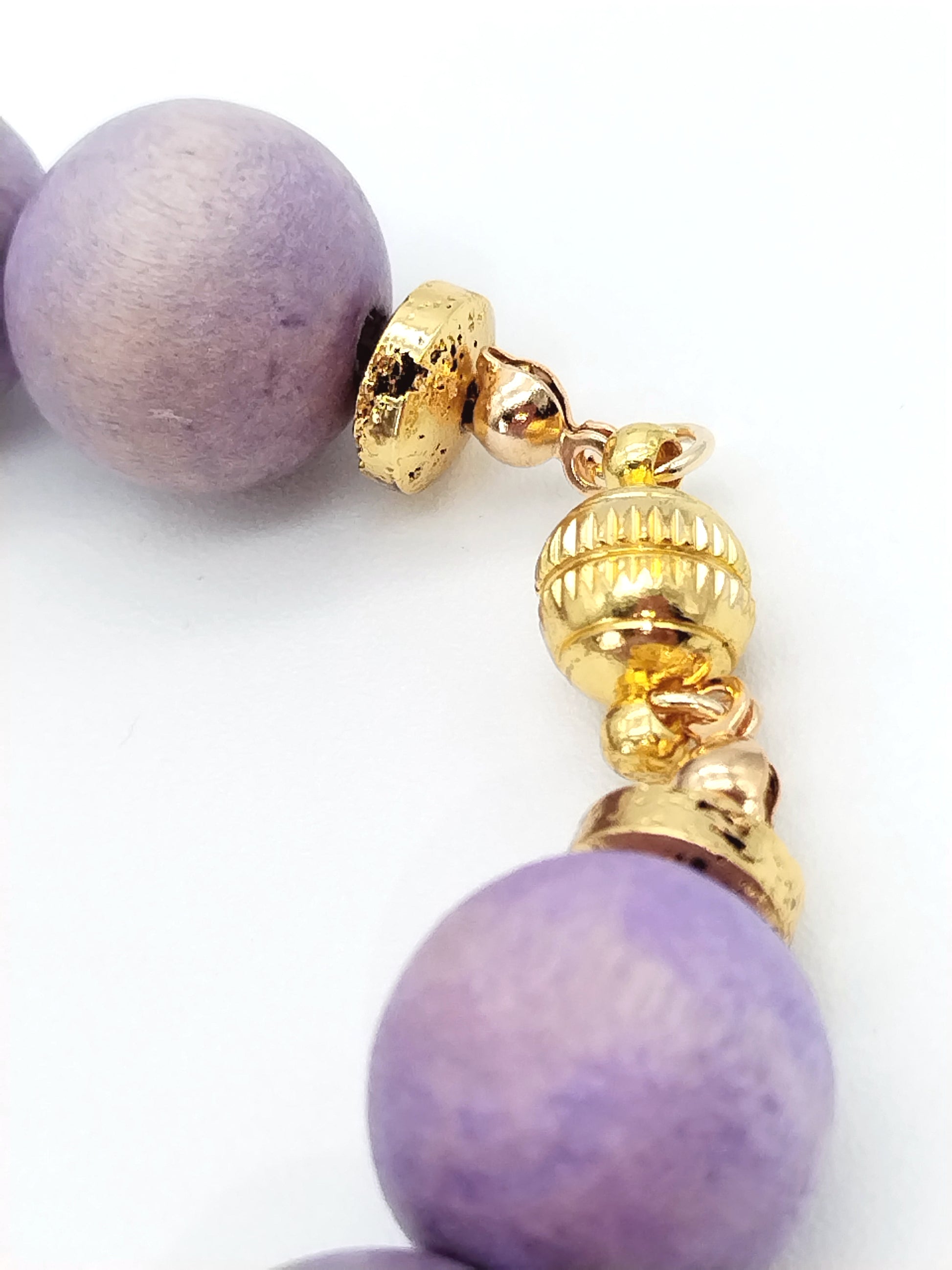 Chunky Lavender Wood Bead Gold Choker Necklace