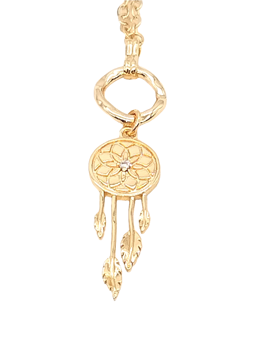 Introducing our limited edition Y Necklace - the perfect choice for the fashion-forward individual. Made with 18k gold, this trendy choker features a delicate dainty cable chain with a magic dream catcher adorned with CZ. Its stackable design adds versatility and is perfect for achieving your dreams. Gift it to your loved ones or add it to your own collection.
