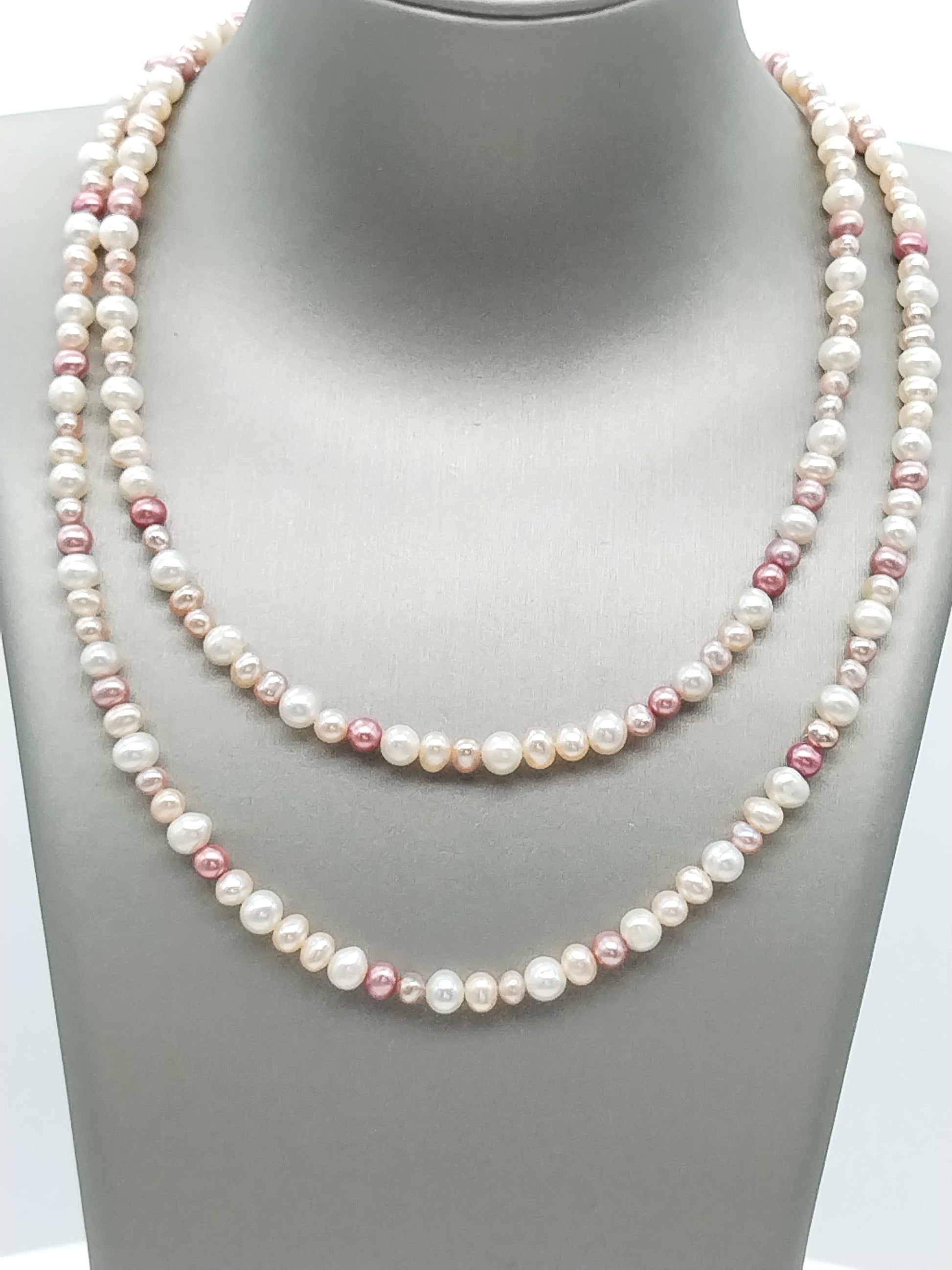 Multi - Size Pink and White Freshwater Pearl Gold Choker Necklace