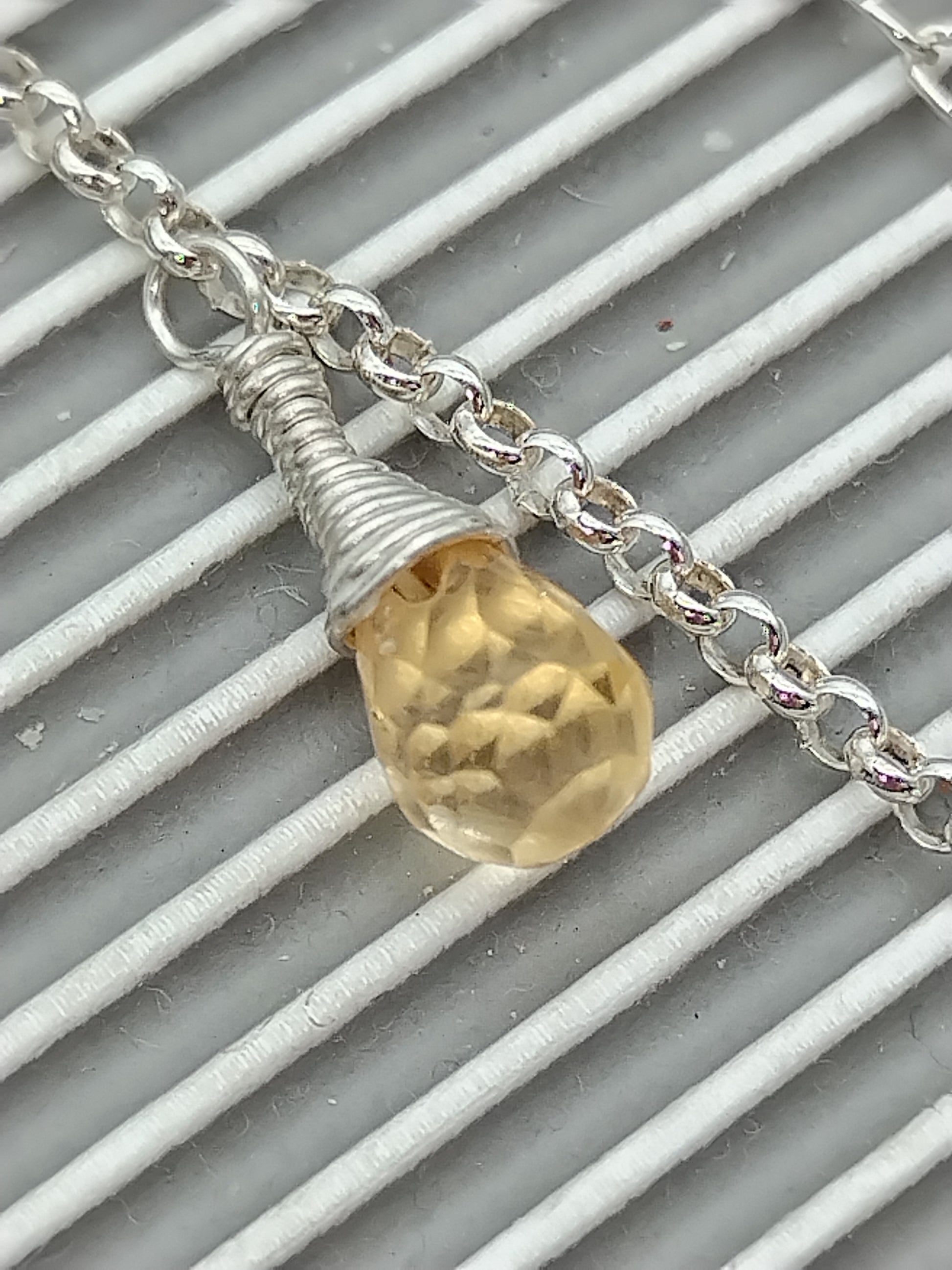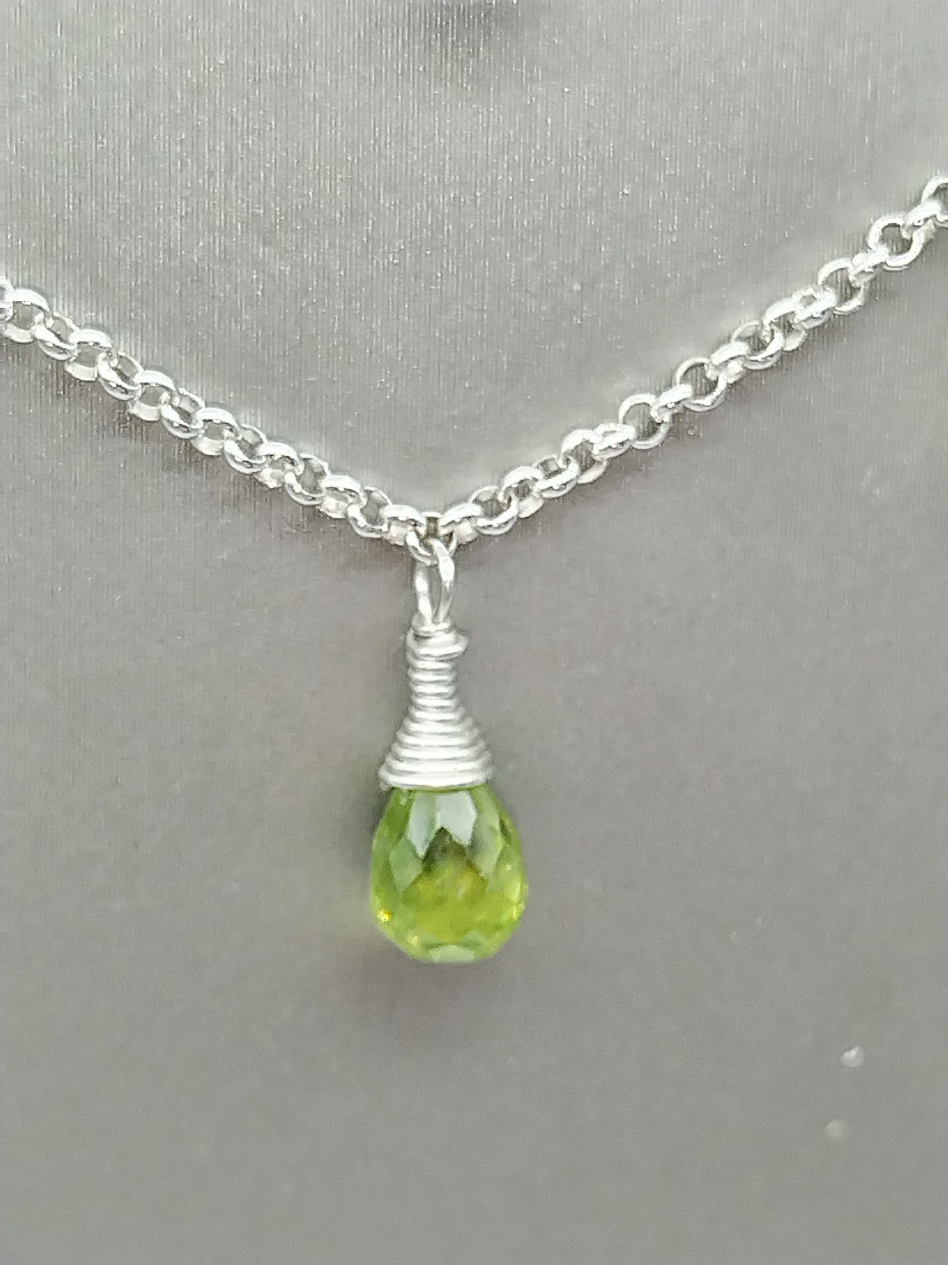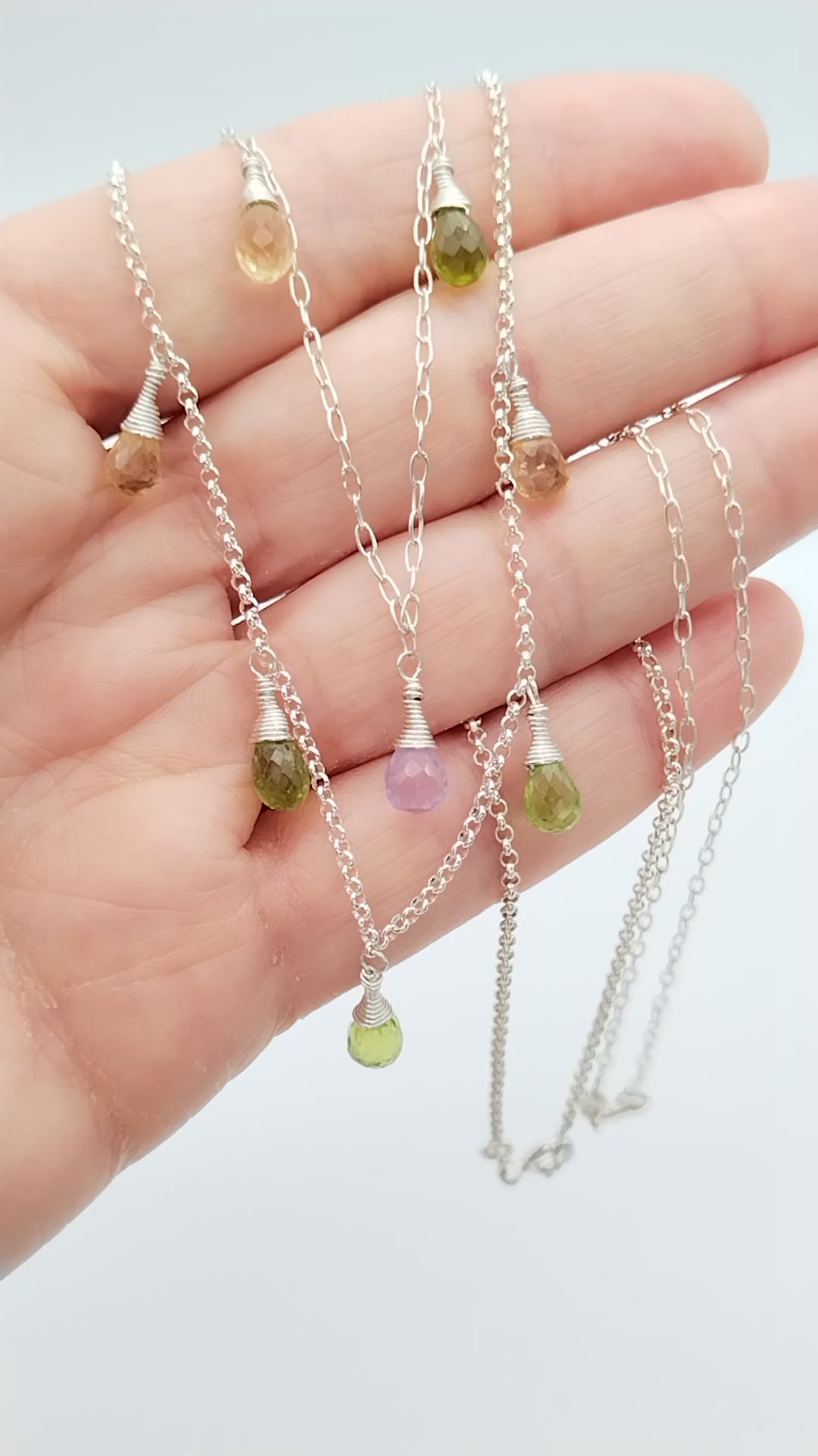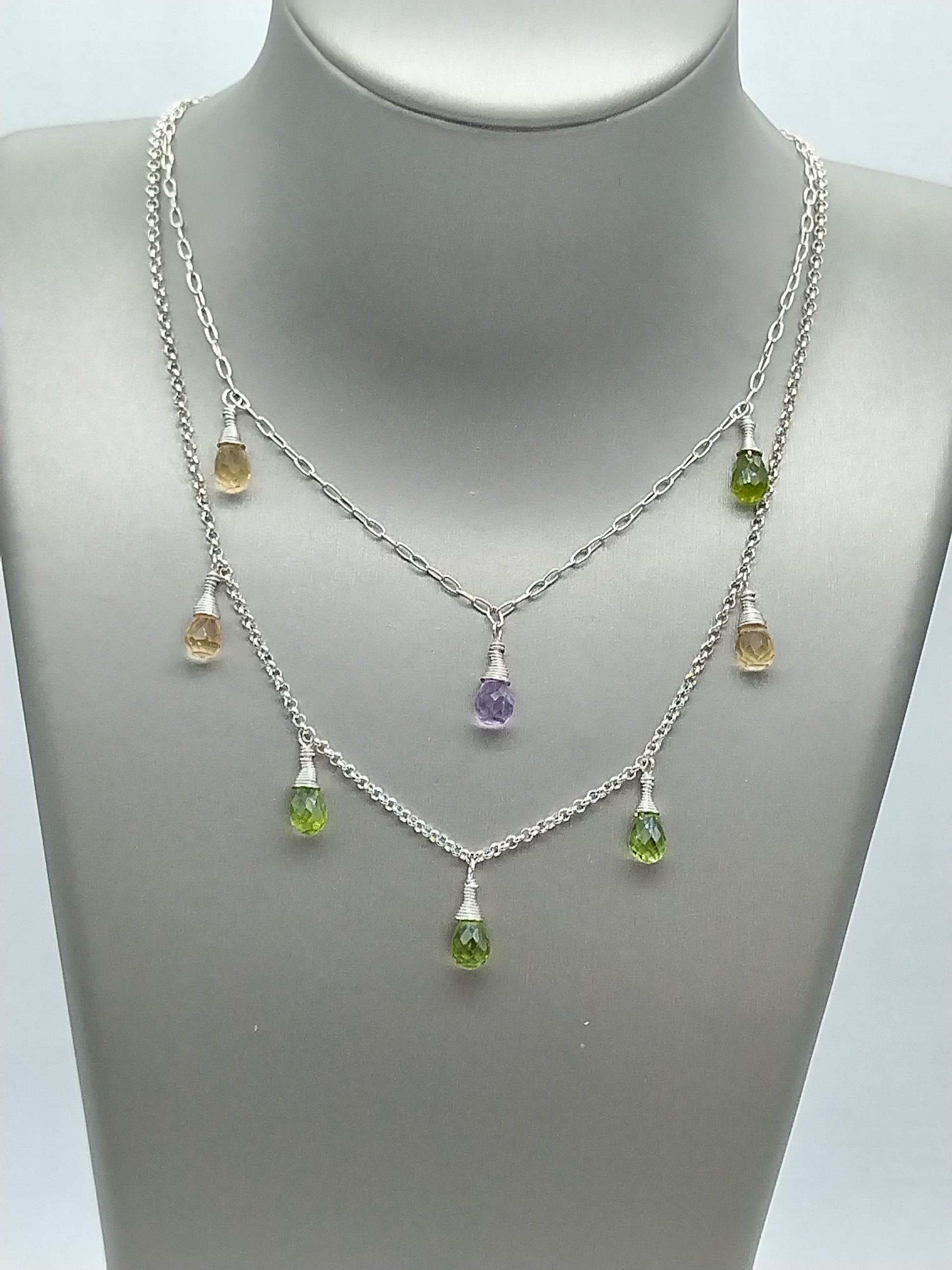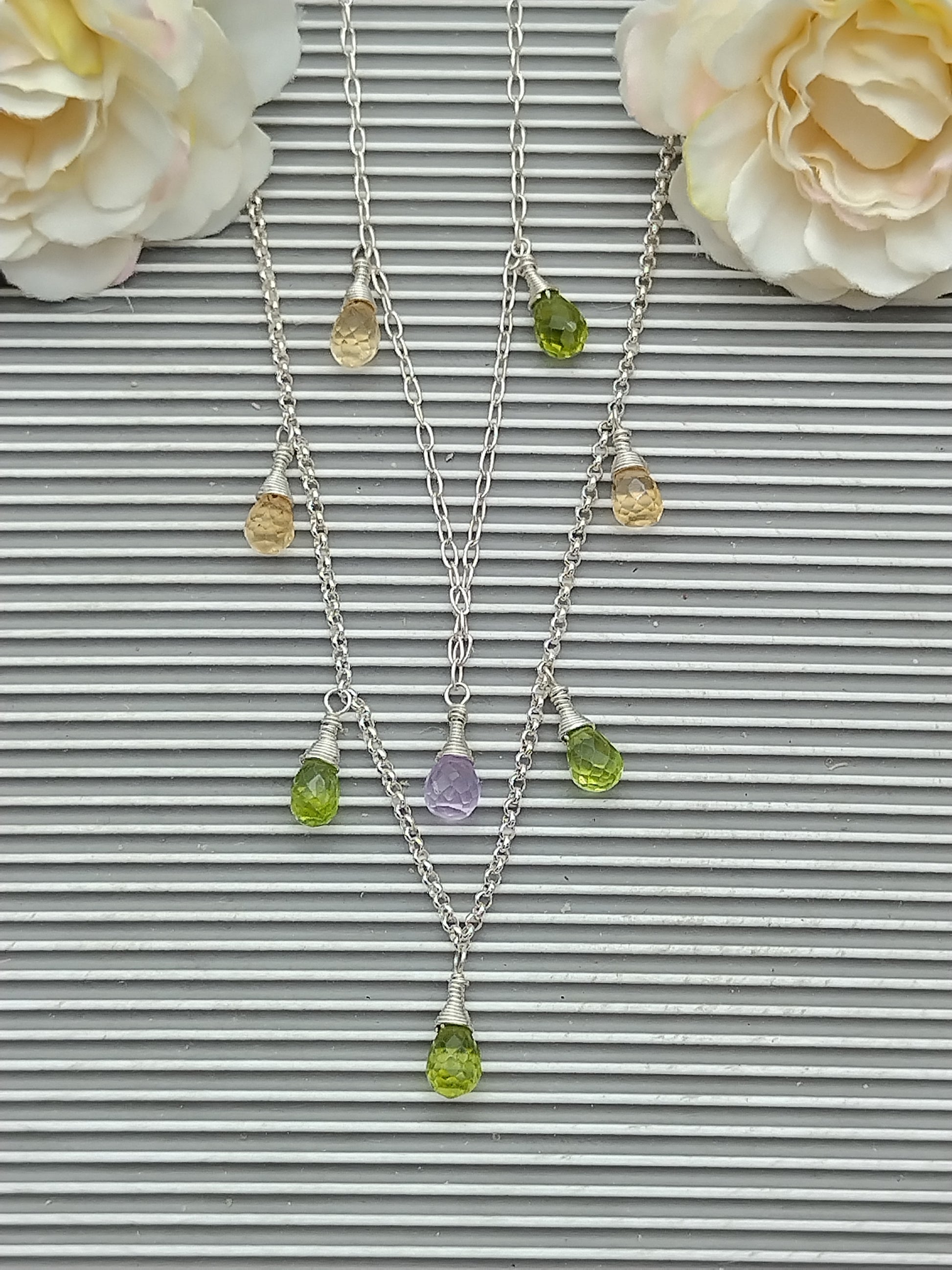 Gemstone Briolette Dangle Necklace, Sterling Silver Necklace, Perdiot, Citrine, Amethyst