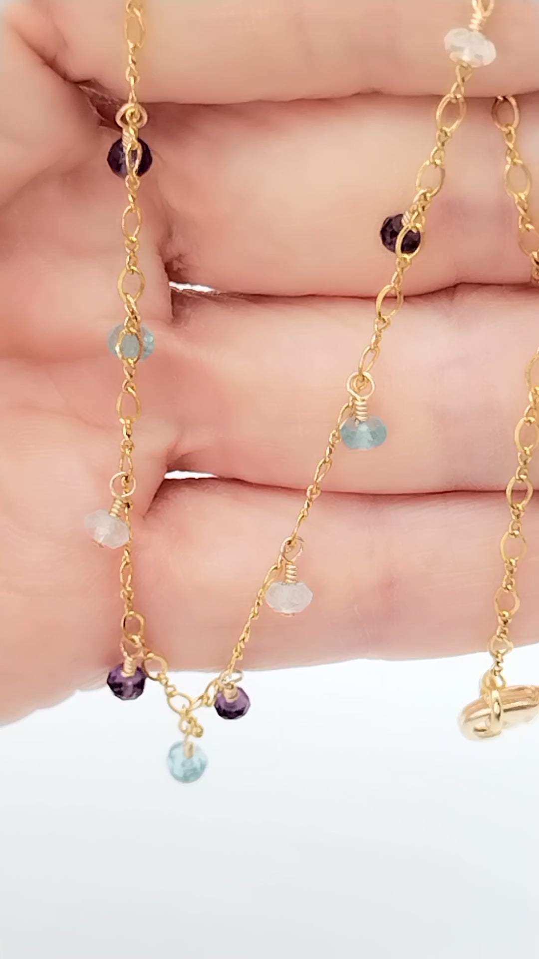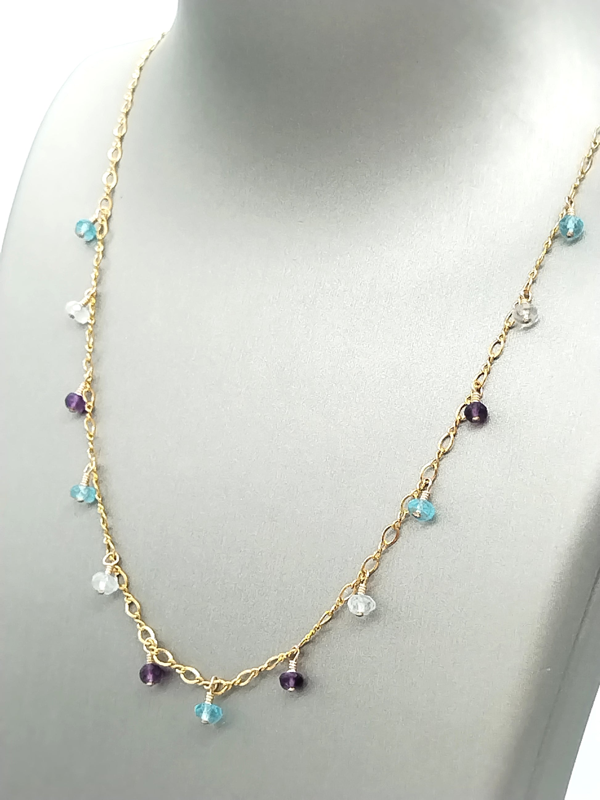 This 14k Gold Filled necklace is crafted with finely hand-wrapped Multi Gemstones beads and chain that make it one-of-a-kind and perfect for everyday wear. It's an elegant and thoughtful present for any woman in your life.