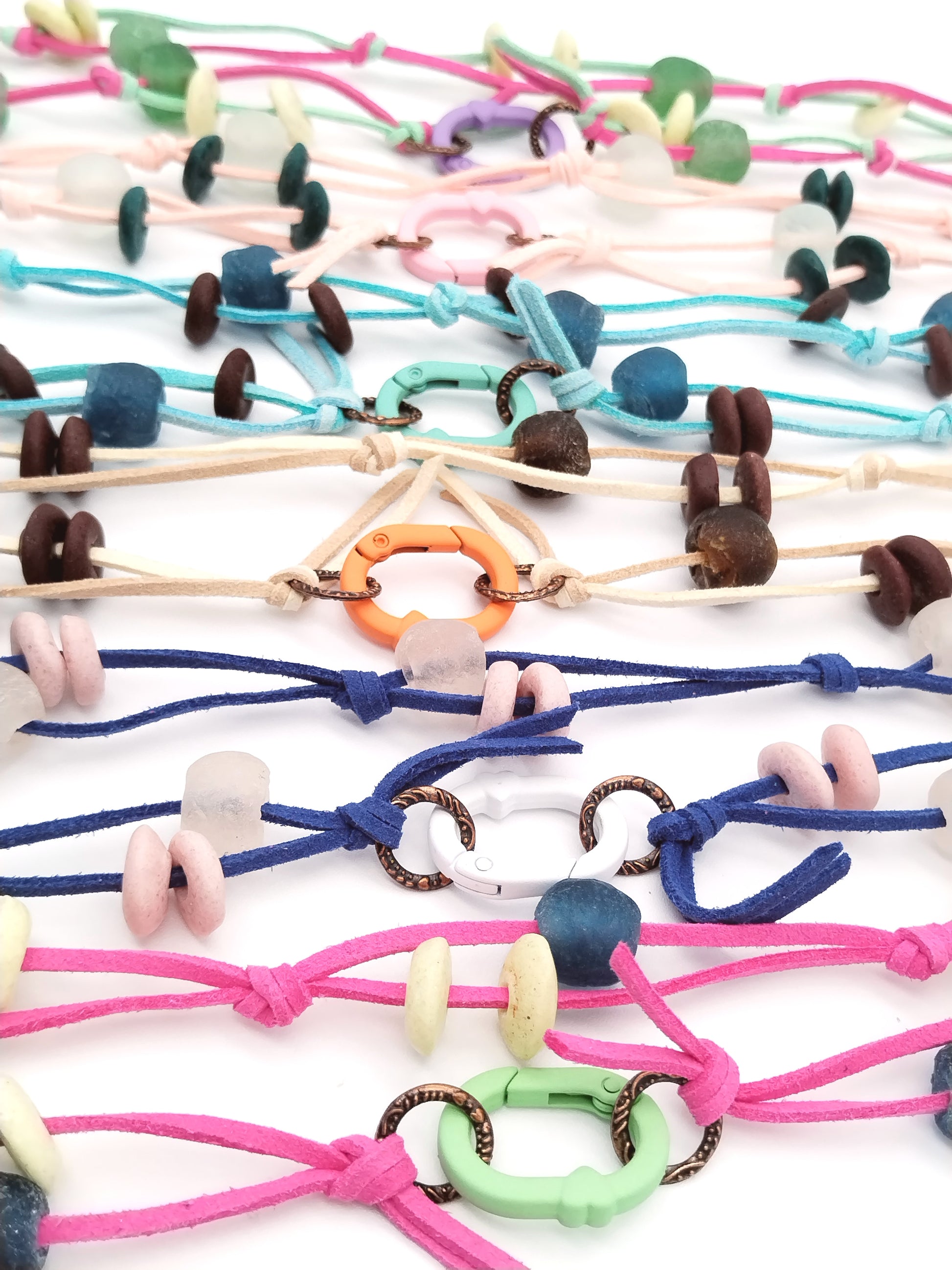 Elevate your summer style with our handmade long necklace featuring vibrant African glass beads and colorful rondelles. With multiple rows and versatile ways to wear, this boho-inspired piece exudes trendy and unique vibes. Perfect for gifts, fashion-forward girls and women, this necklace is a must-have for cool and fun summer looks. Don't miss the bold and pastel large clasp for added versatility and style. Available in various color combos including pink and navy blue.