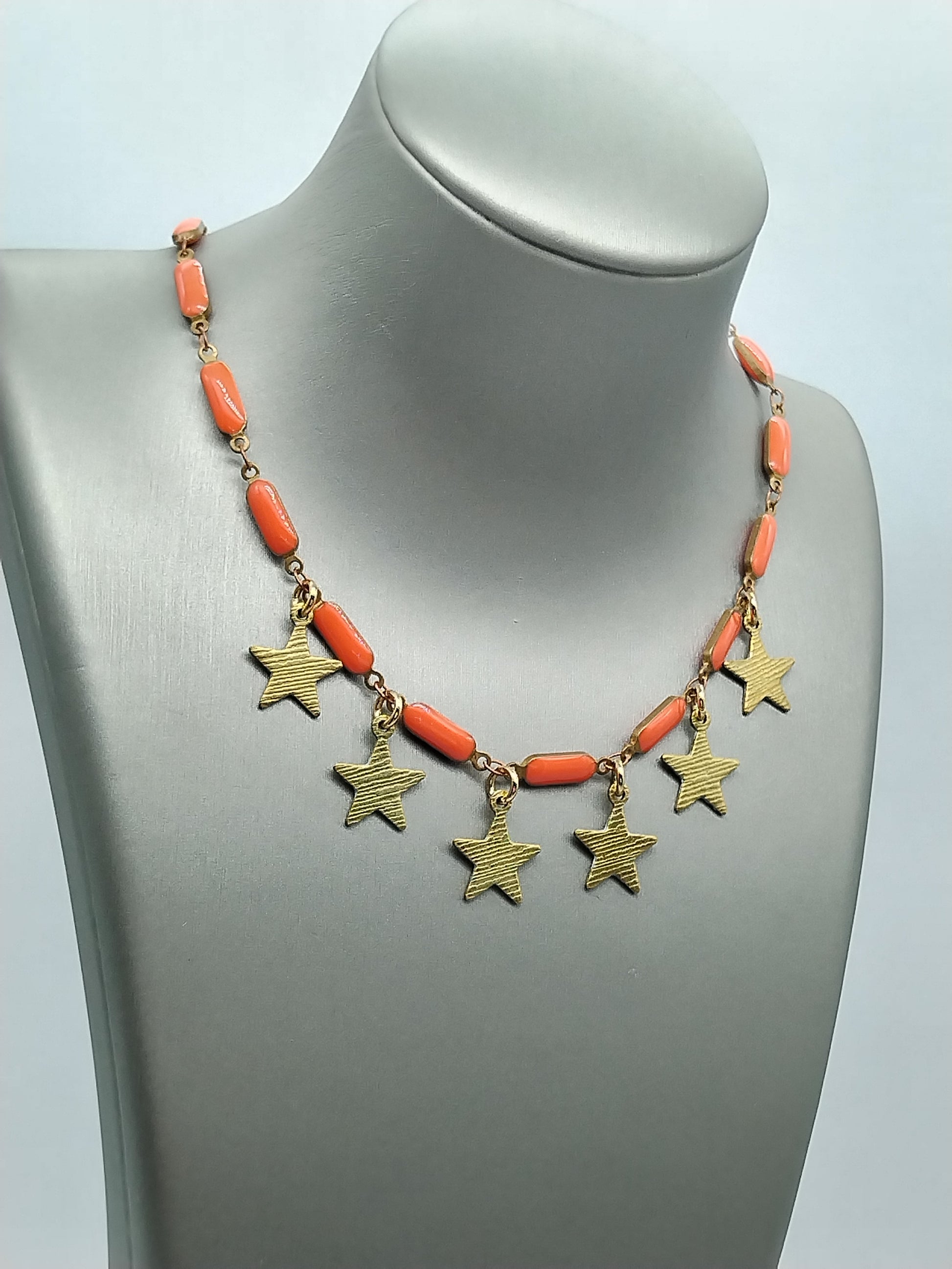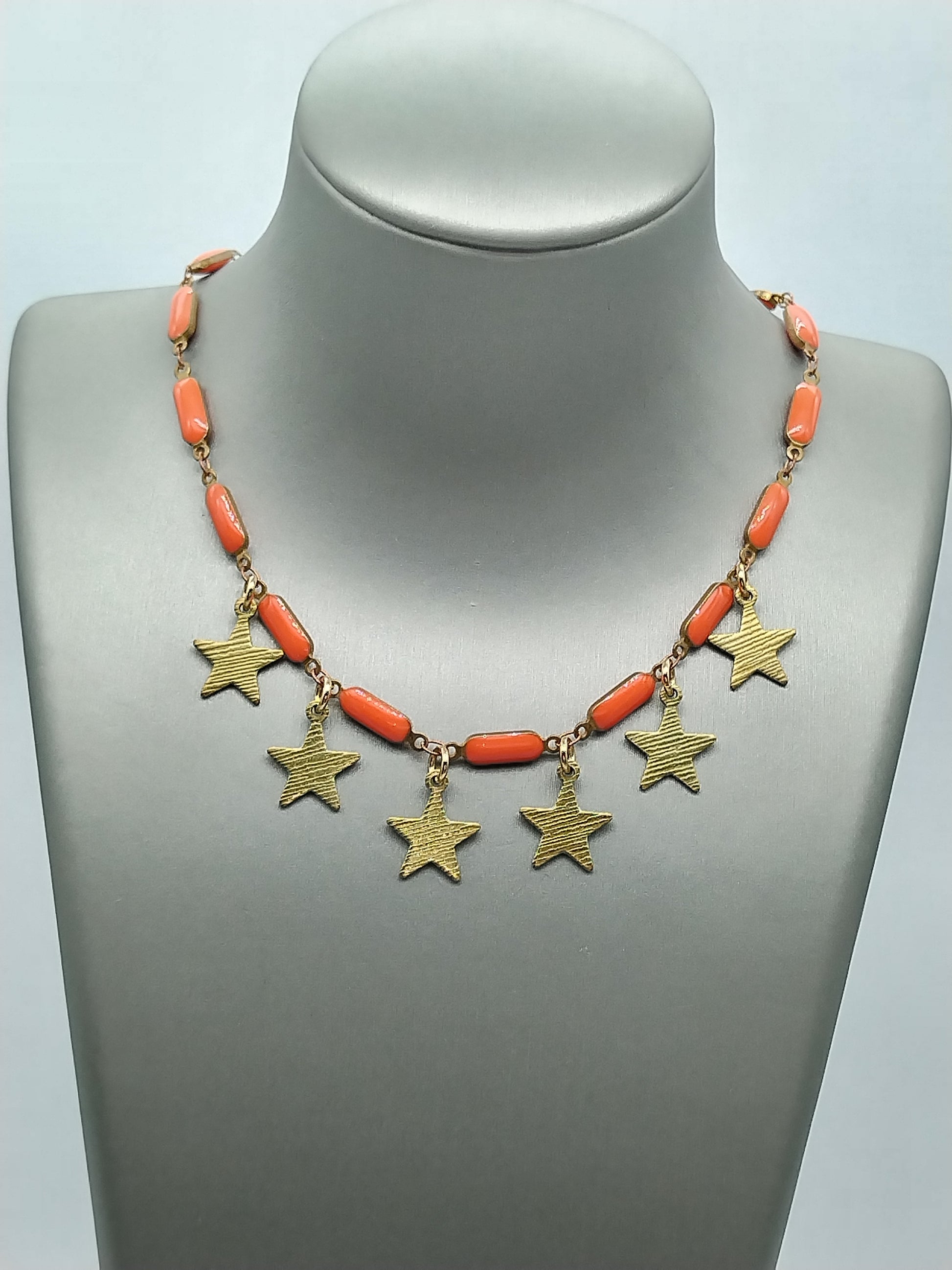 Star & Gingko Choker, Enamel Puffed Bar Brass Necklace, Dazzling Charm Necklace, Cool Layering Necklace