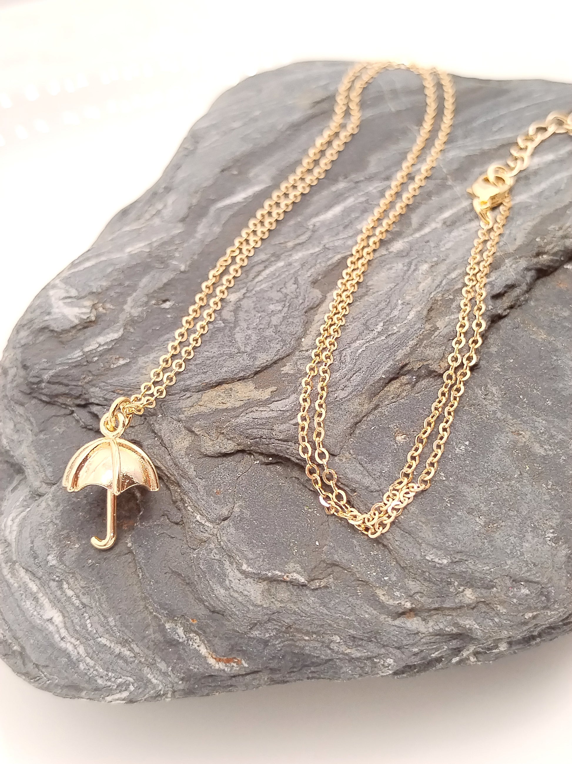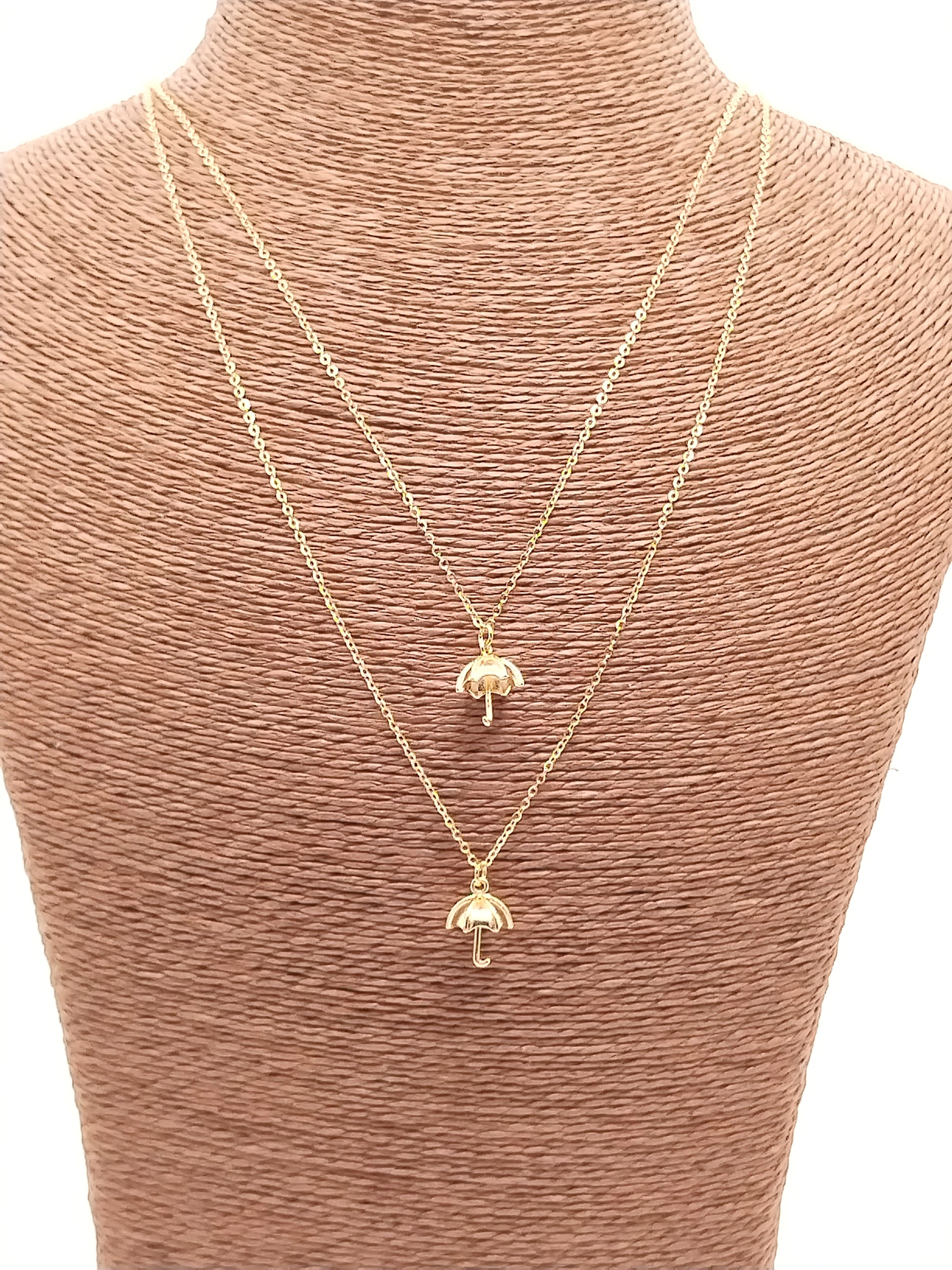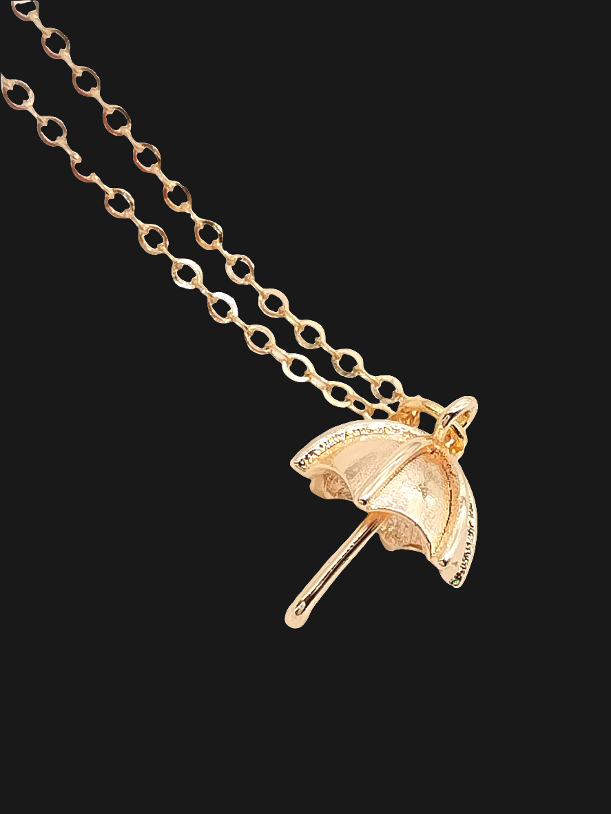 Umbrella Gold Pendant Necklace, Long Charm Necklace, Layered, Trendy, Affordable Jewelry, Holidays Gifts, For women, Girls