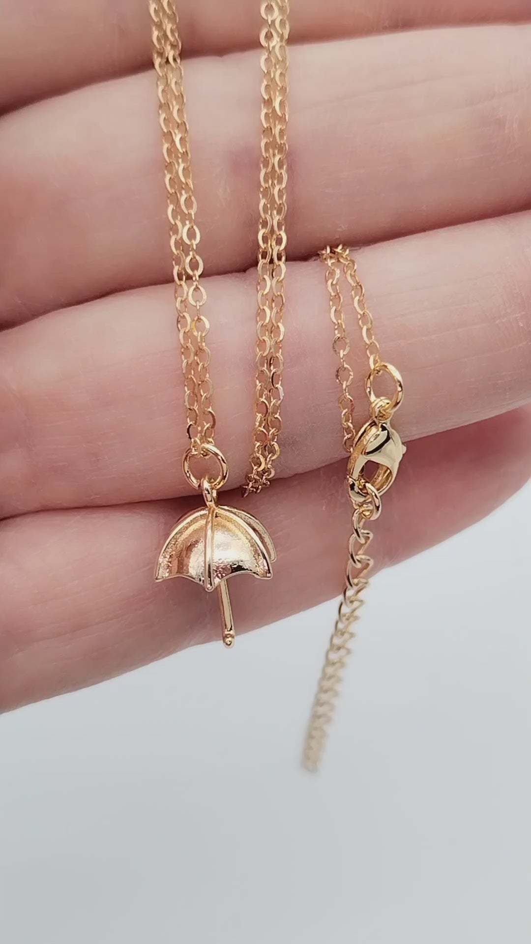 This 3D umbrella pendant necklace is 18k gold plated and available in trendy long and dainty designs. It can be worn layered or solo, making it a versatile and affordable addition to your sustainable jewelry collection. The lobster clasp ensures it stays on point while the classy and tiny design makes it a must-have for girls and women alike. Perfect for holiday gifting and storing in your jewelry box. It has a 5cm / 2" extended chain added as well.