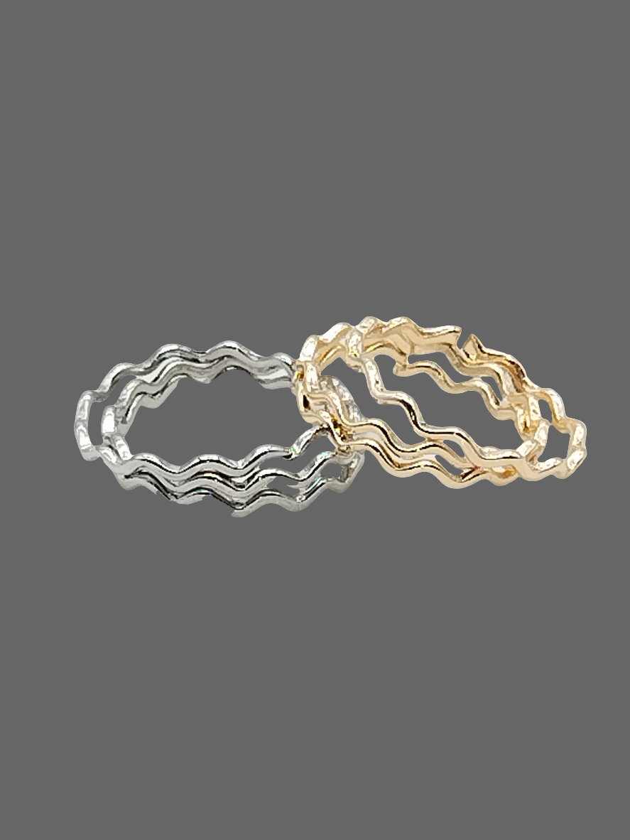Waving Rings, Minimalist, Stacking of 2, Gold Plated, Silver, Jewelry, Trendy, Thin, Girls